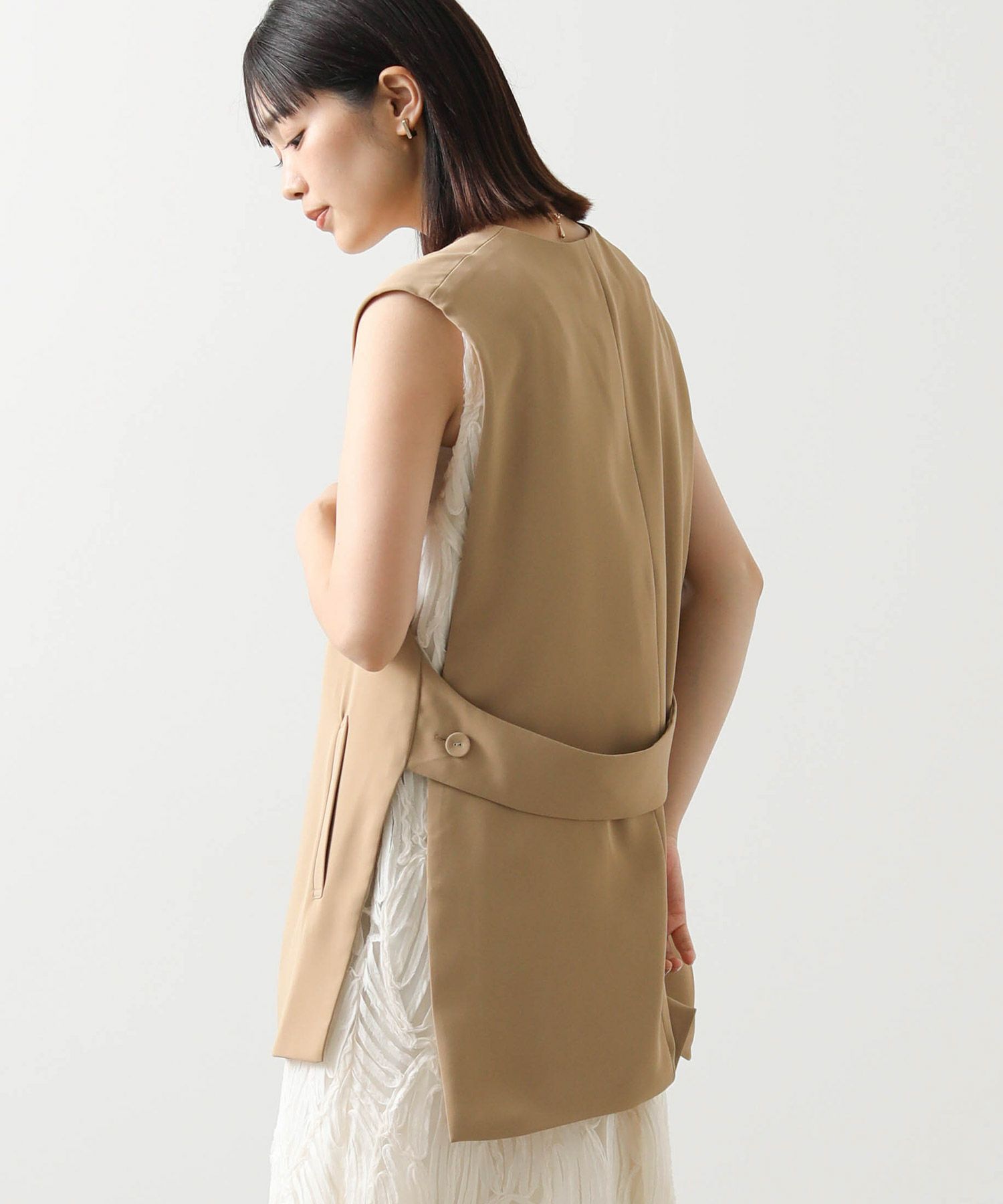 背中のベルトのボタンを外すとバックスタイルも変えられるので、ベルトを背中に出したり隠したり着こなしアレンジを楽しめます。