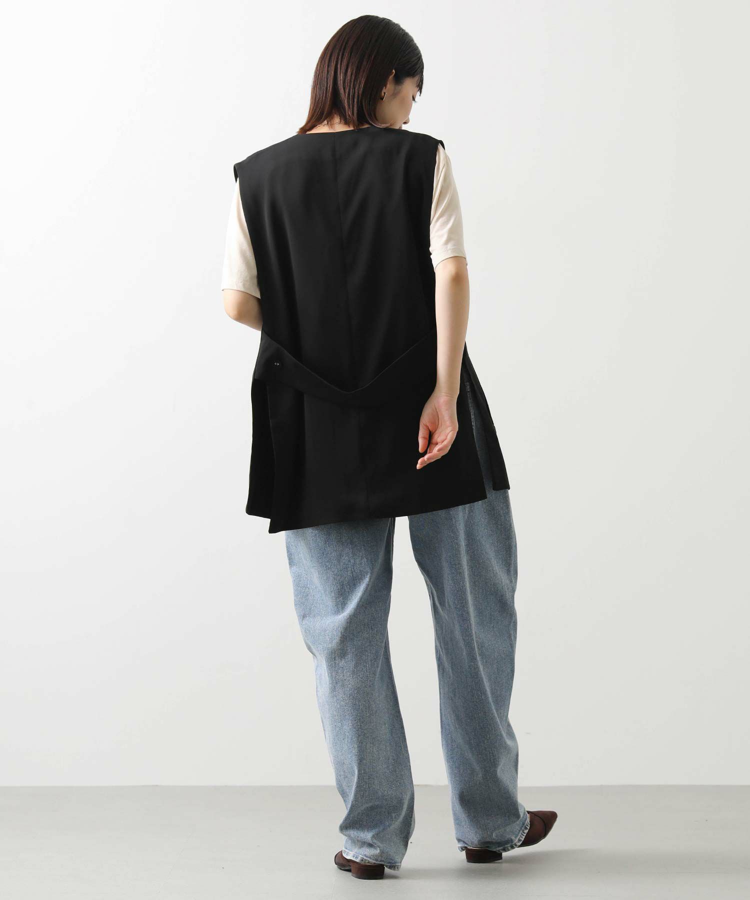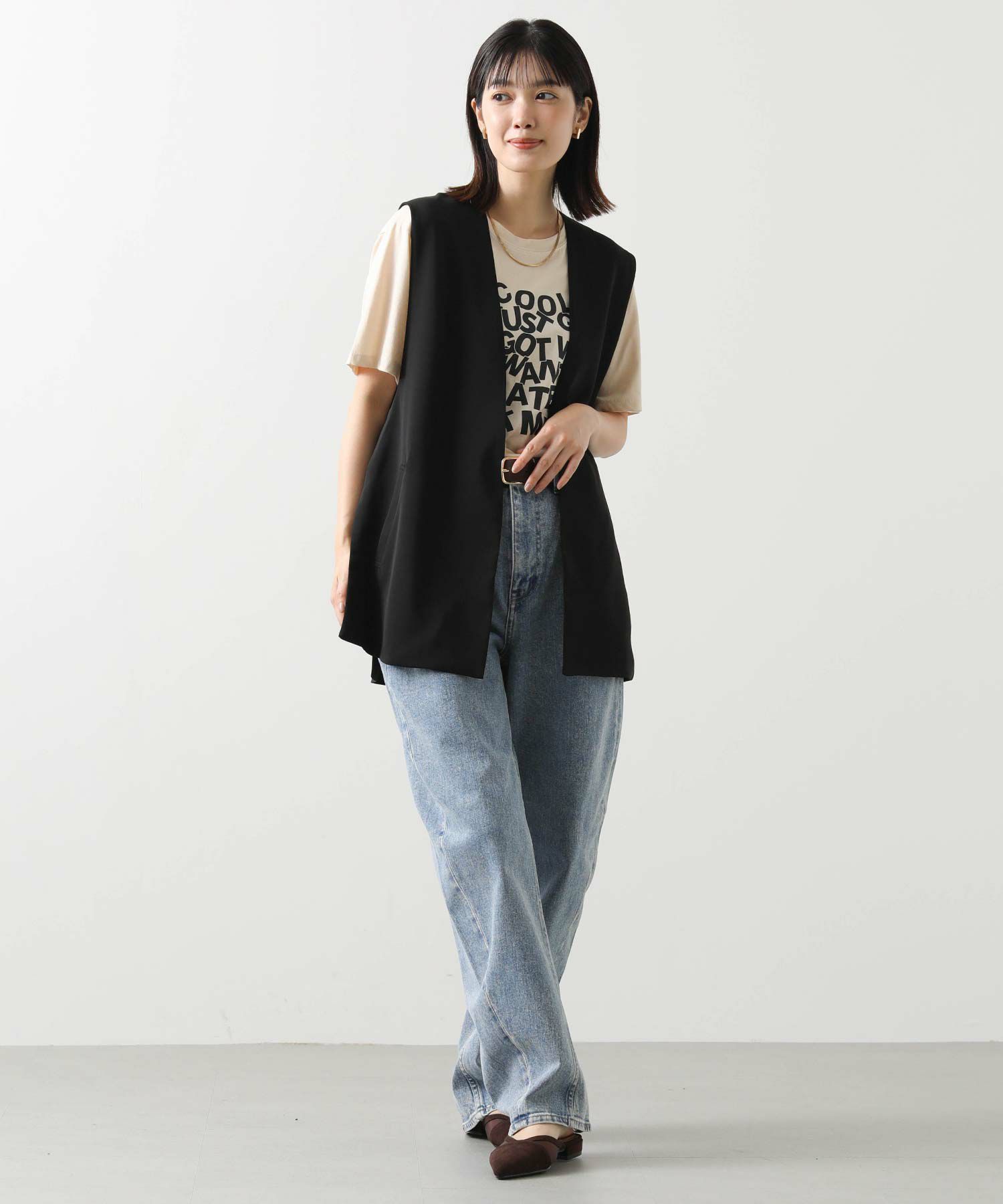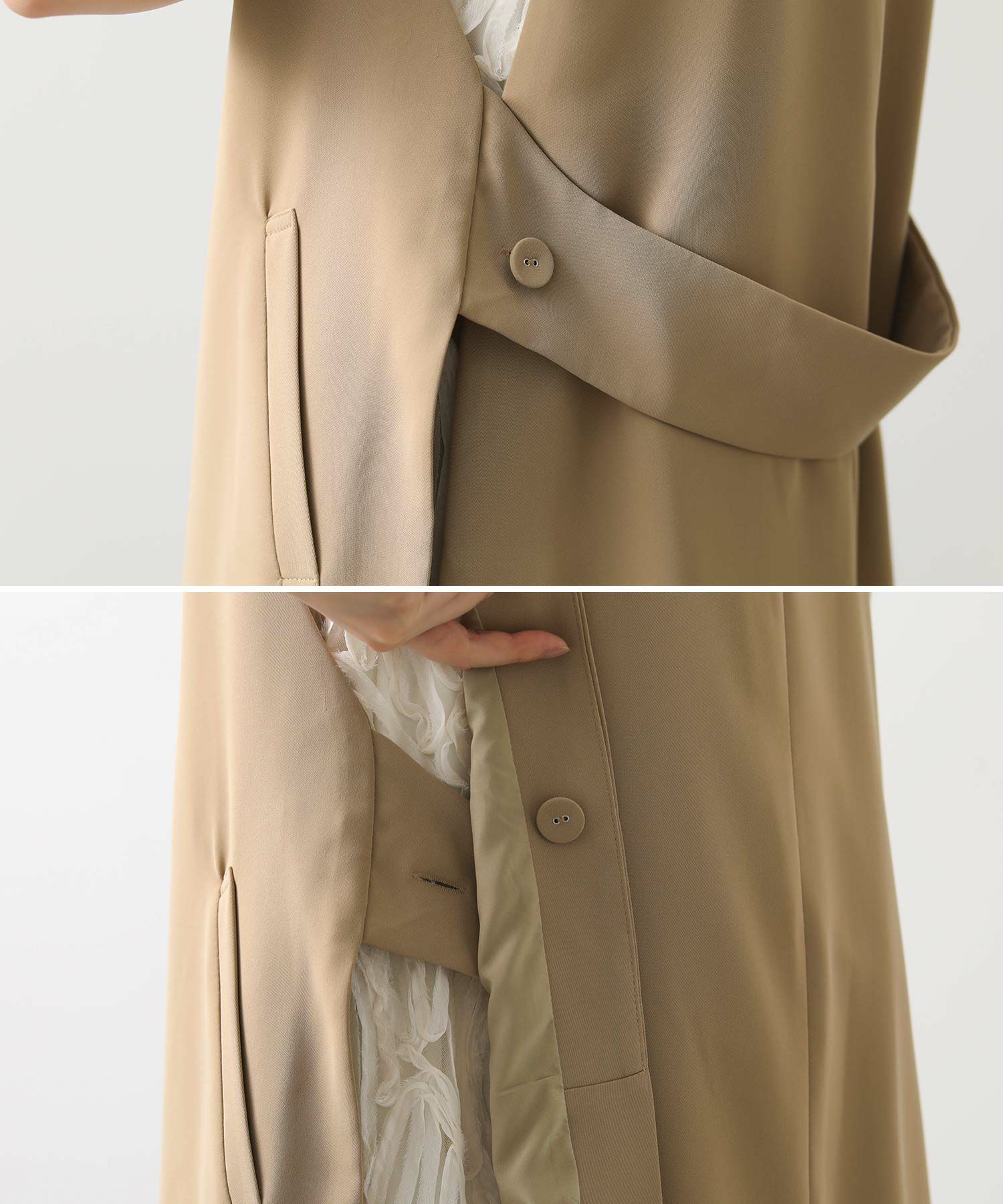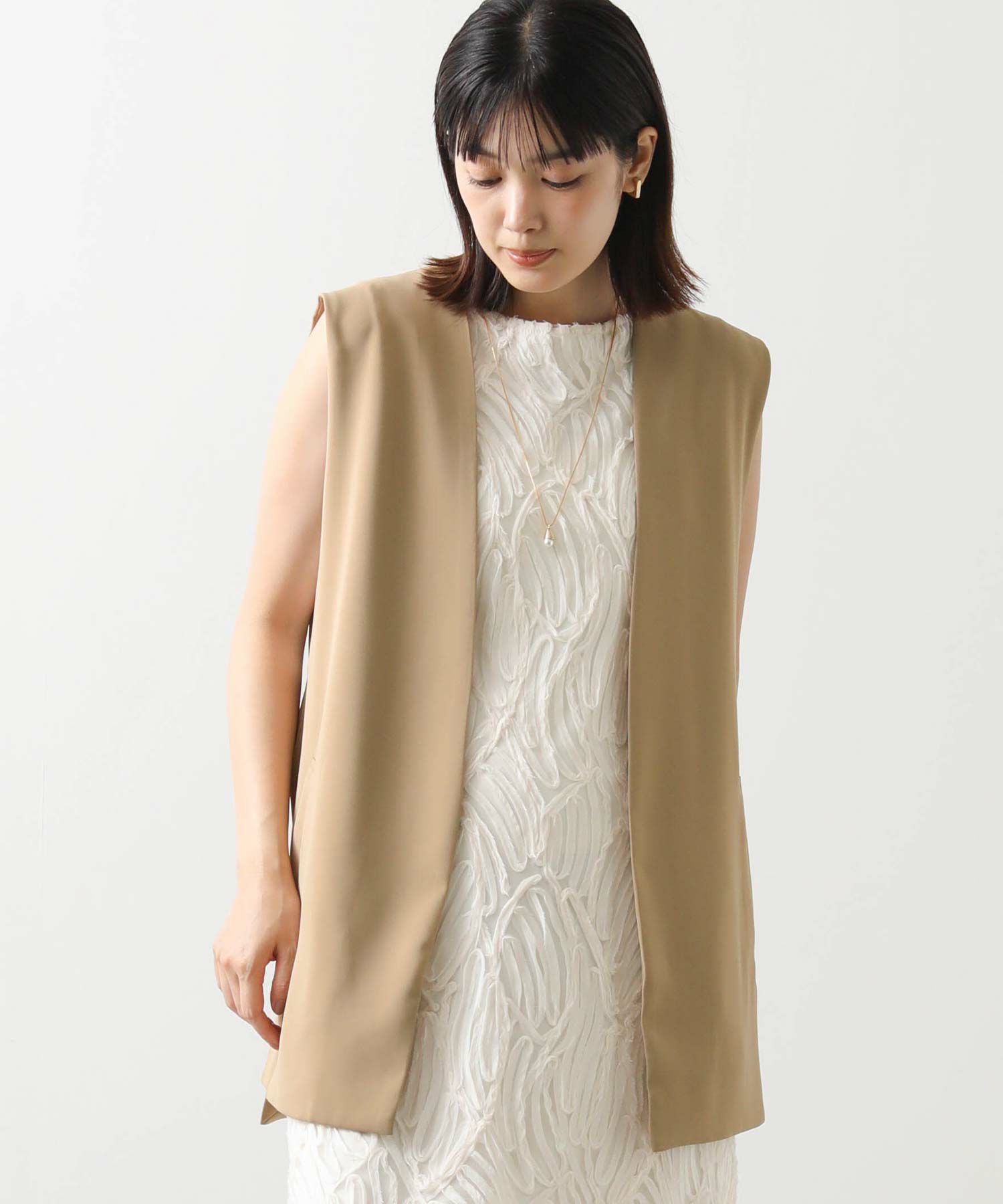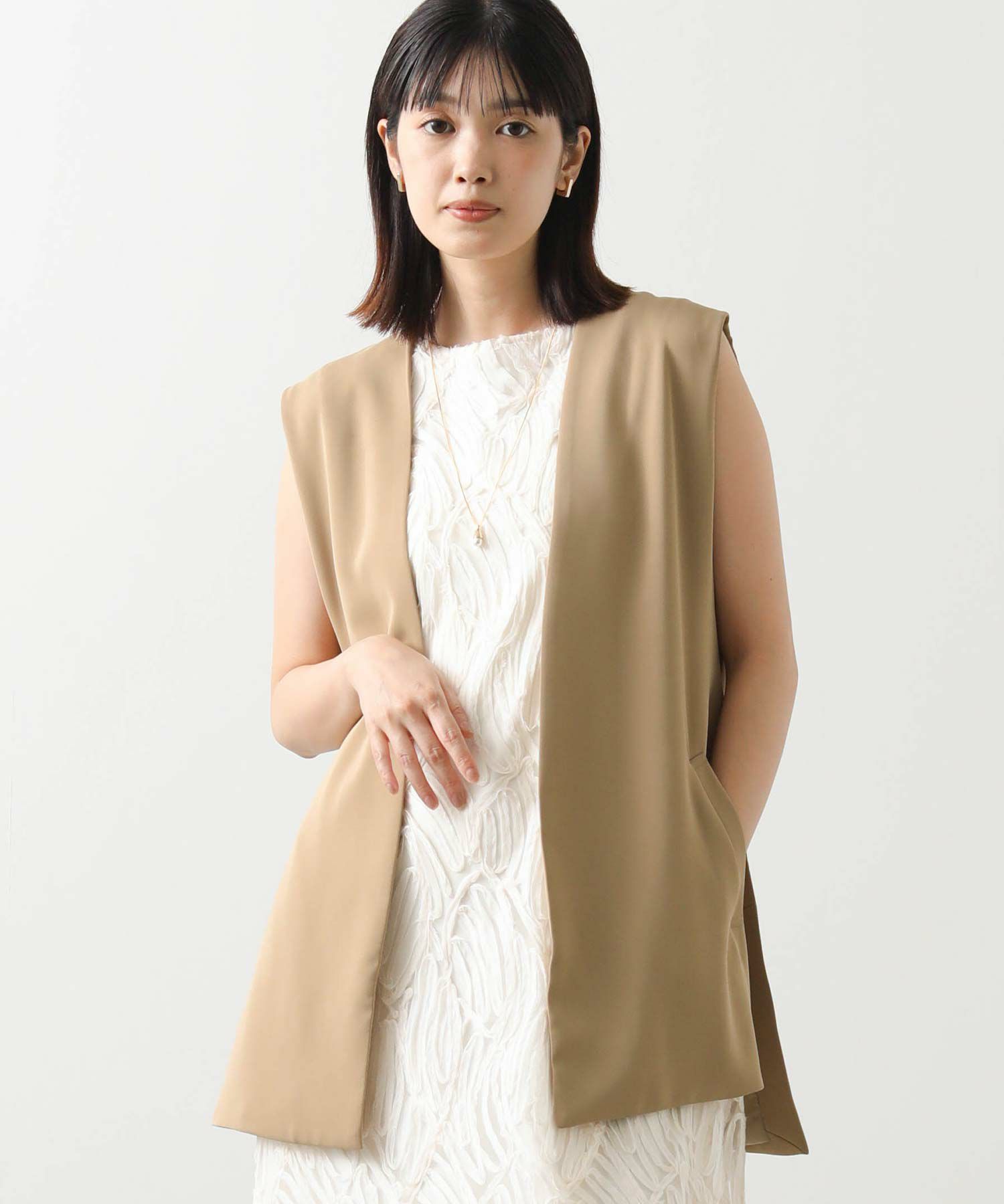 春に人気だったノーカラーのミディアム丈のジレ。人気のブラックに、秋を意識した新色キャメルを追加して登場!