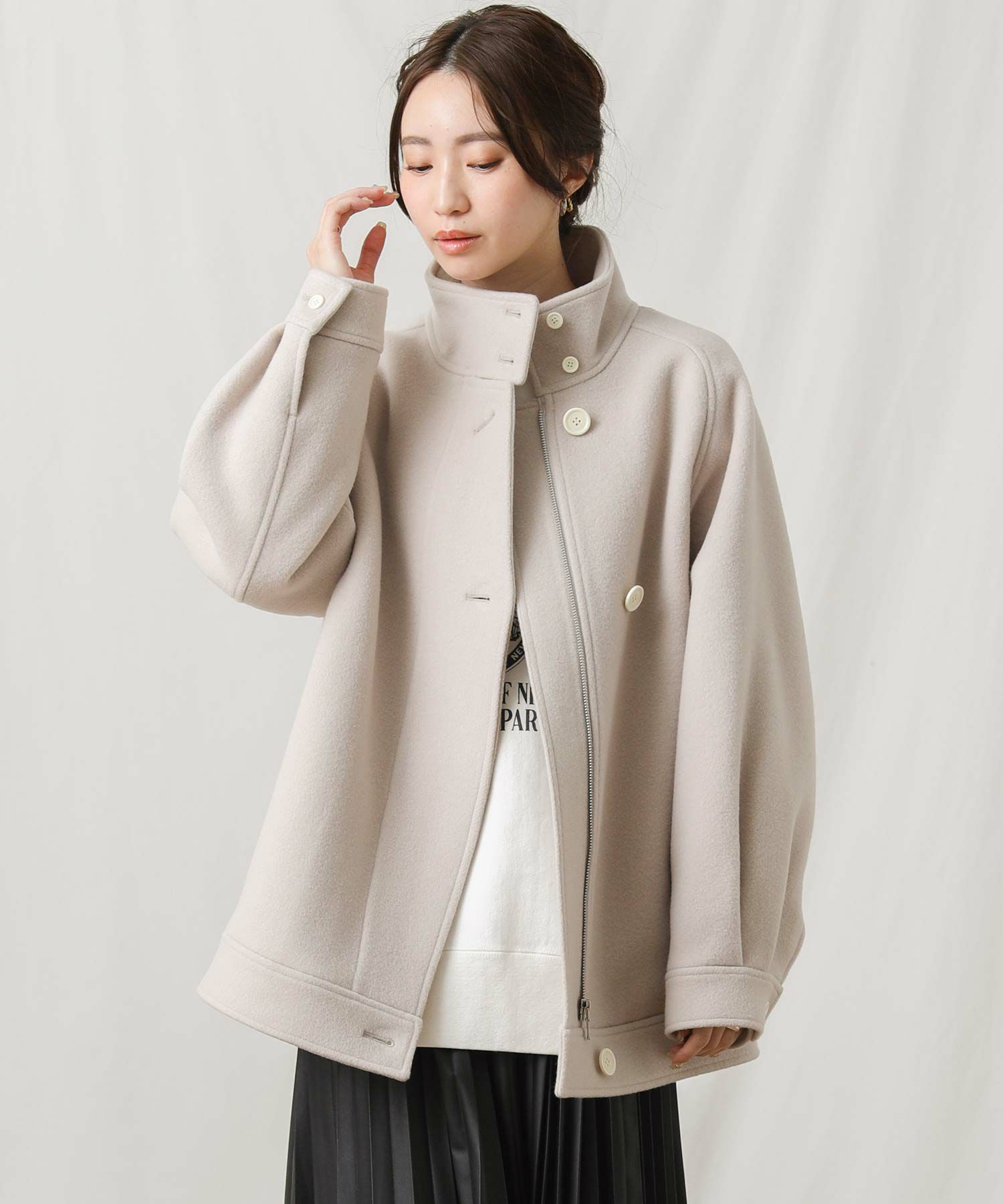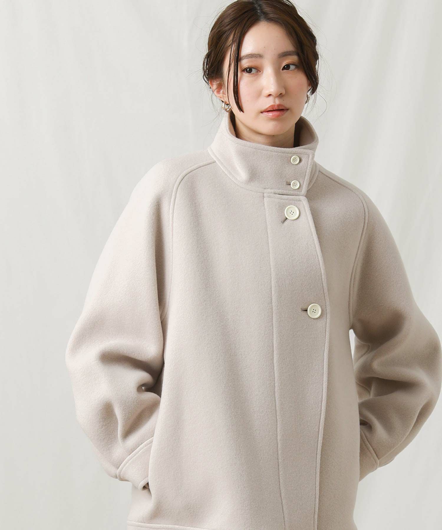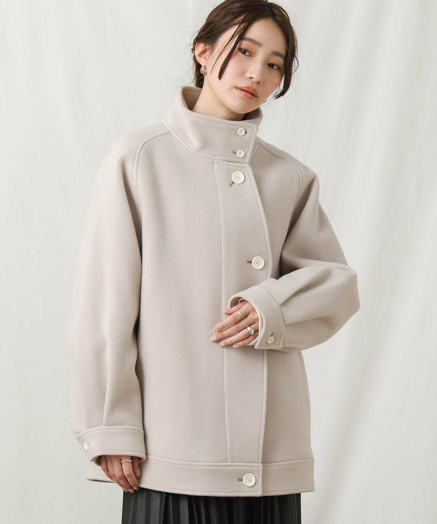 【si:m/スィーム】から、スタンドネックと比翼デザインが可愛いコートをセレクト。