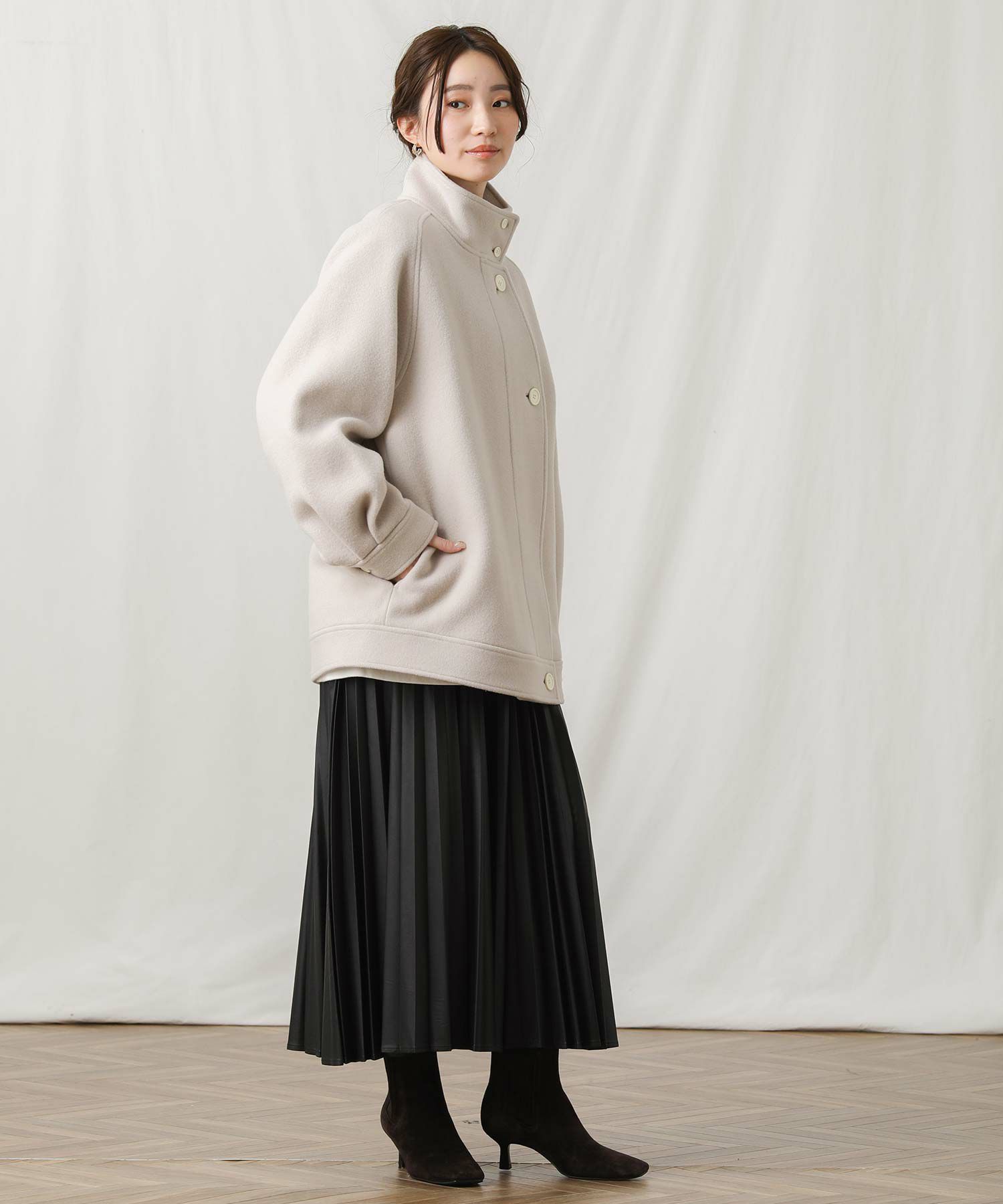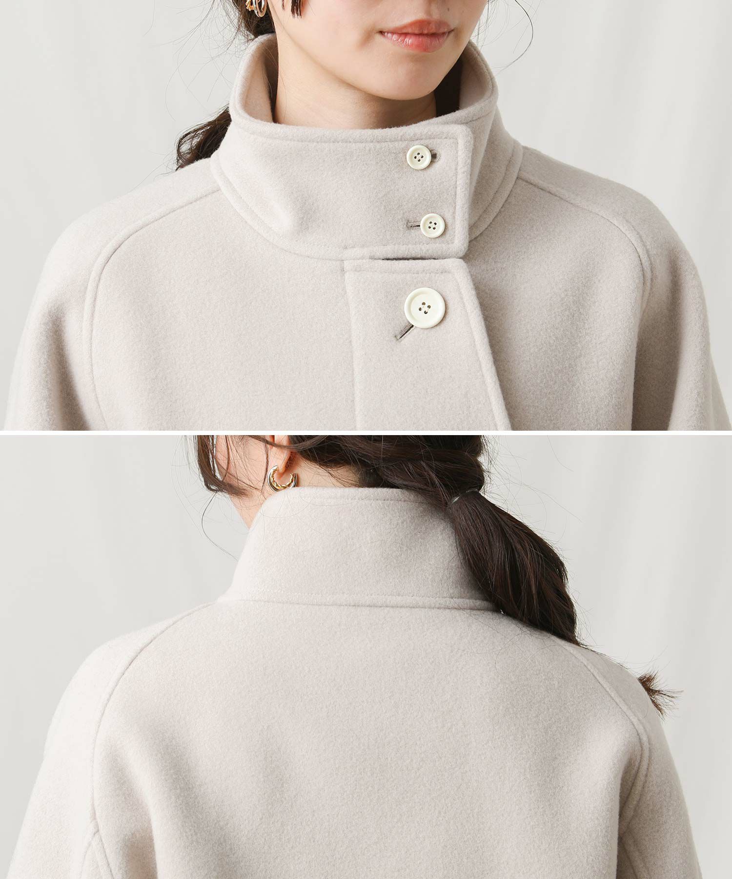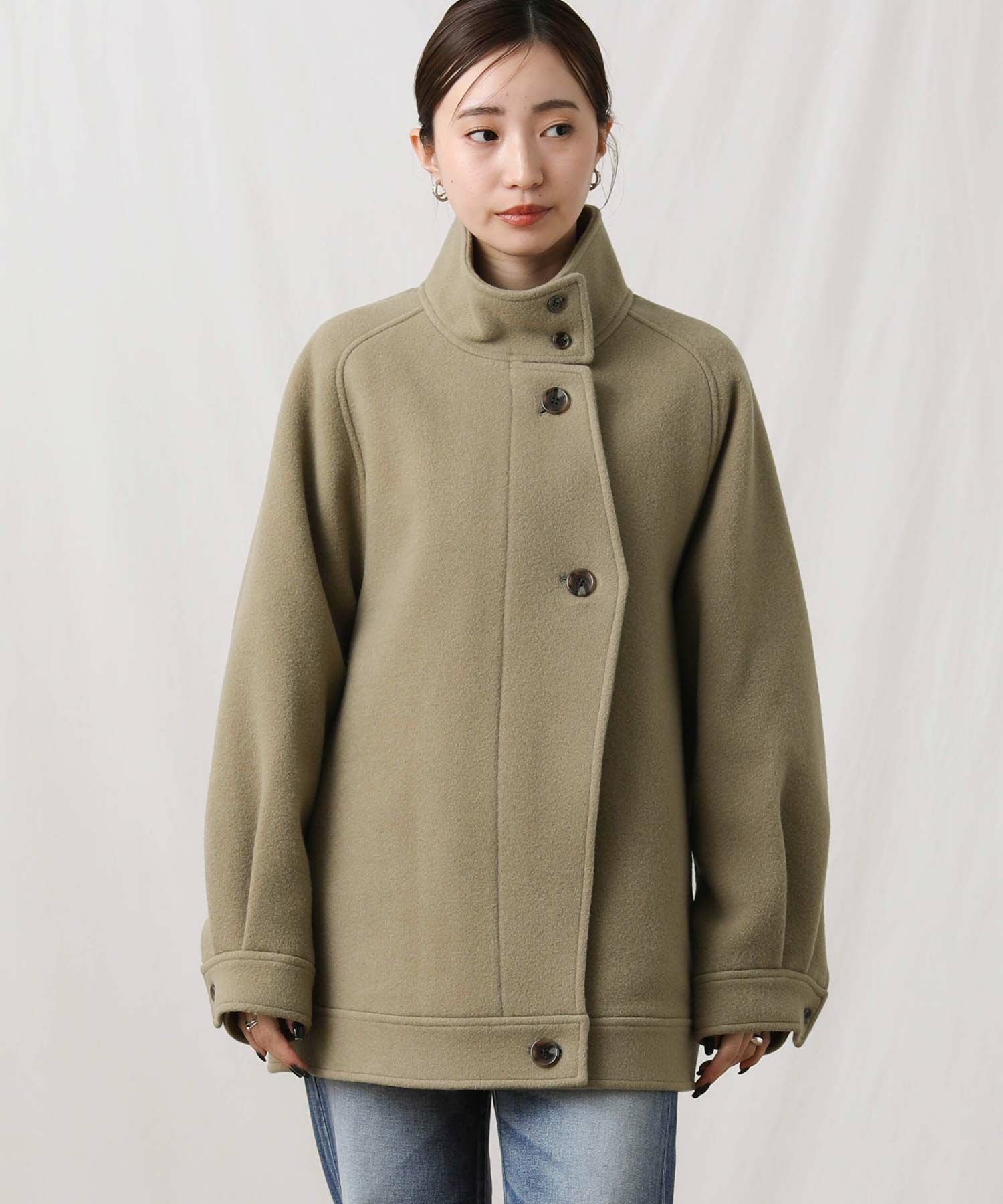 【si:m/スィーム】から、スタンドネックと比翼デザインが可愛いコートをセレクト。