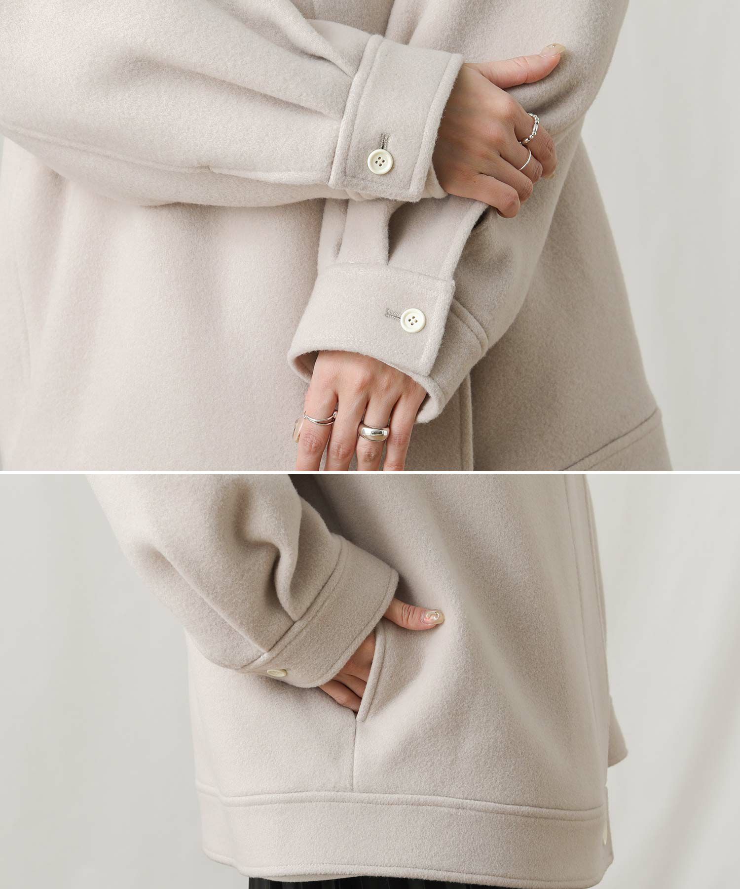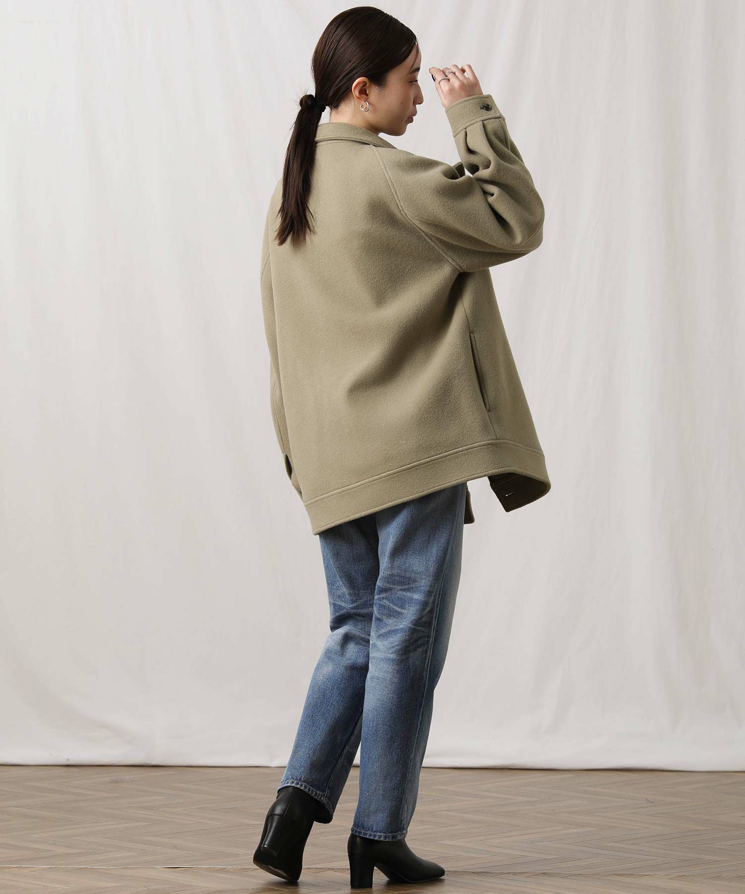 ※着用画像は撮影状況、光の当たり具合で色みが違って見える場合がございます。実際の色みについては、画像一覧の最後に掲載している詳細画像をご参照ください。