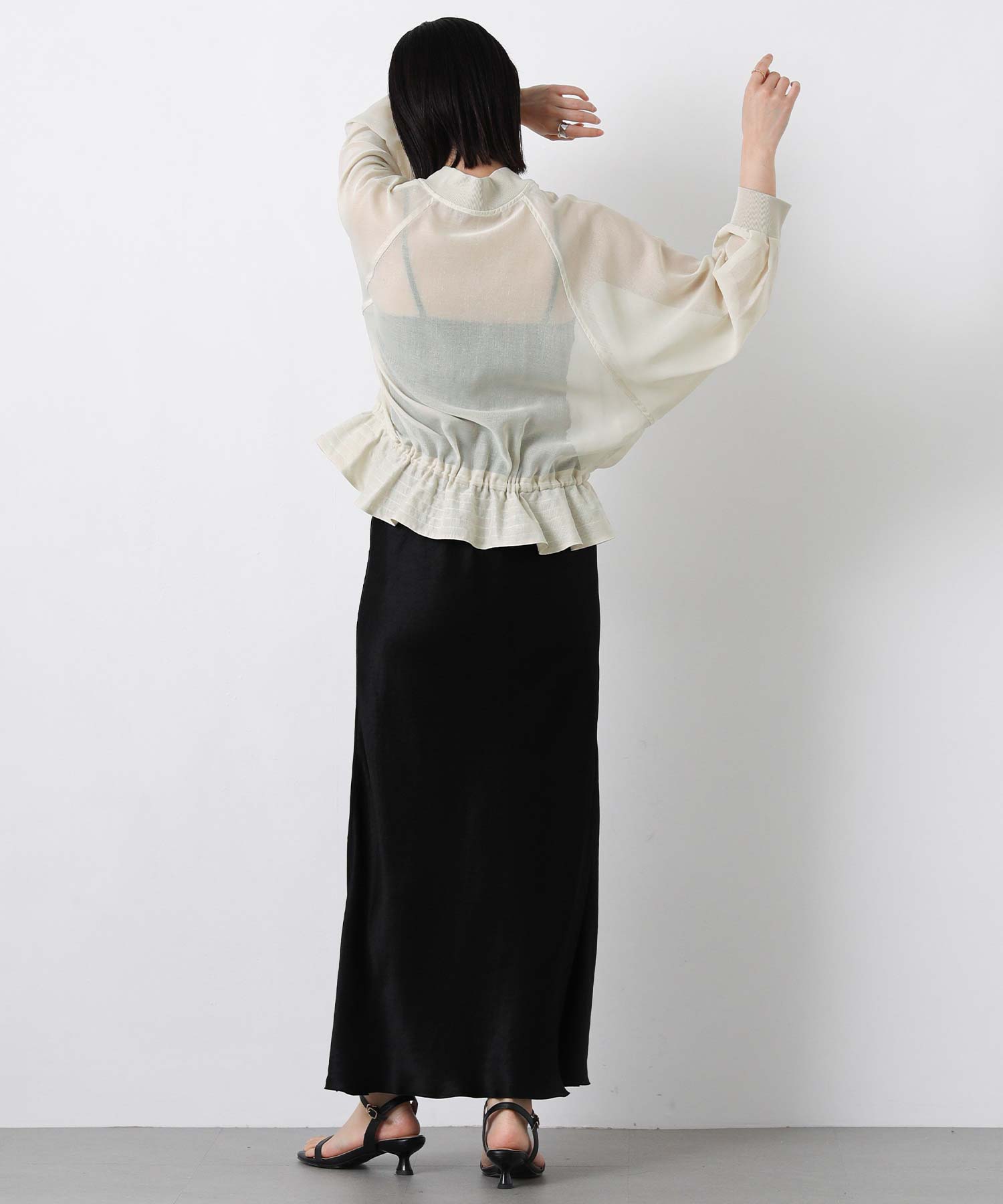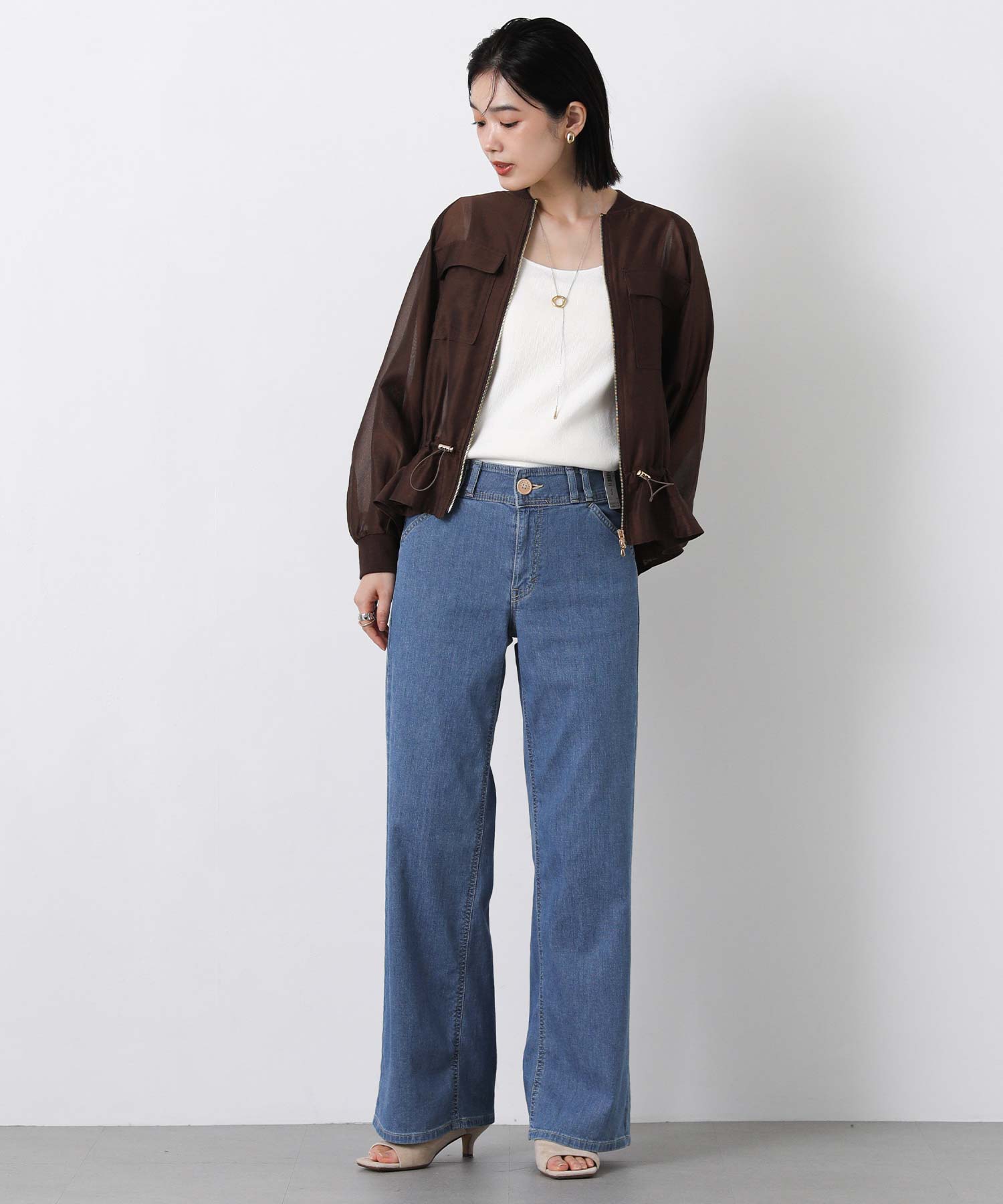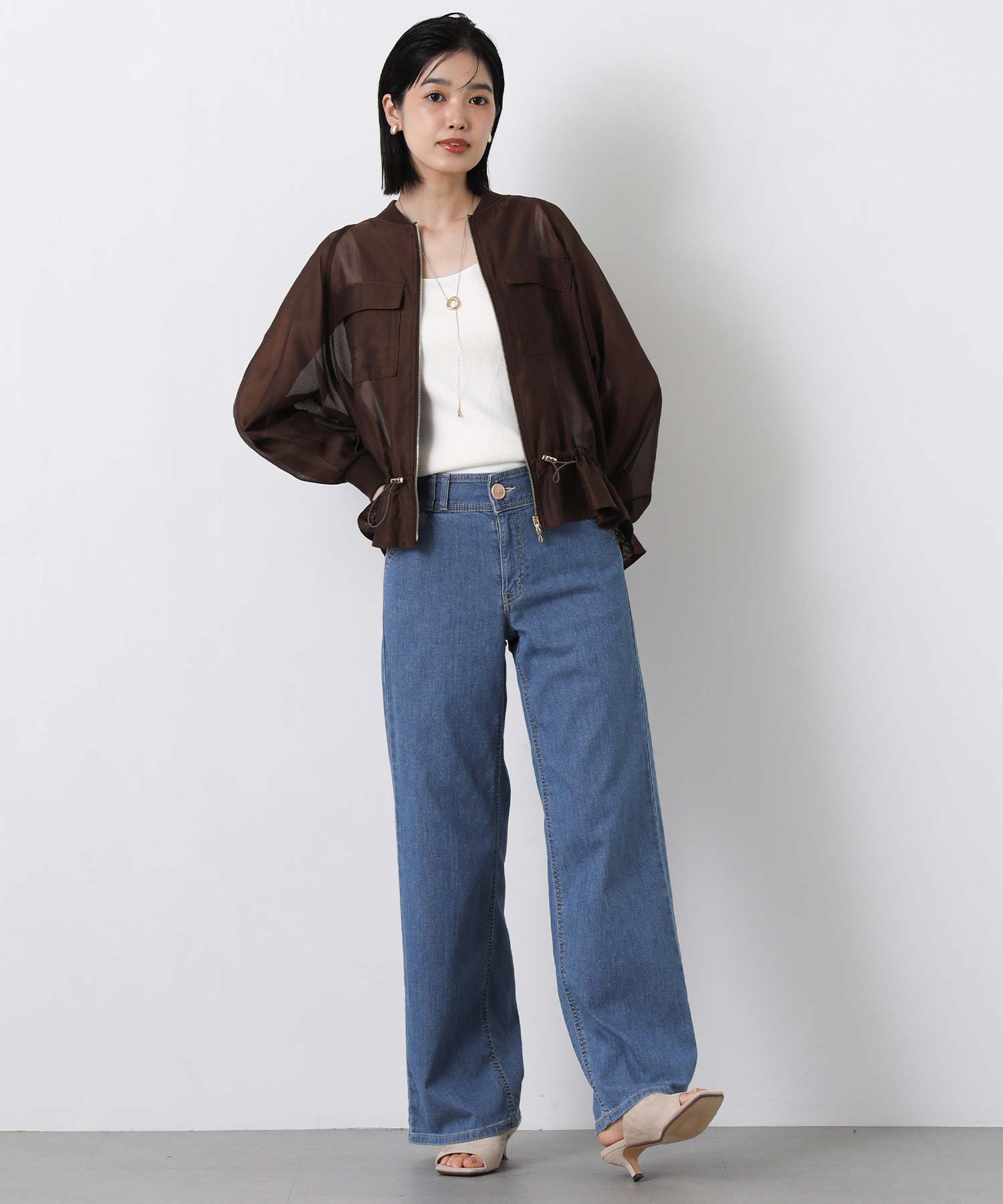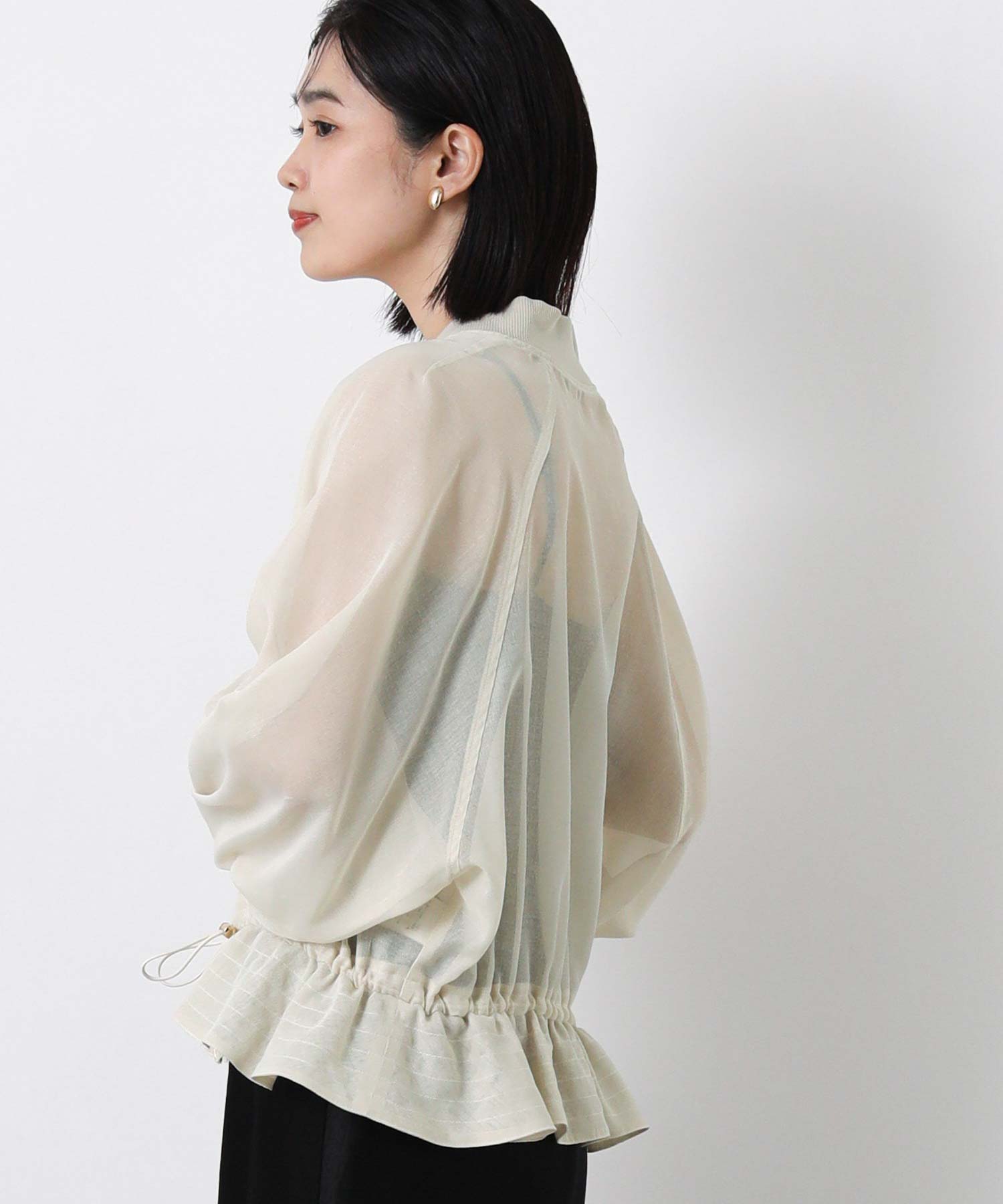 クリアな光沢感が上品なシアーブルゾン。