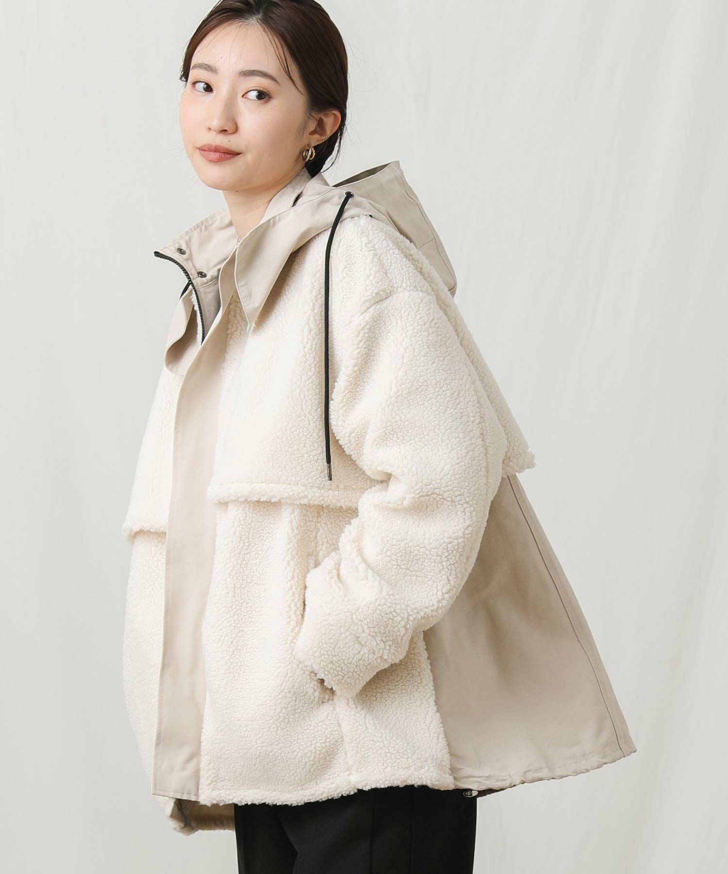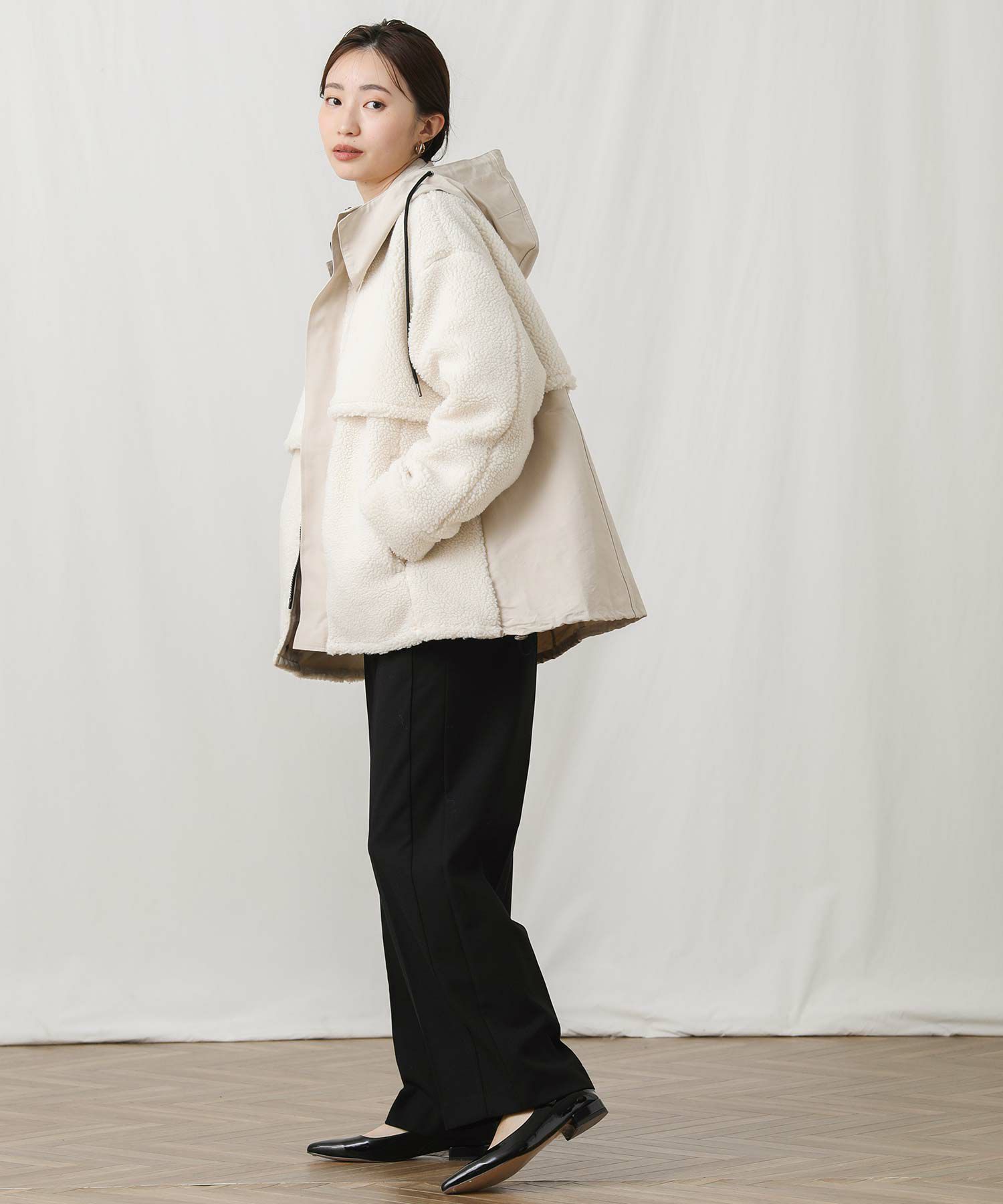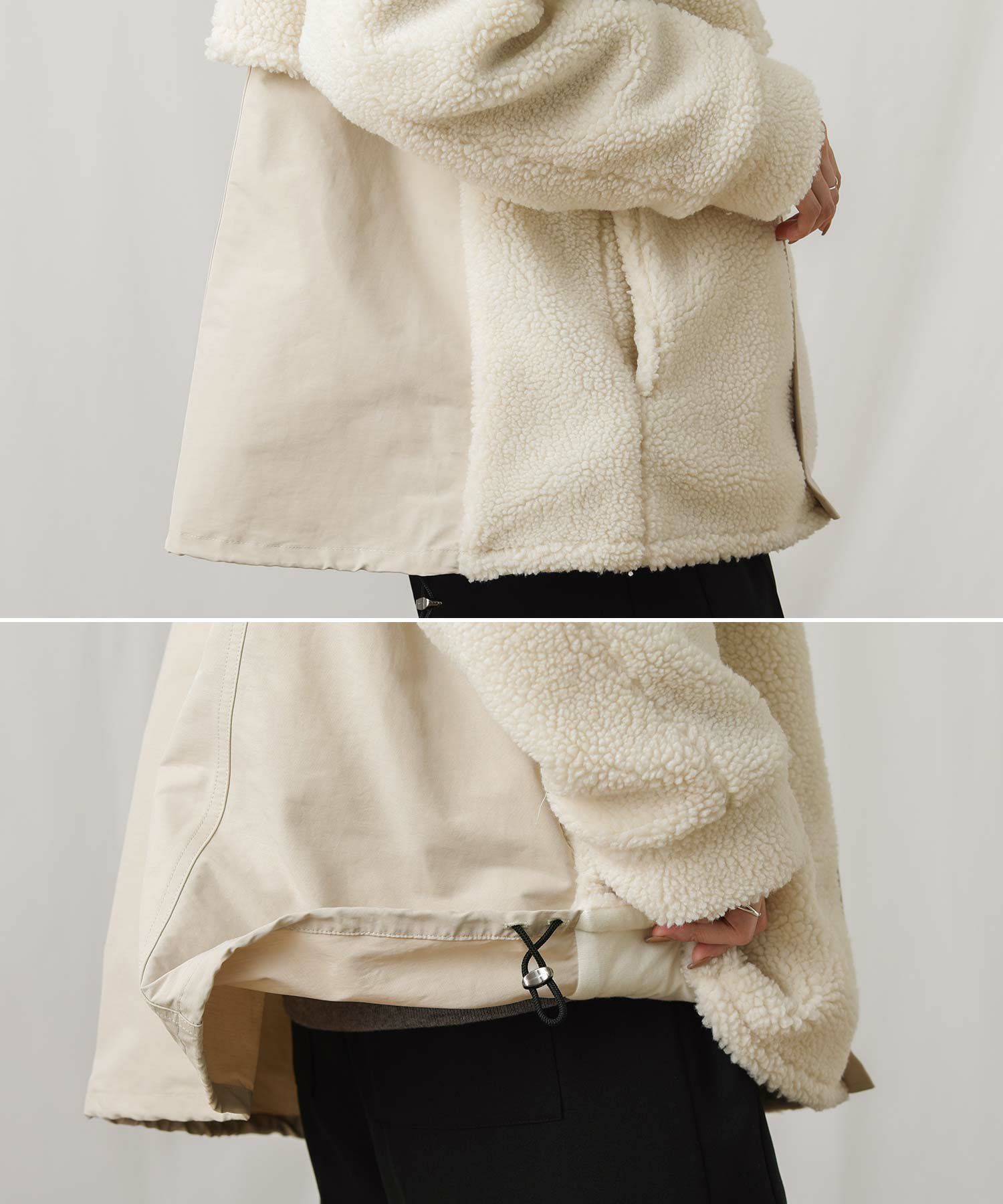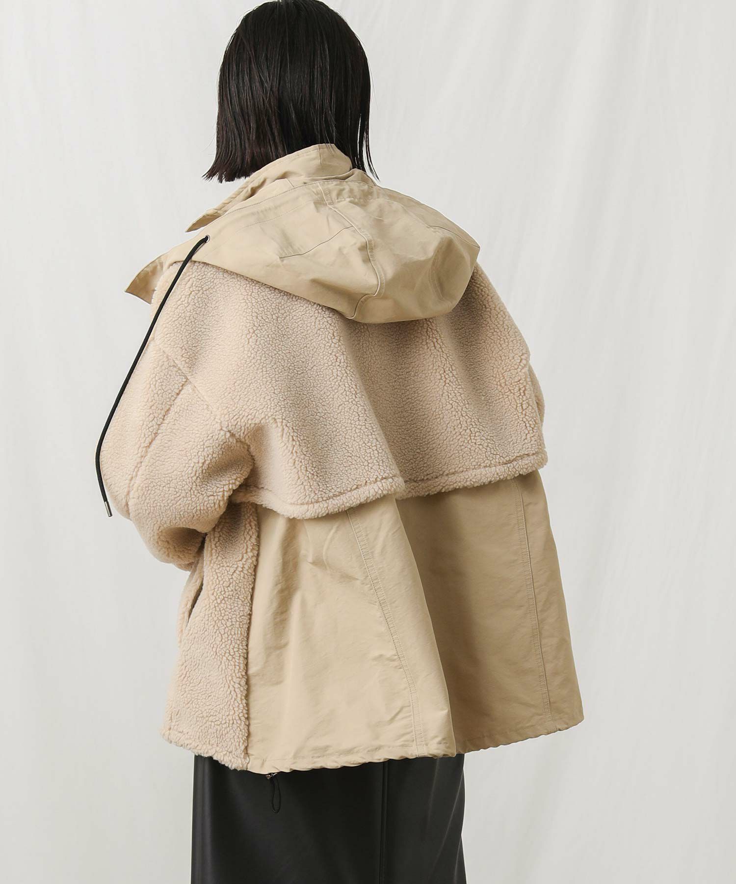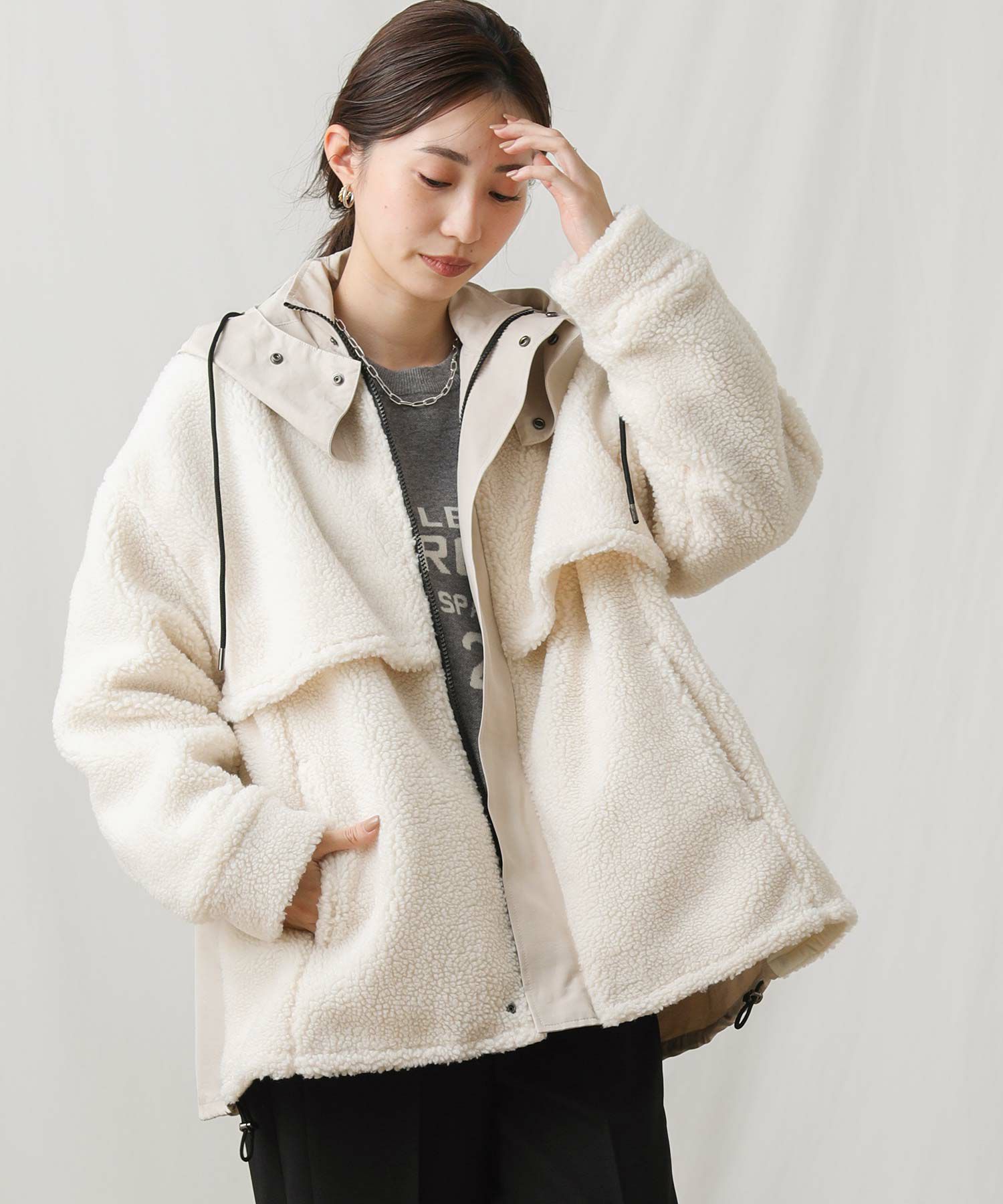 ボア×タフタの異素材デザインがパッと目をひくアウター。