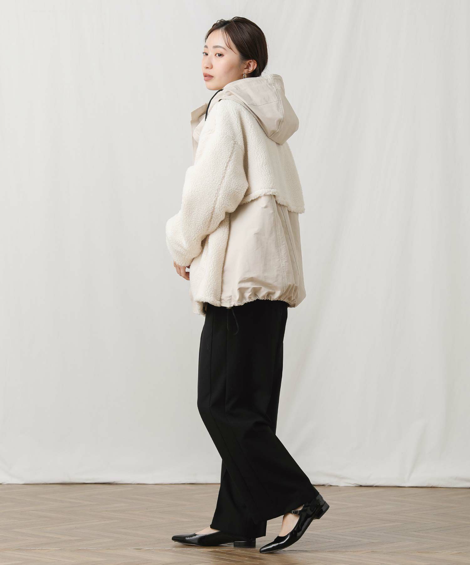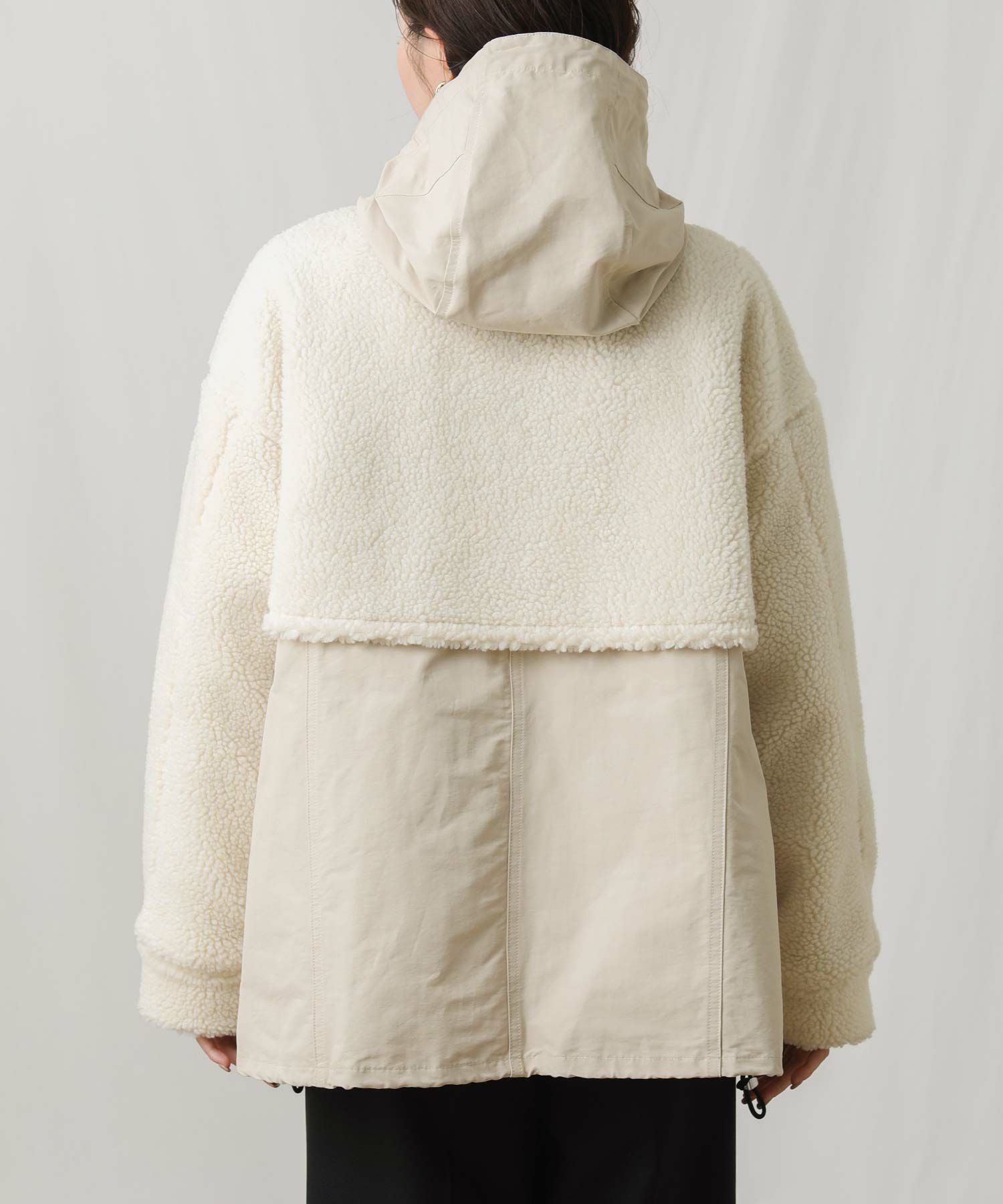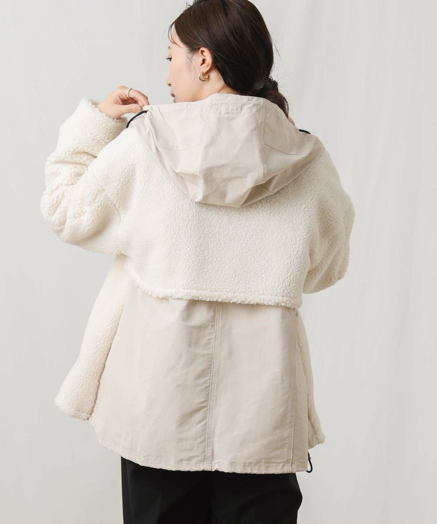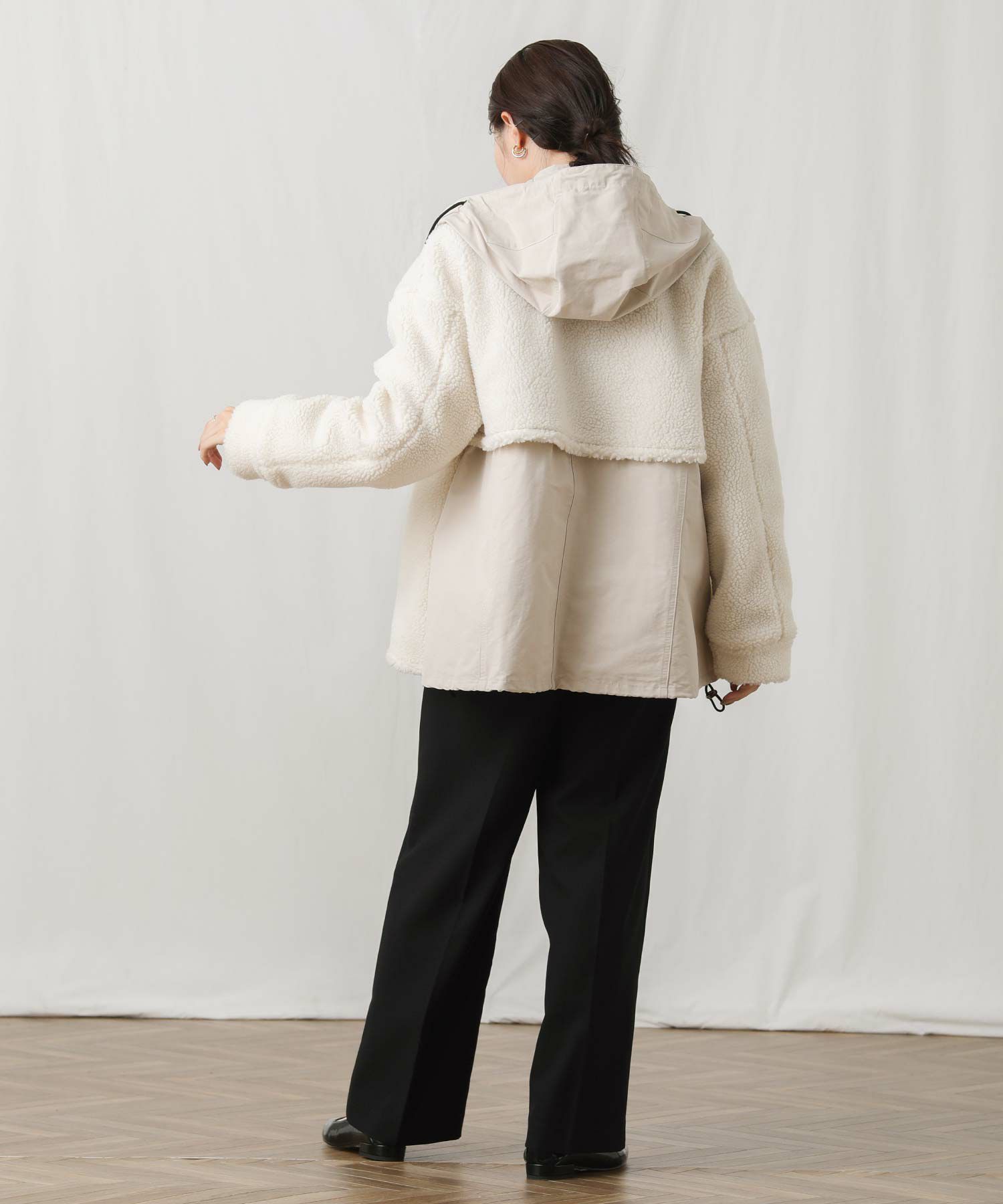 ボア×タフタの異素材デザインがパッと目をひくアウター。