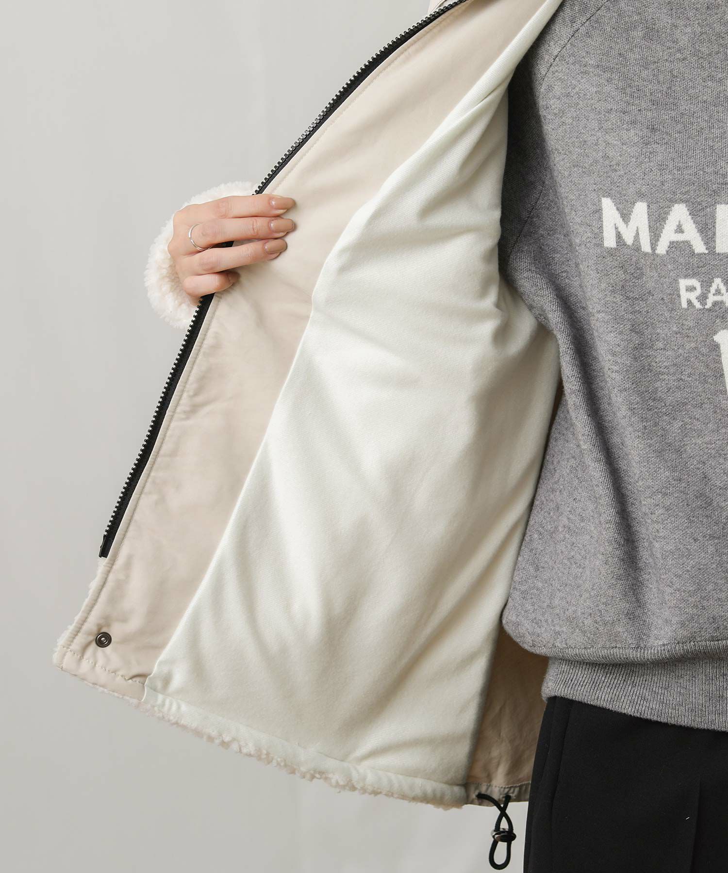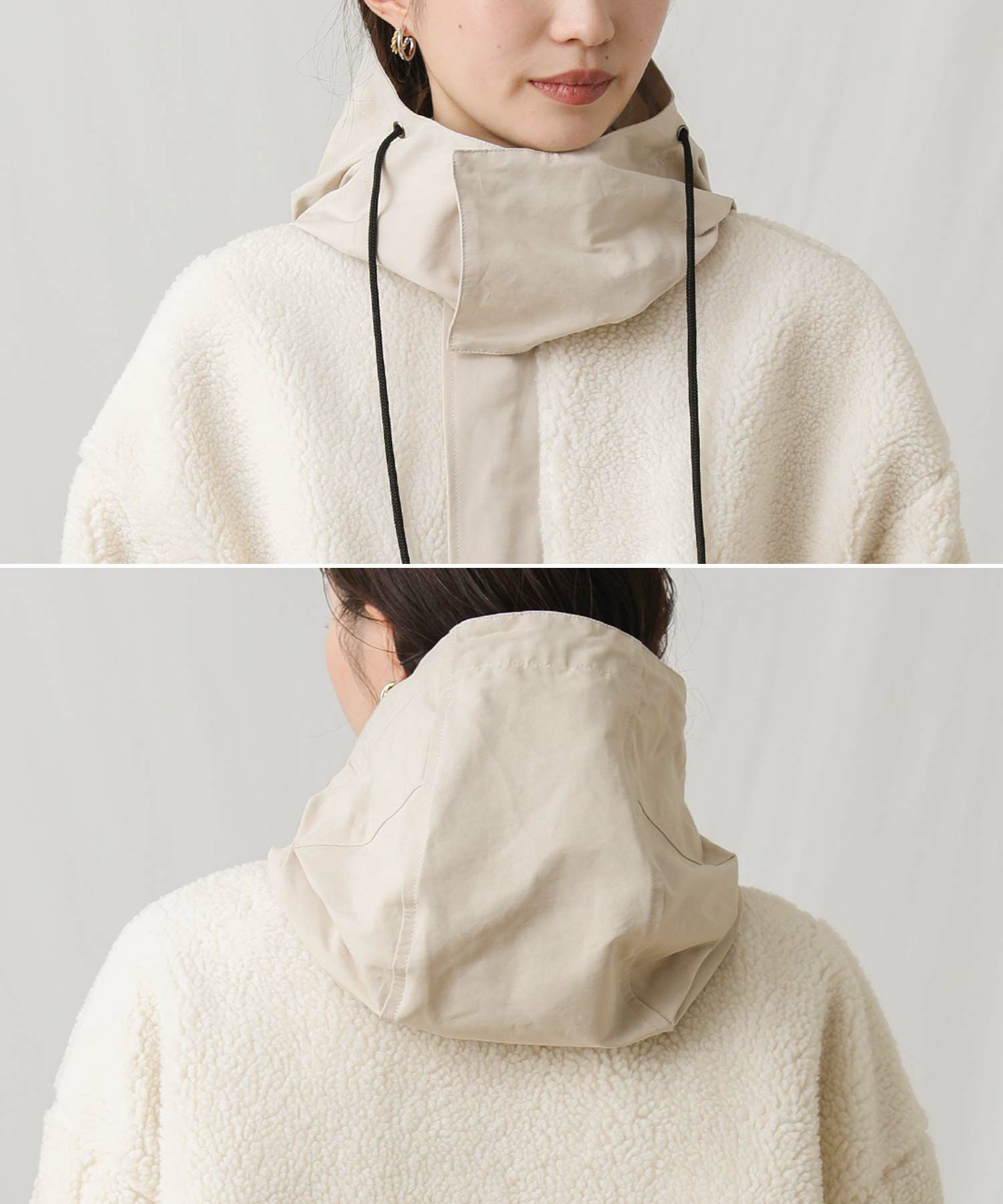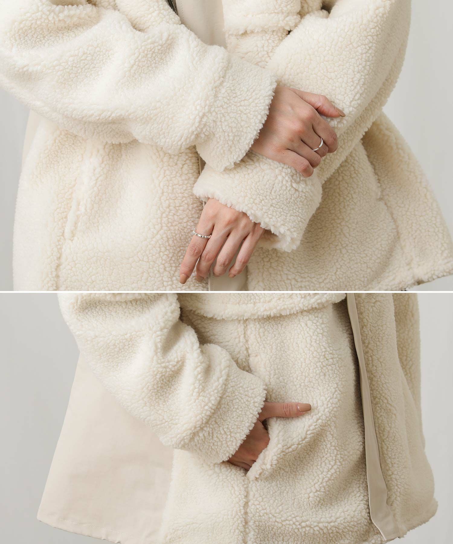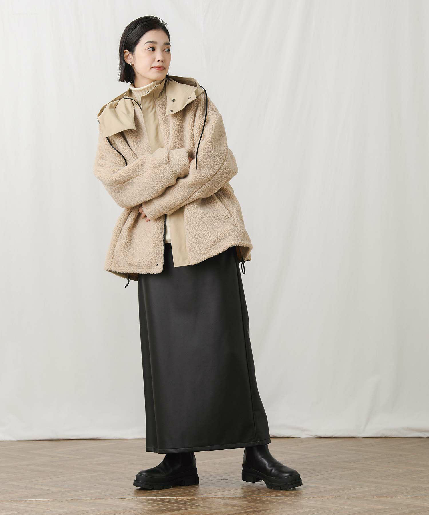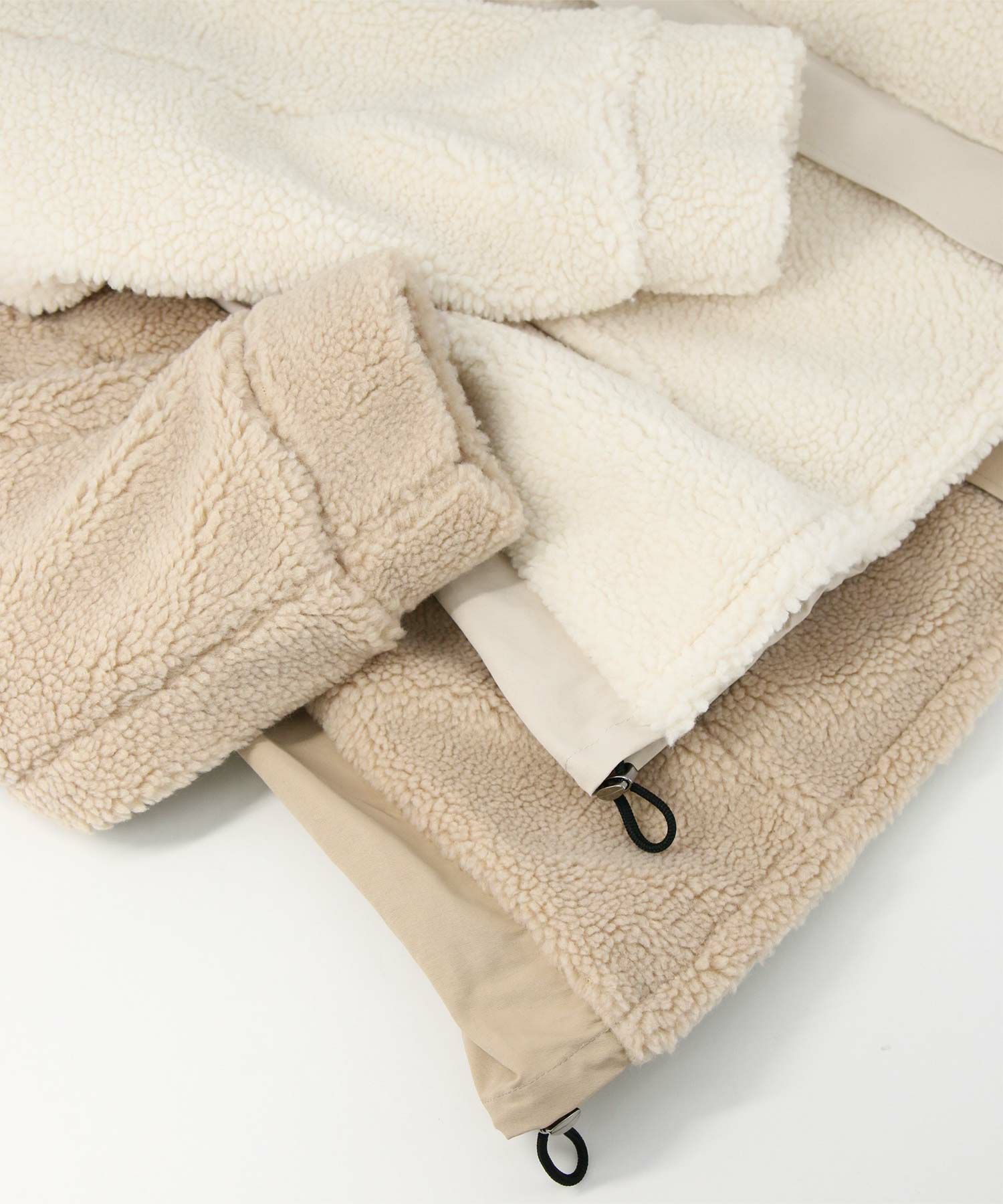 ボア×タフタの異素材デザインがパッと目をひくアウター。