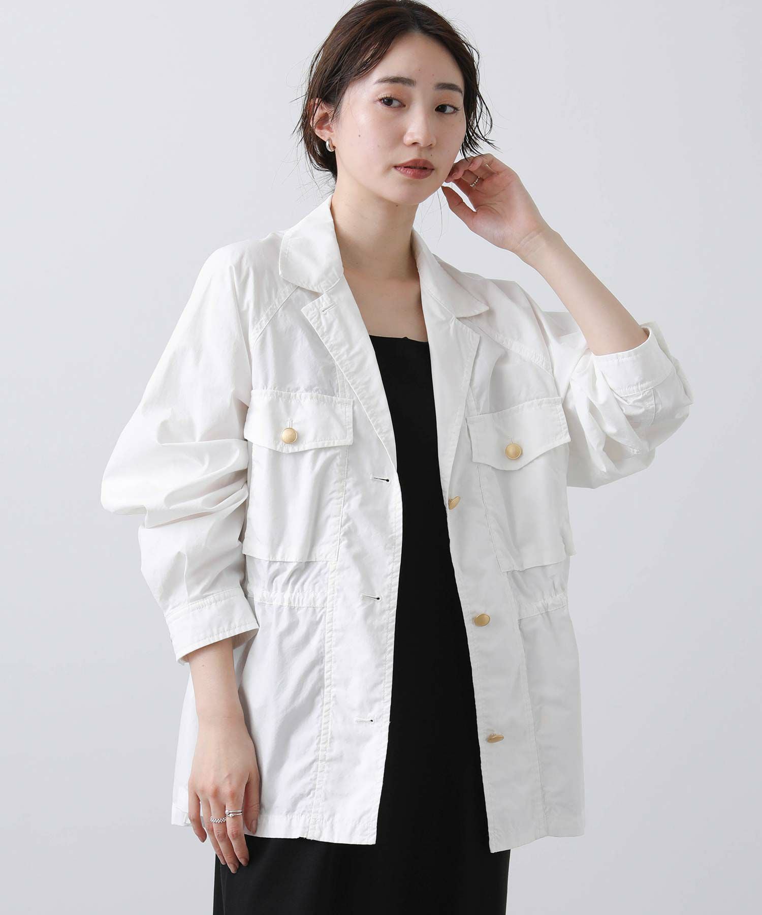 明るめのカーキと爽やかな白の2色展開で、春らしい軽やかなスタイリングが叶います。