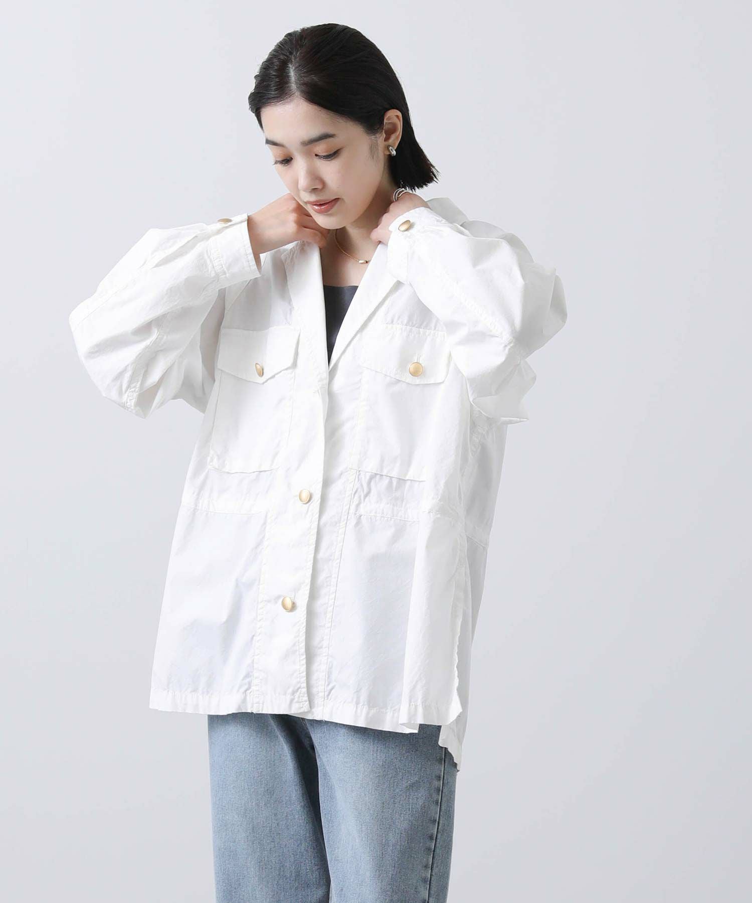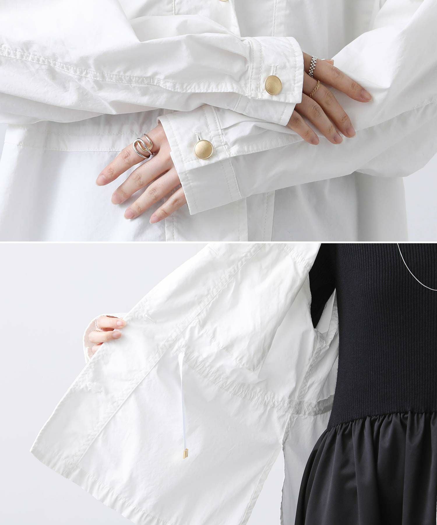 ※着用画像は撮影状況、光の当たり具合で色みが違って見える場合がございます。実際の色みについては、画像一覧の最後に掲載している詳細画像をご参照ください。