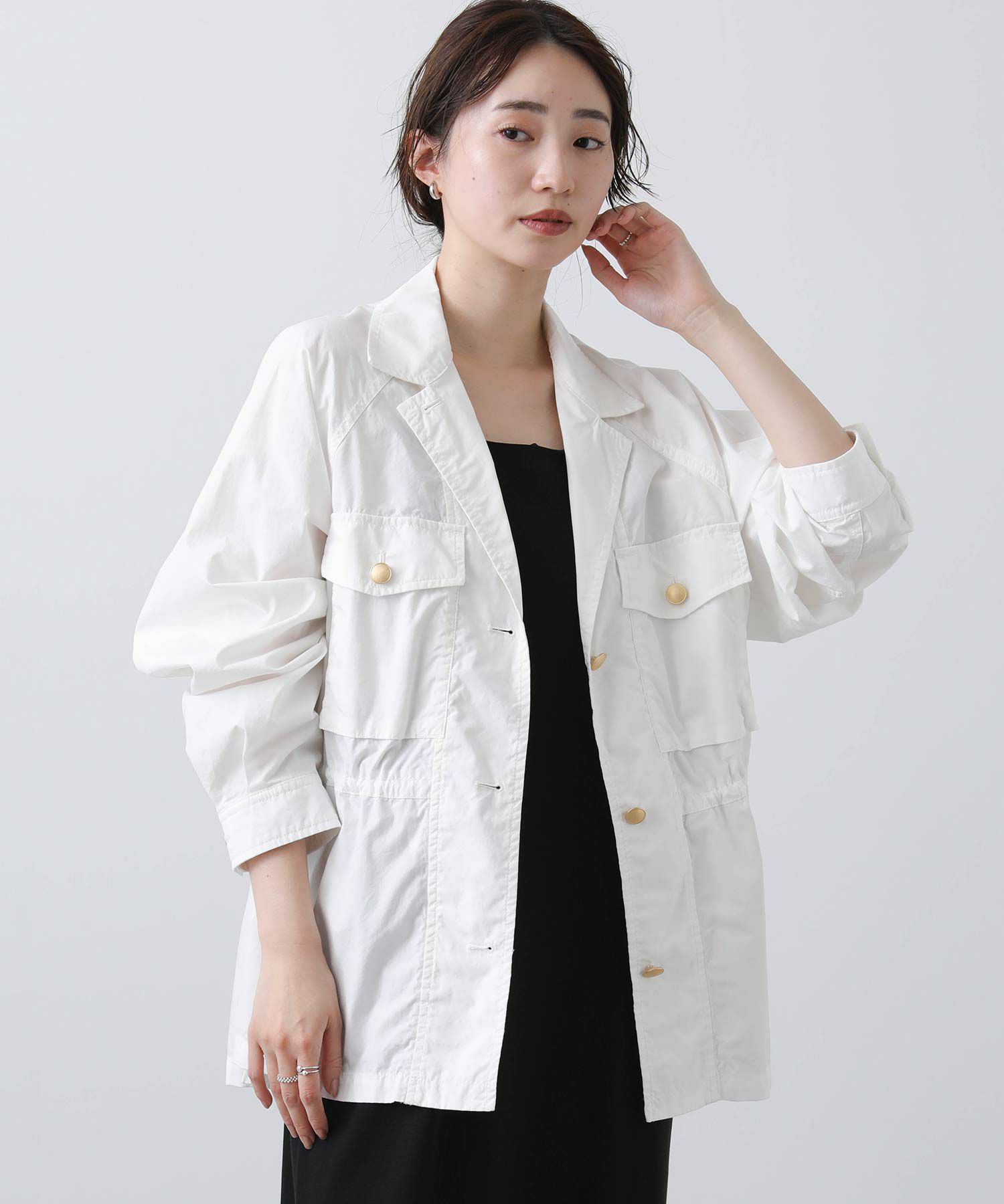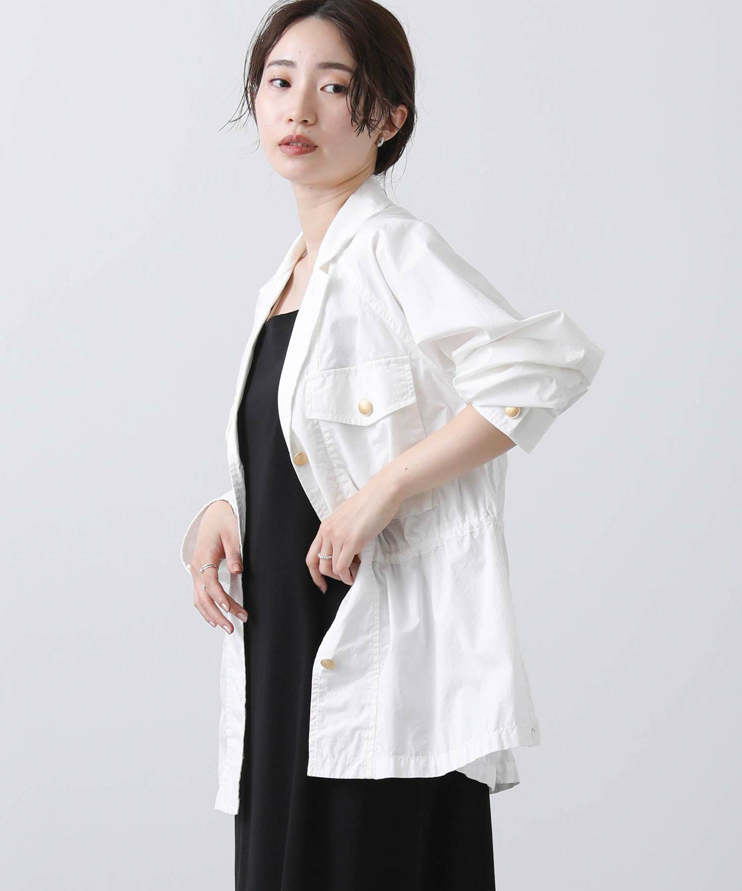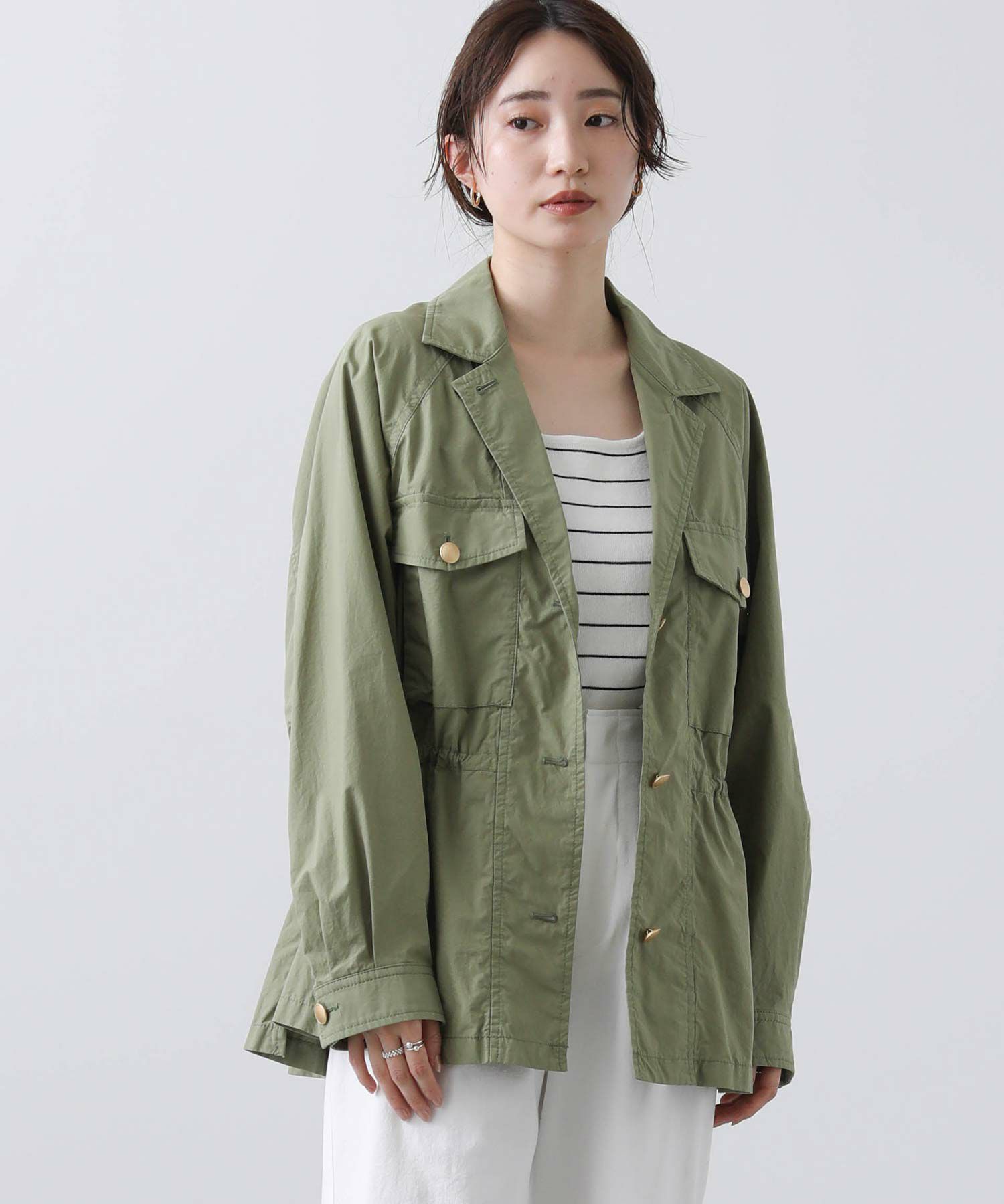金釦がアクセントになるミリタリージャケット。