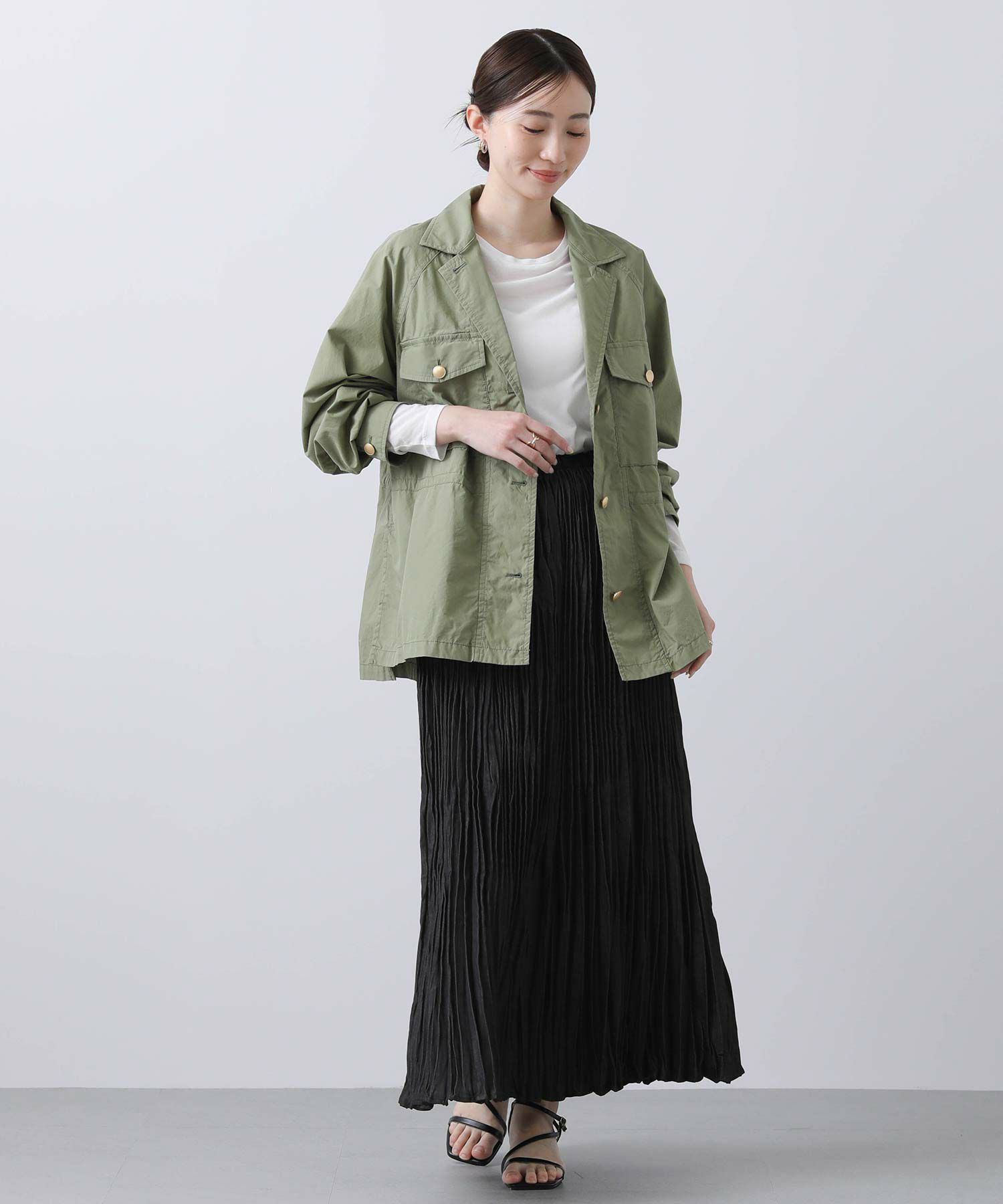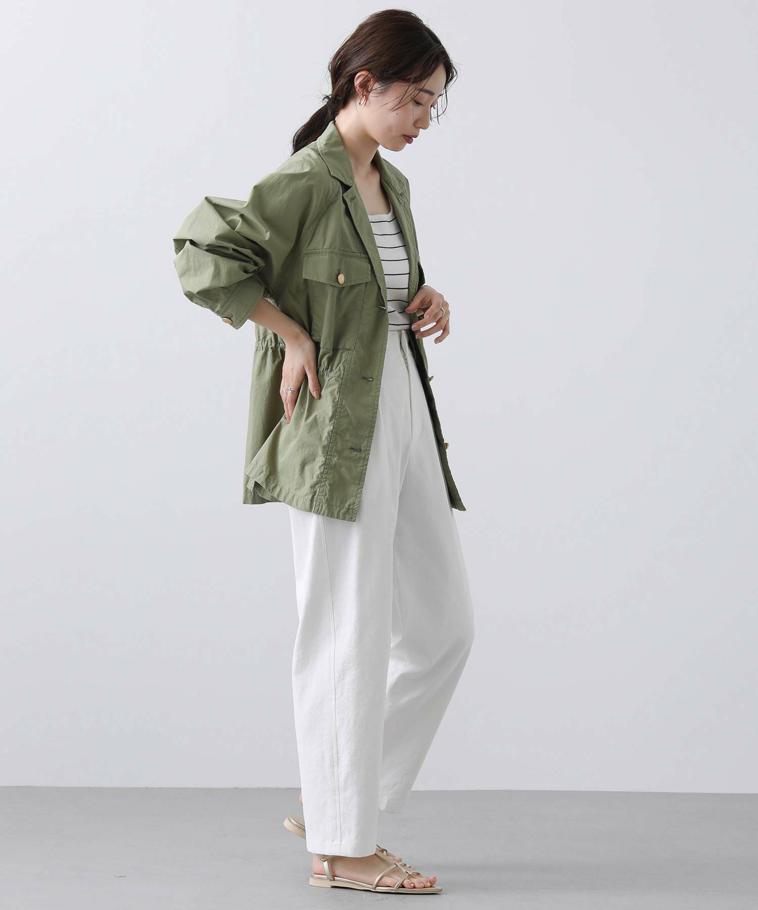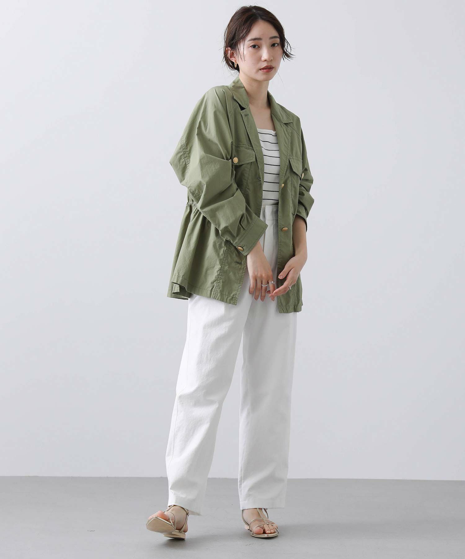 明るめのカーキと爽やかな白の2色展開で、春らしい軽やかなスタイリングが叶います。