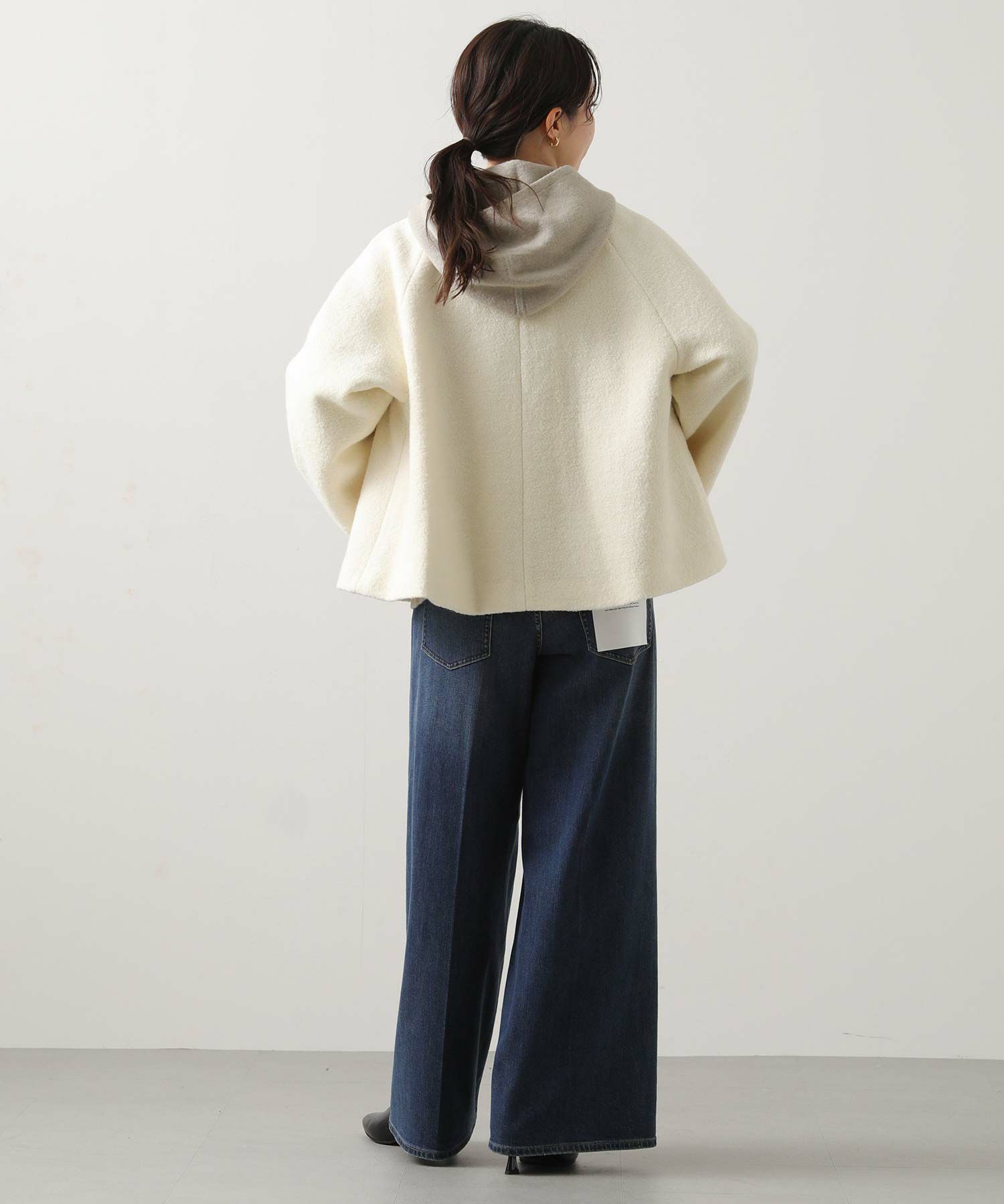 ブークレのふっくらした見た目がかわいい、大人フェミニンなケープコート。