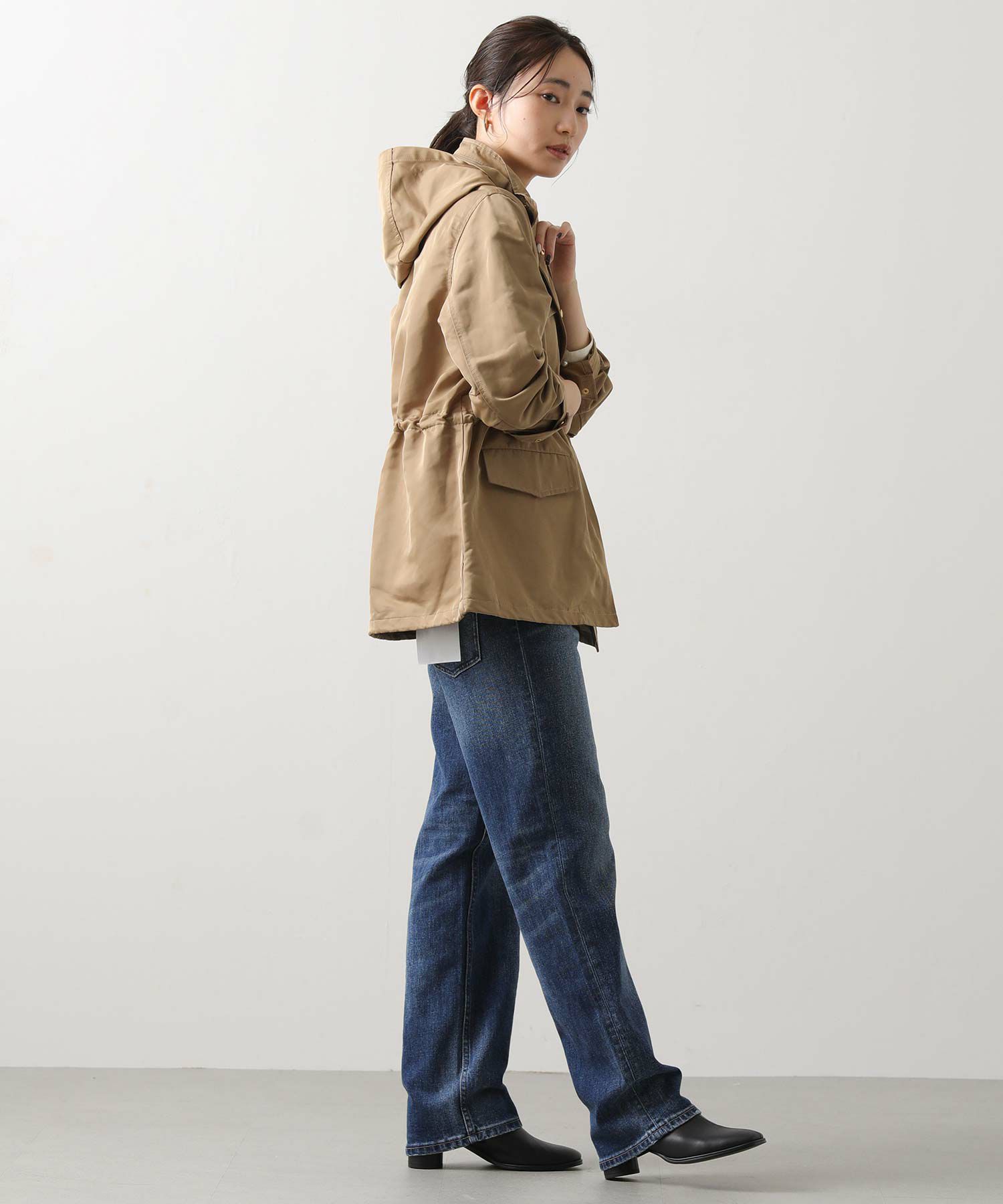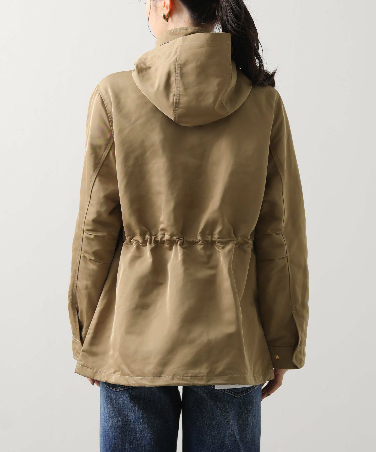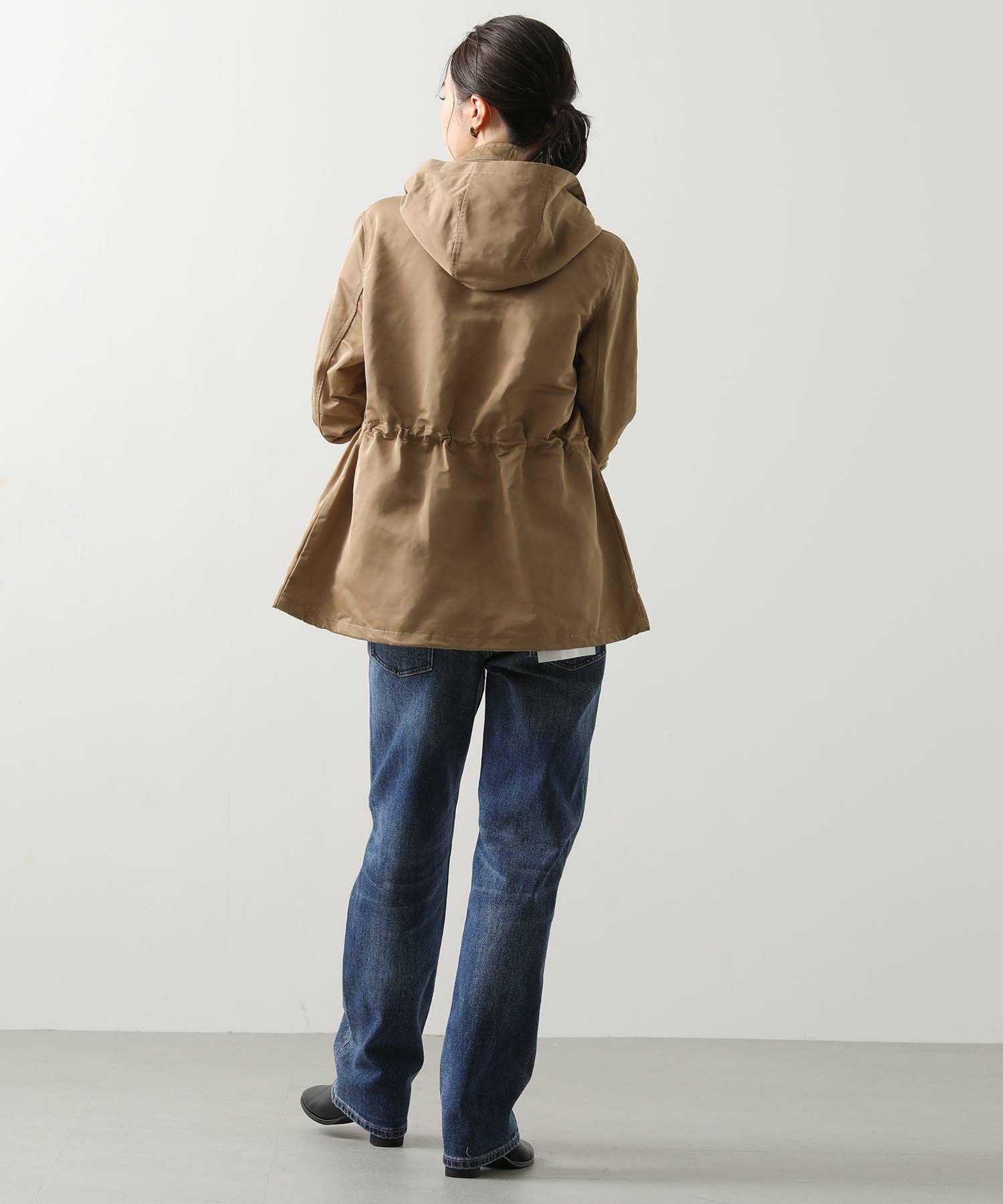 ウエストと裾はドロストで、気分やコーデに合わせてシルエットを変えられます。 フードは収納可能、しまってスタンドネックにすればスッキリとした印象に。