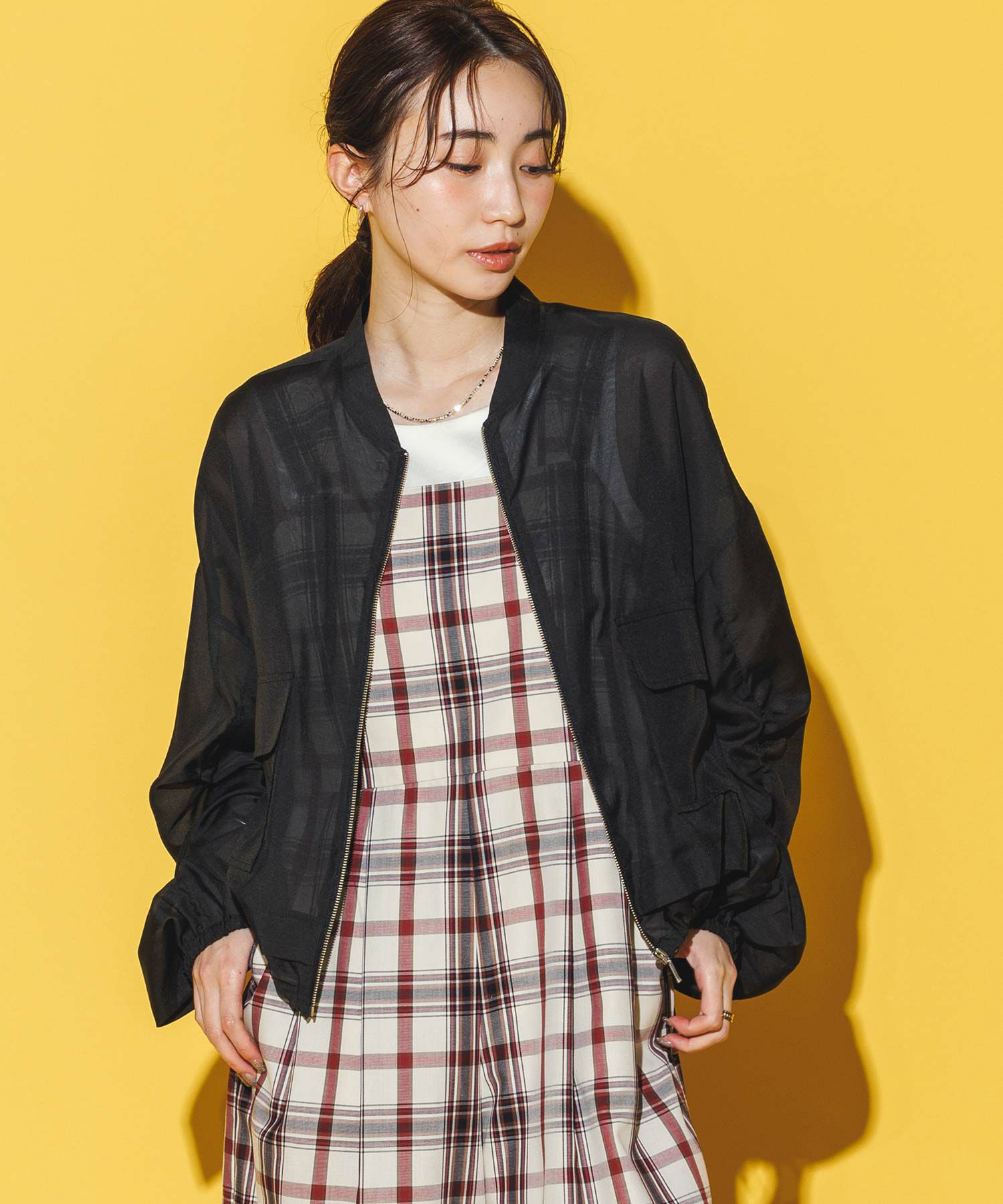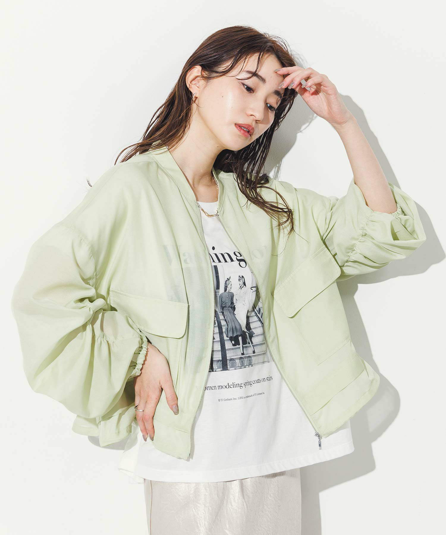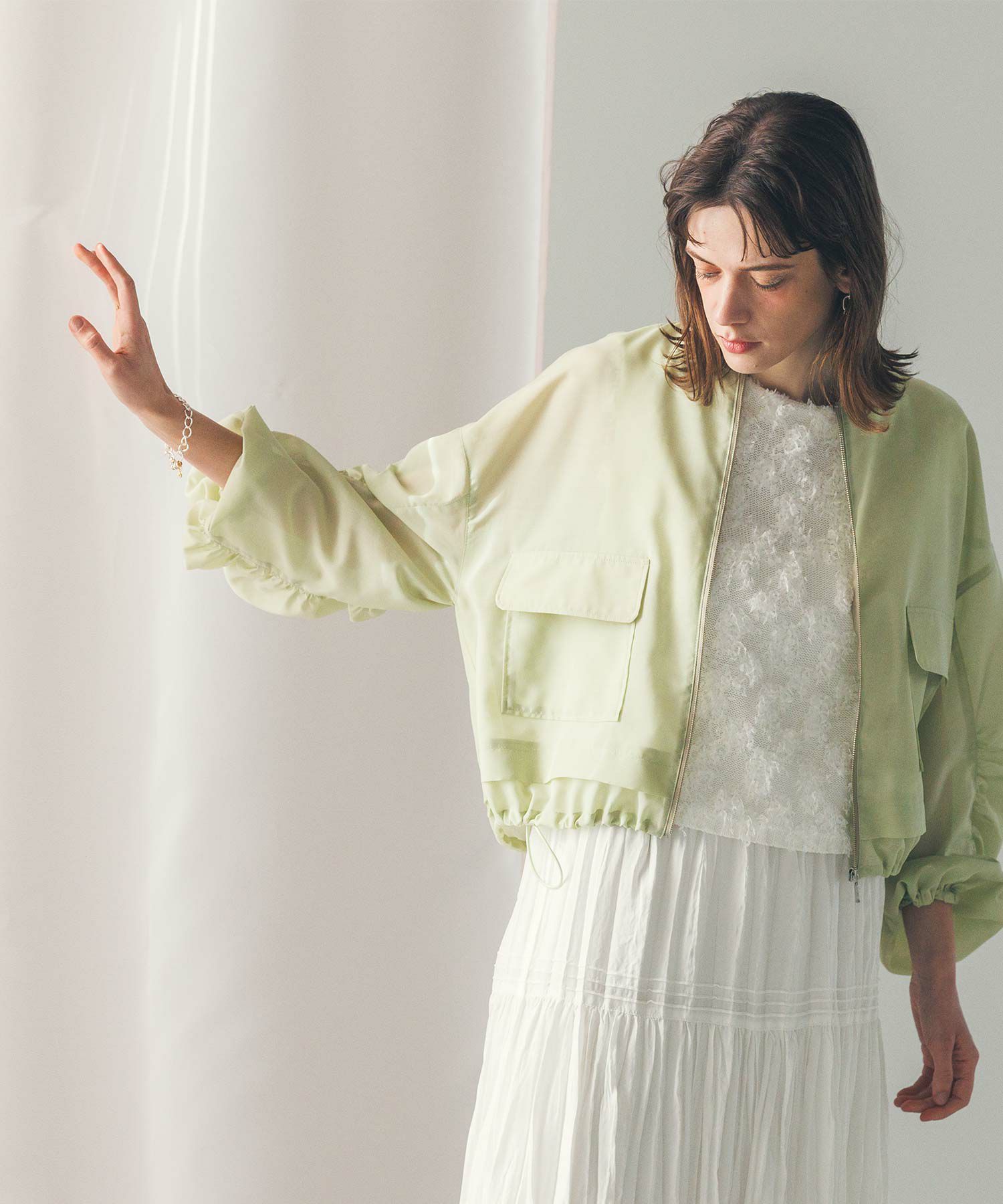 軽やかなシアー素材を使用したMA-1ブルゾン。