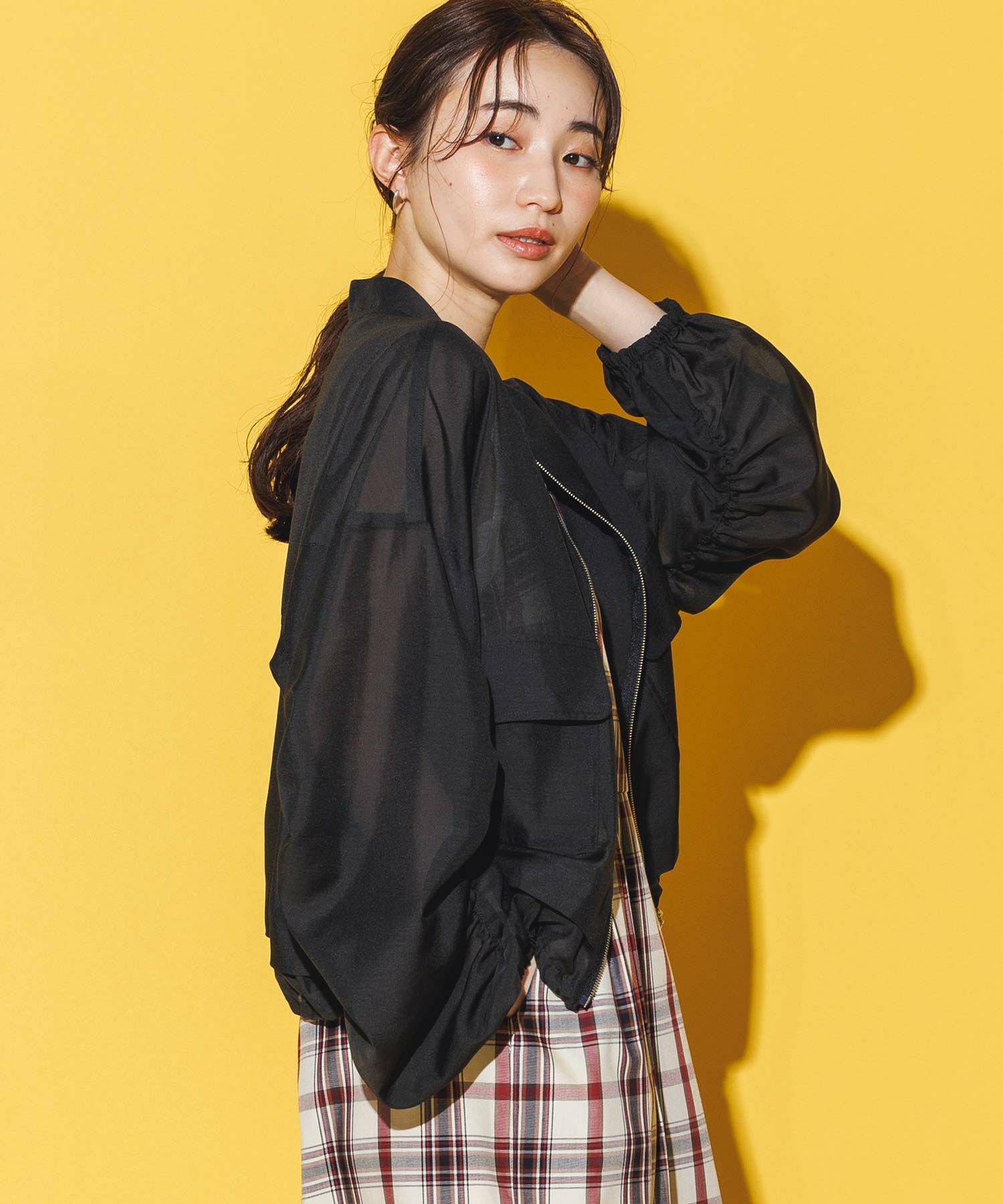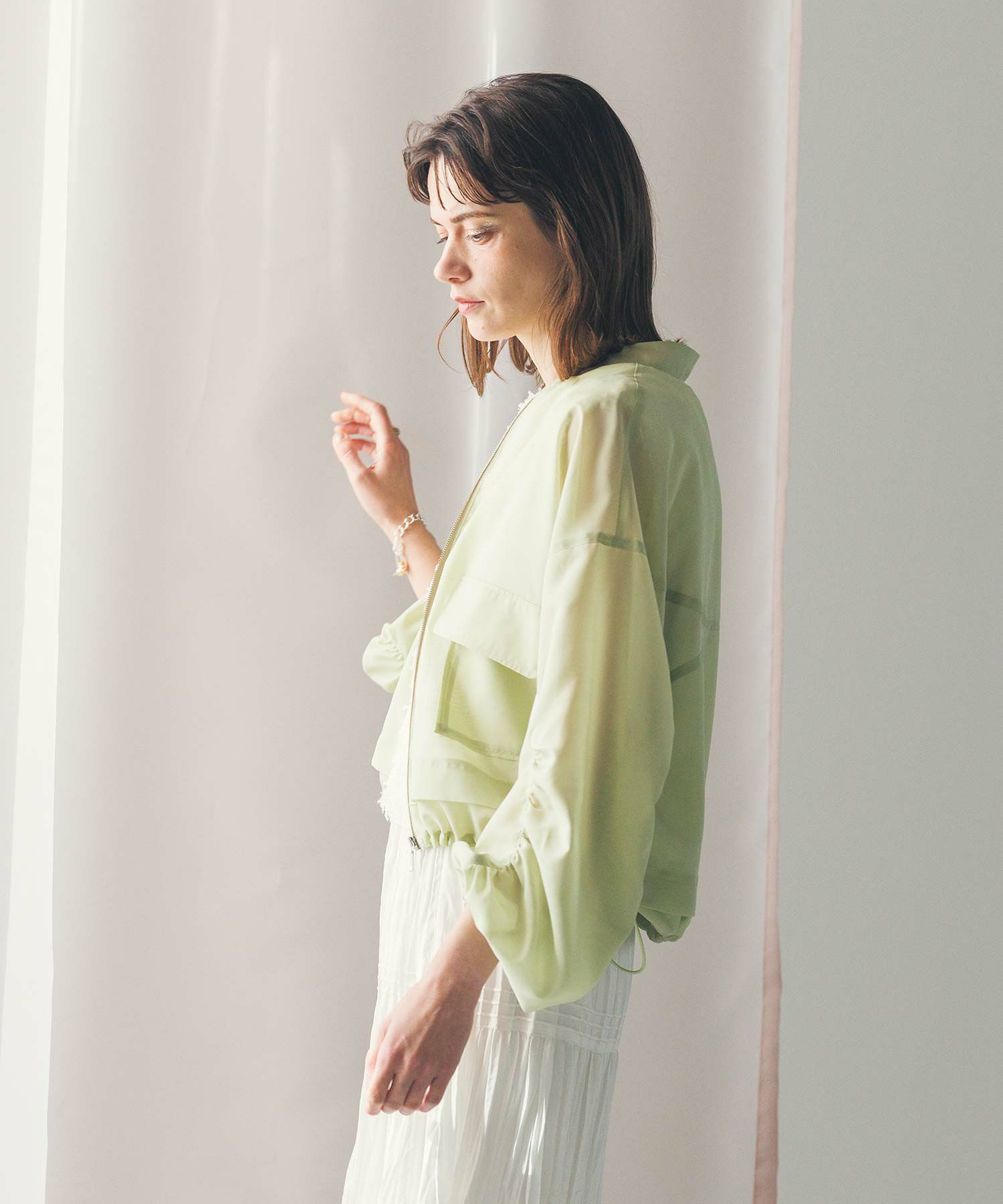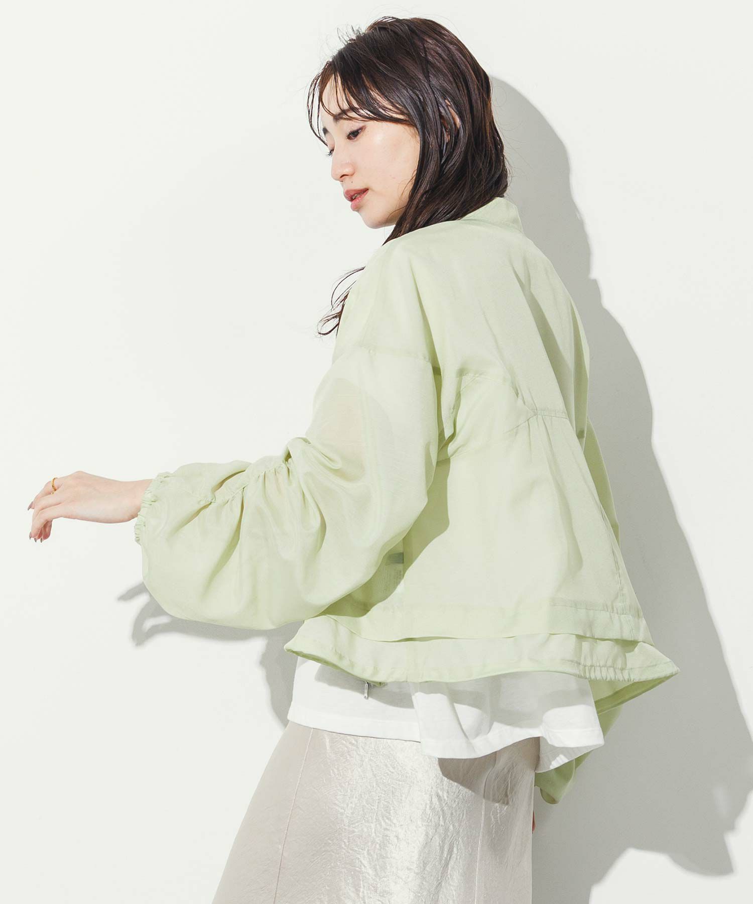 軽やかなシアー素材を使用したMA-1ブルゾン。