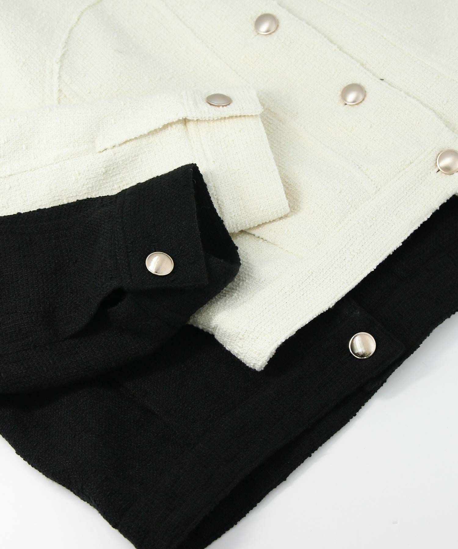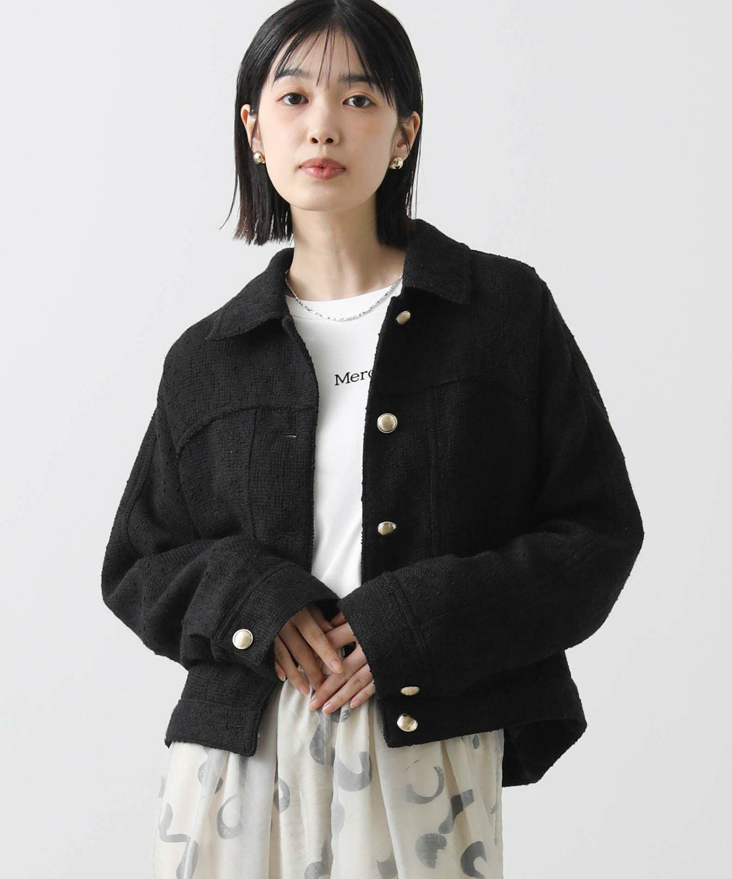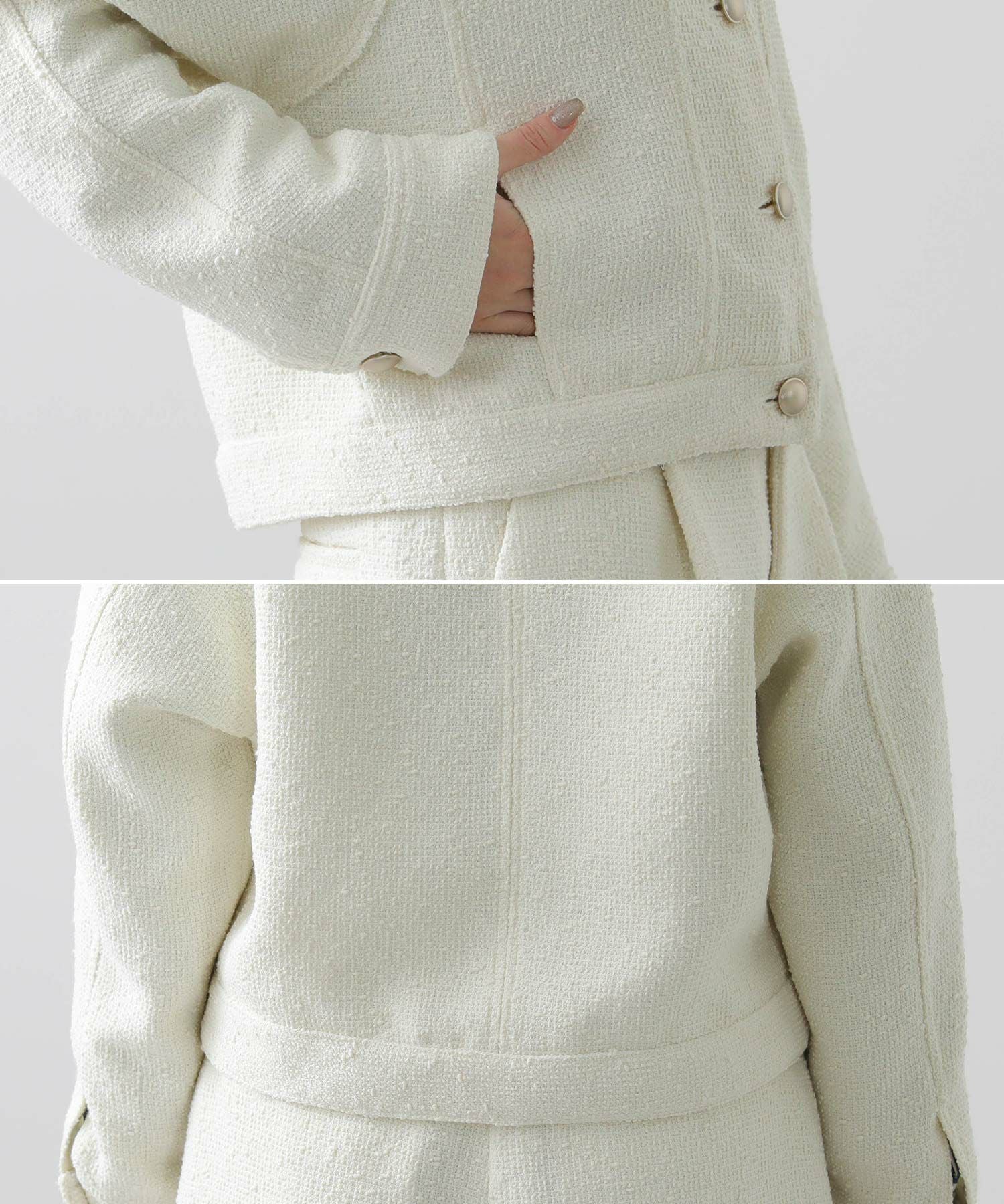ツイード素材×カジュアルデザインのブルゾンで、クラシカルなユーティリティMIXなブルゾンに仕上げました。
