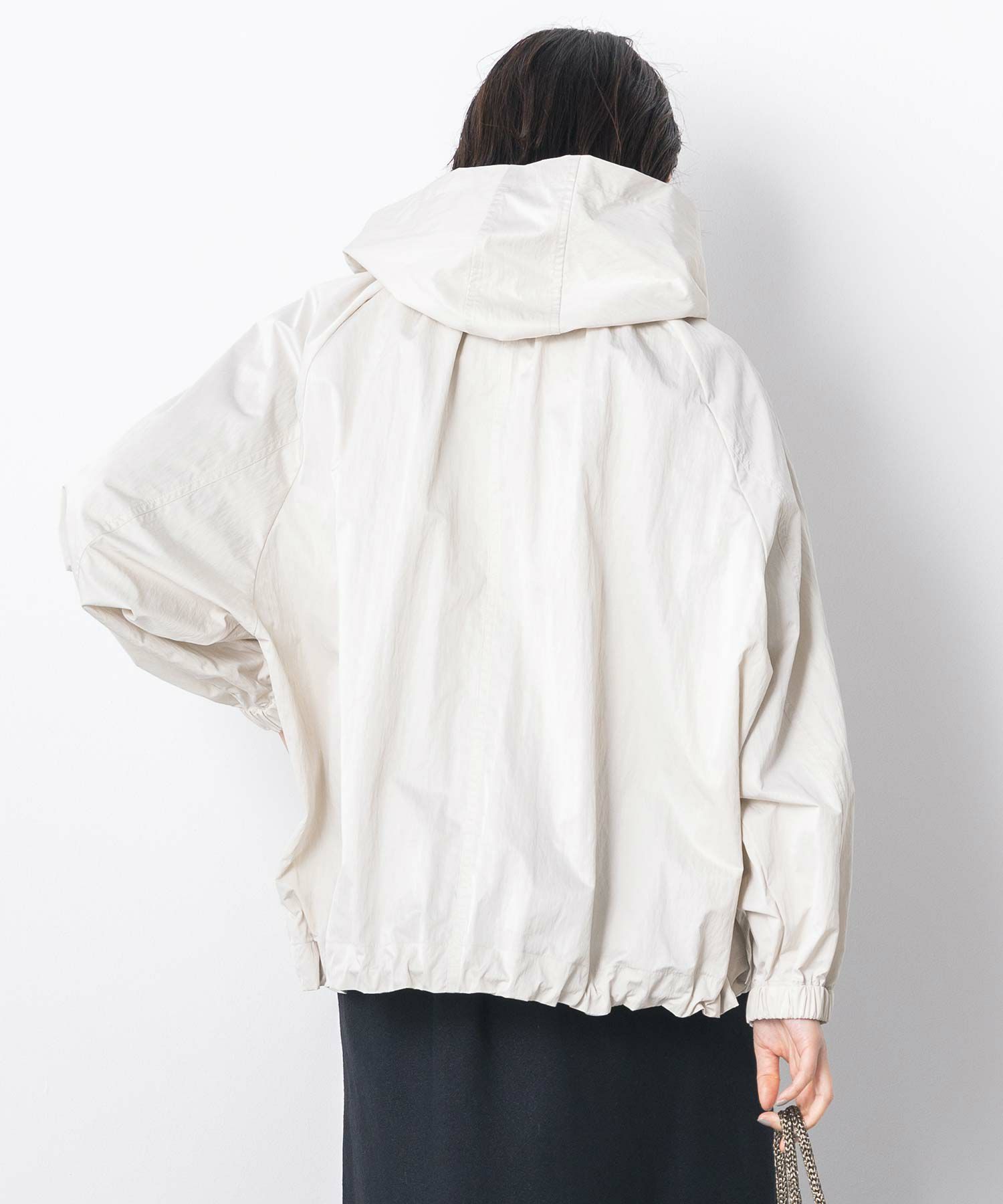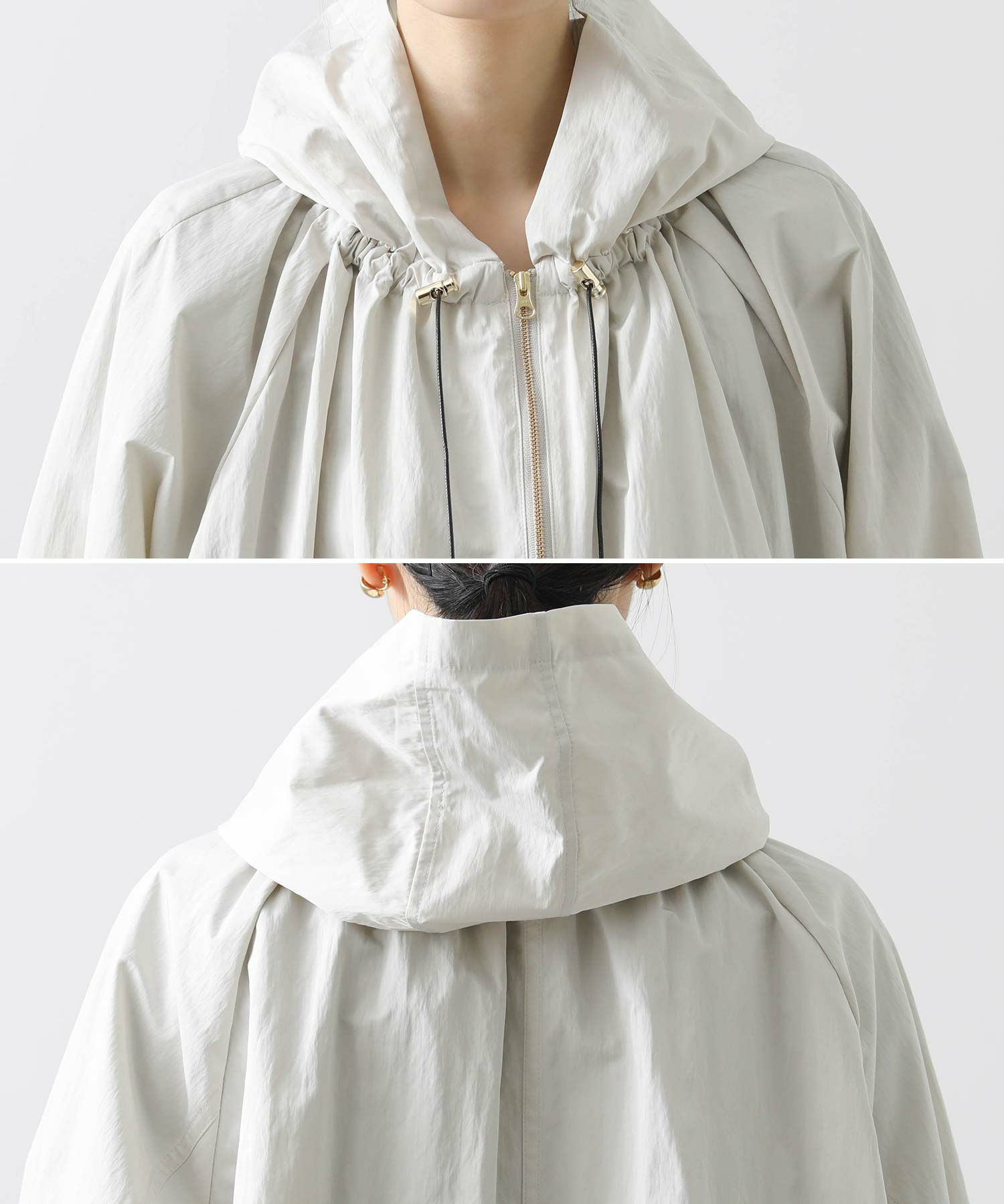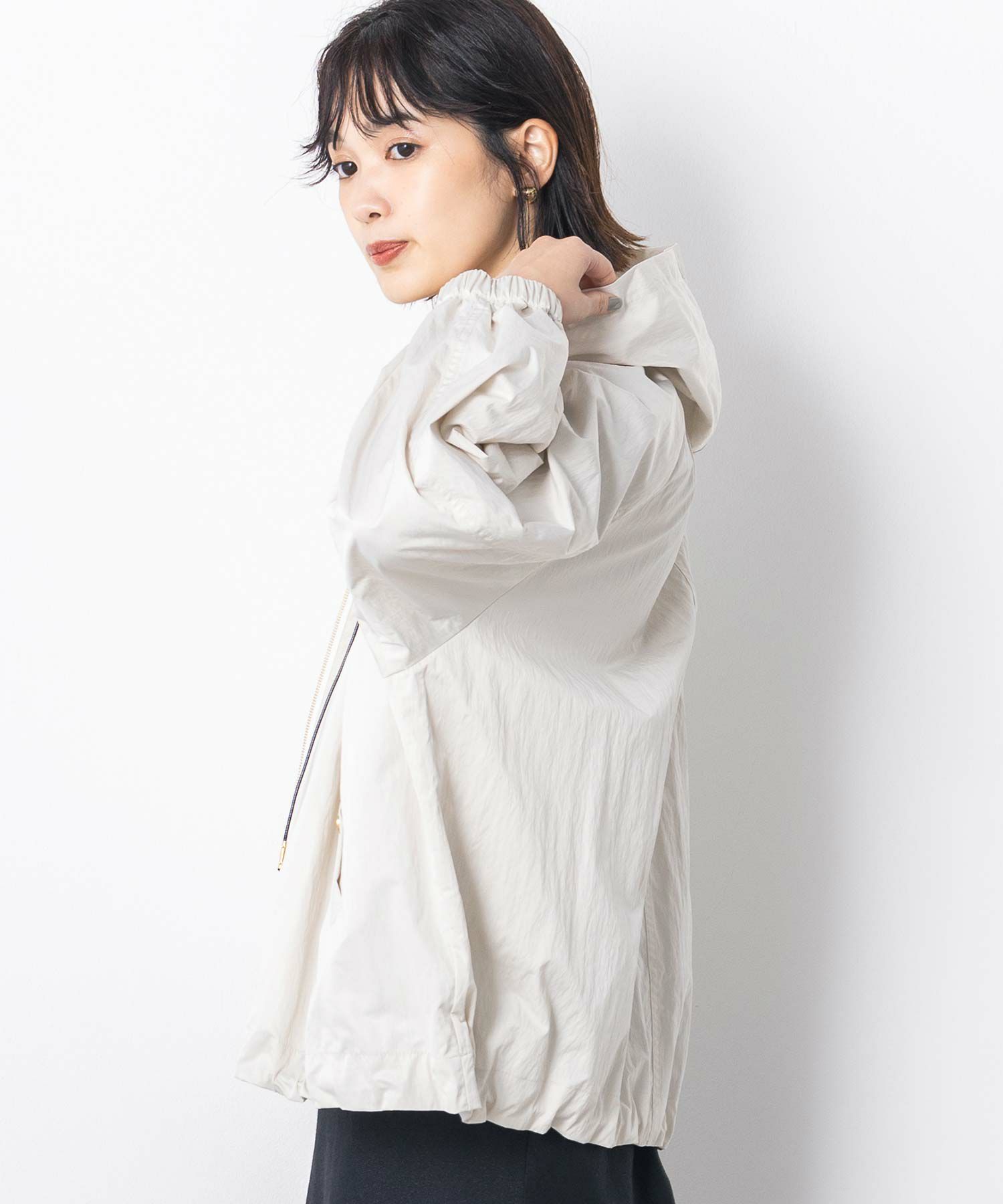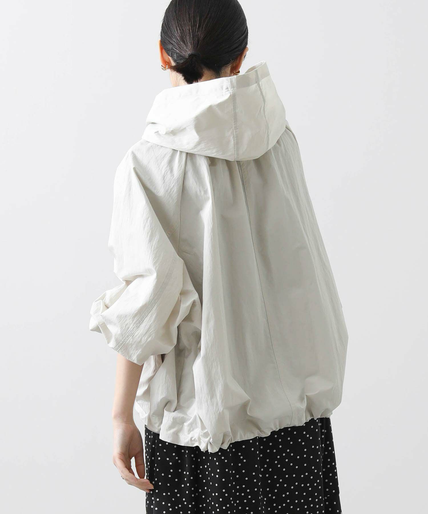 ギャザ-たっぷりの丸みのあるフォルムがかわいく、裾のドロストコードを絞ることで、ころんとしたシルエットに。