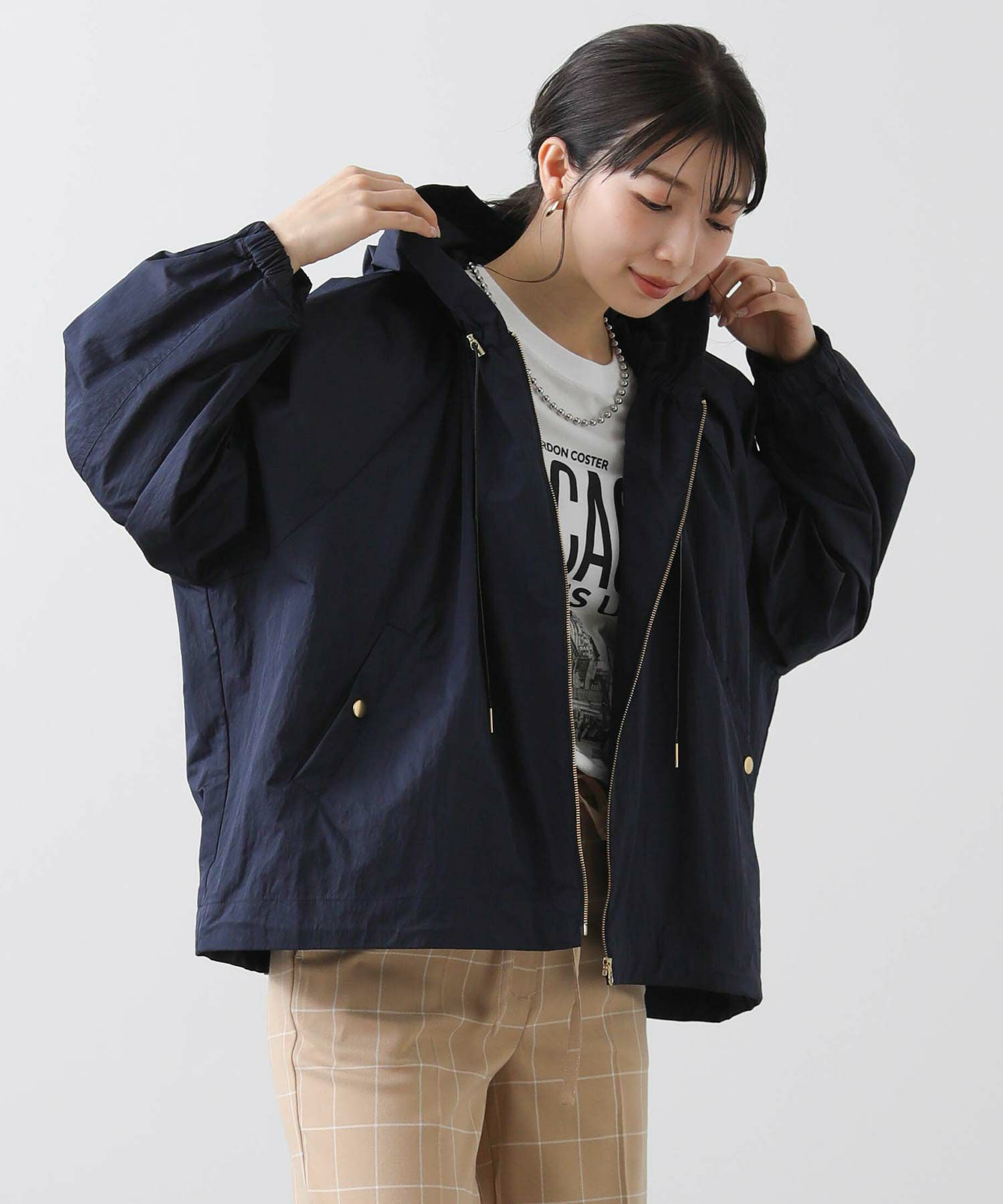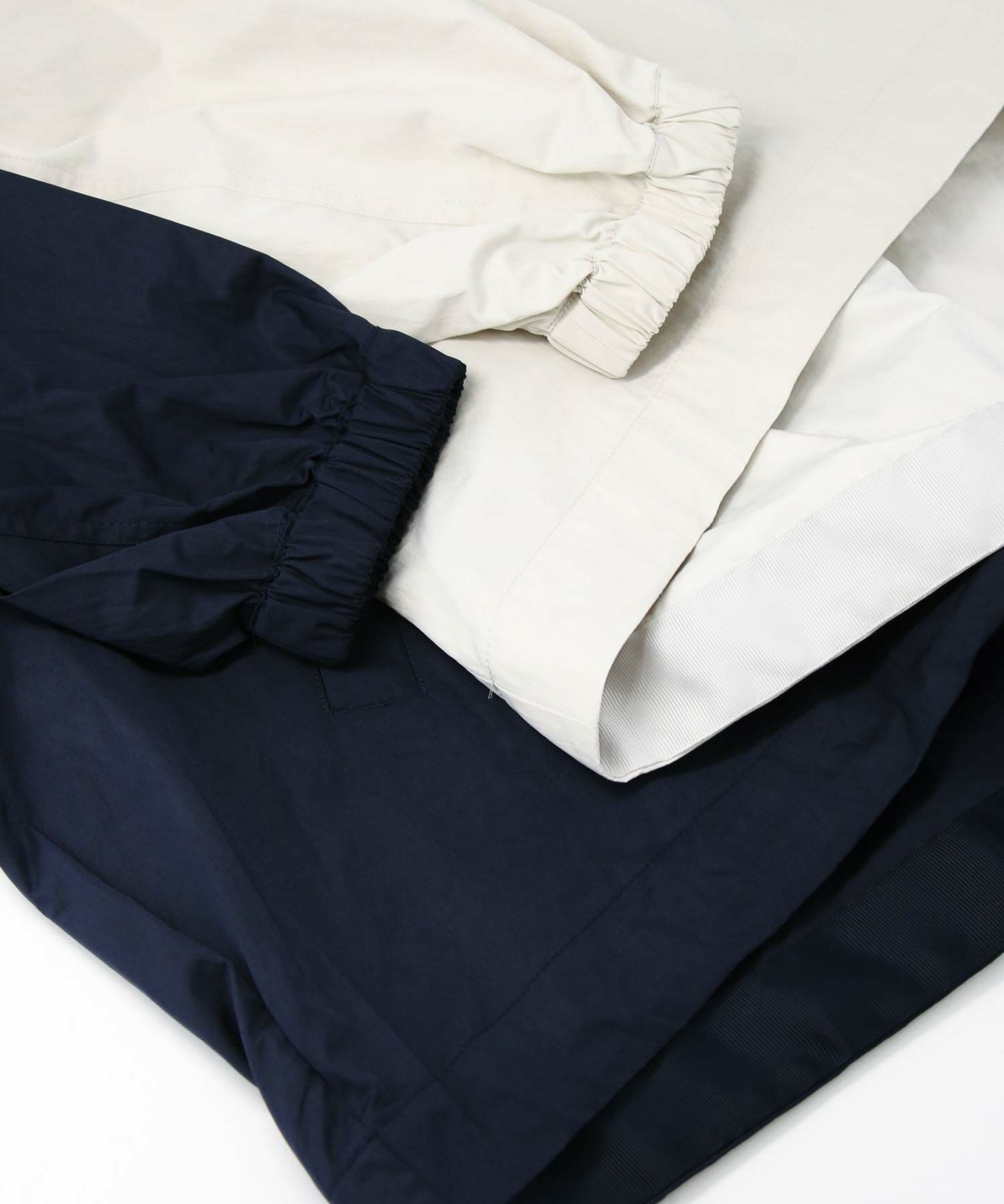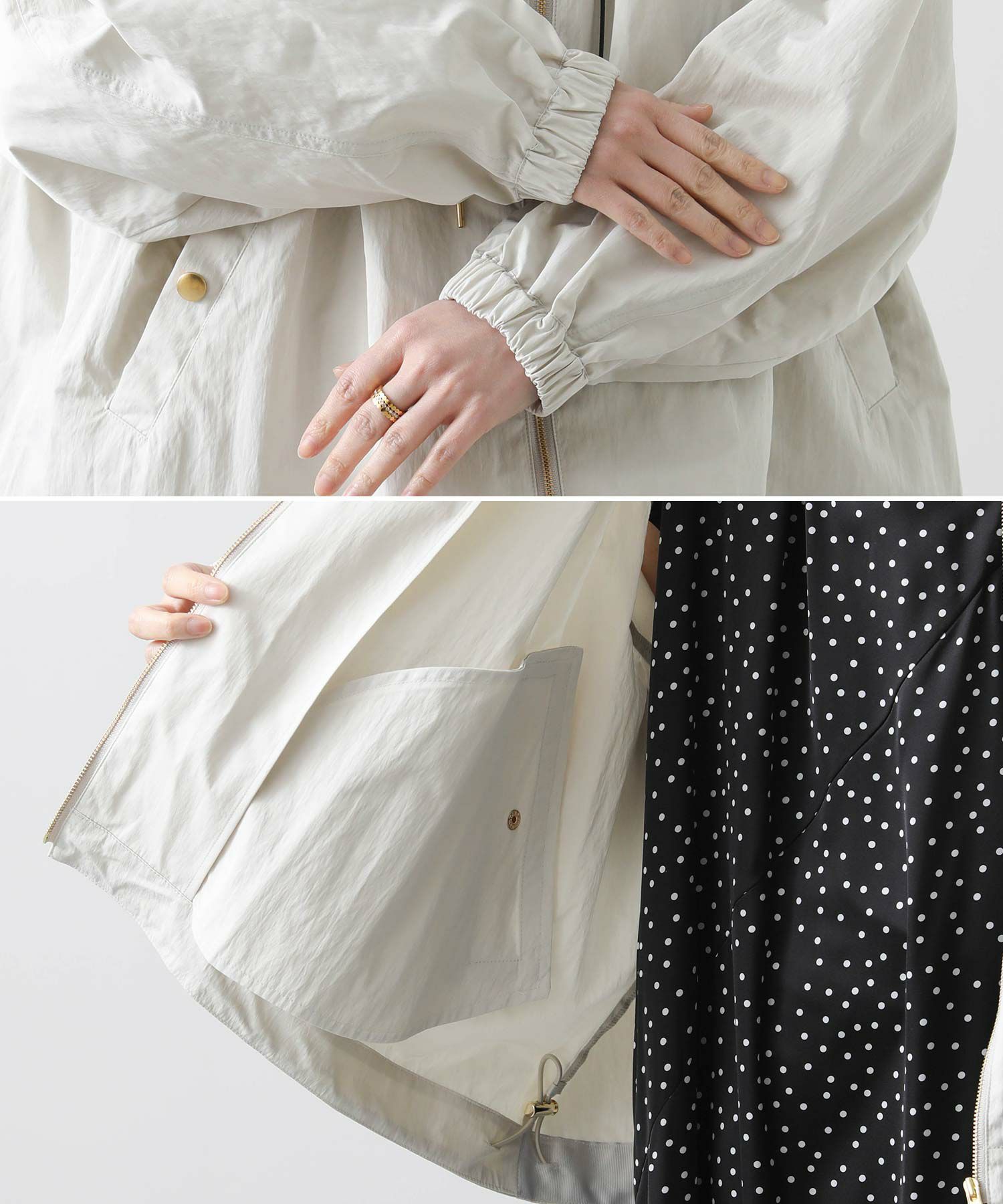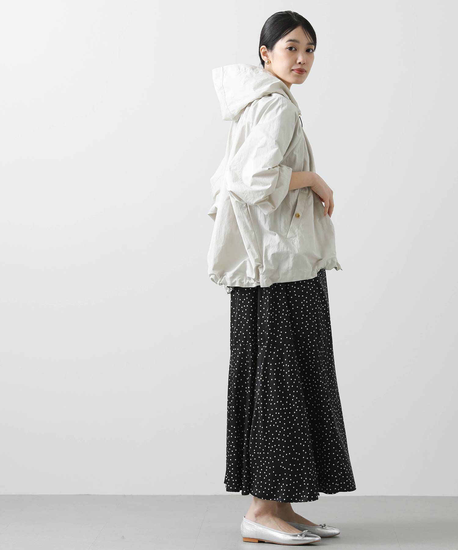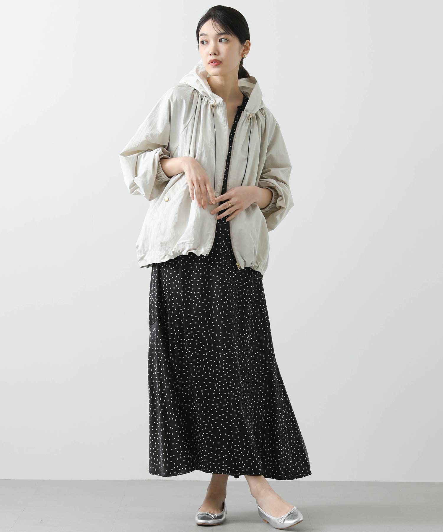 ギャザ-たっぷりの丸みのあるフォルムがかわいく、裾のドロストコードを絞ることで、ころんとしたシルエットに。