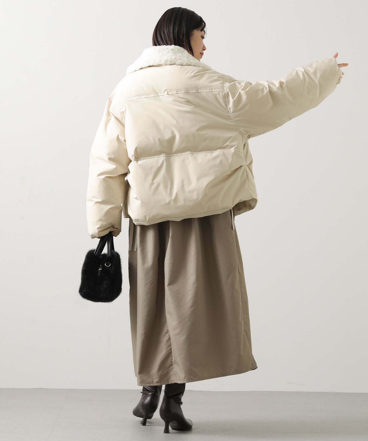 ボア衿ダウンバルーンスリーブコート