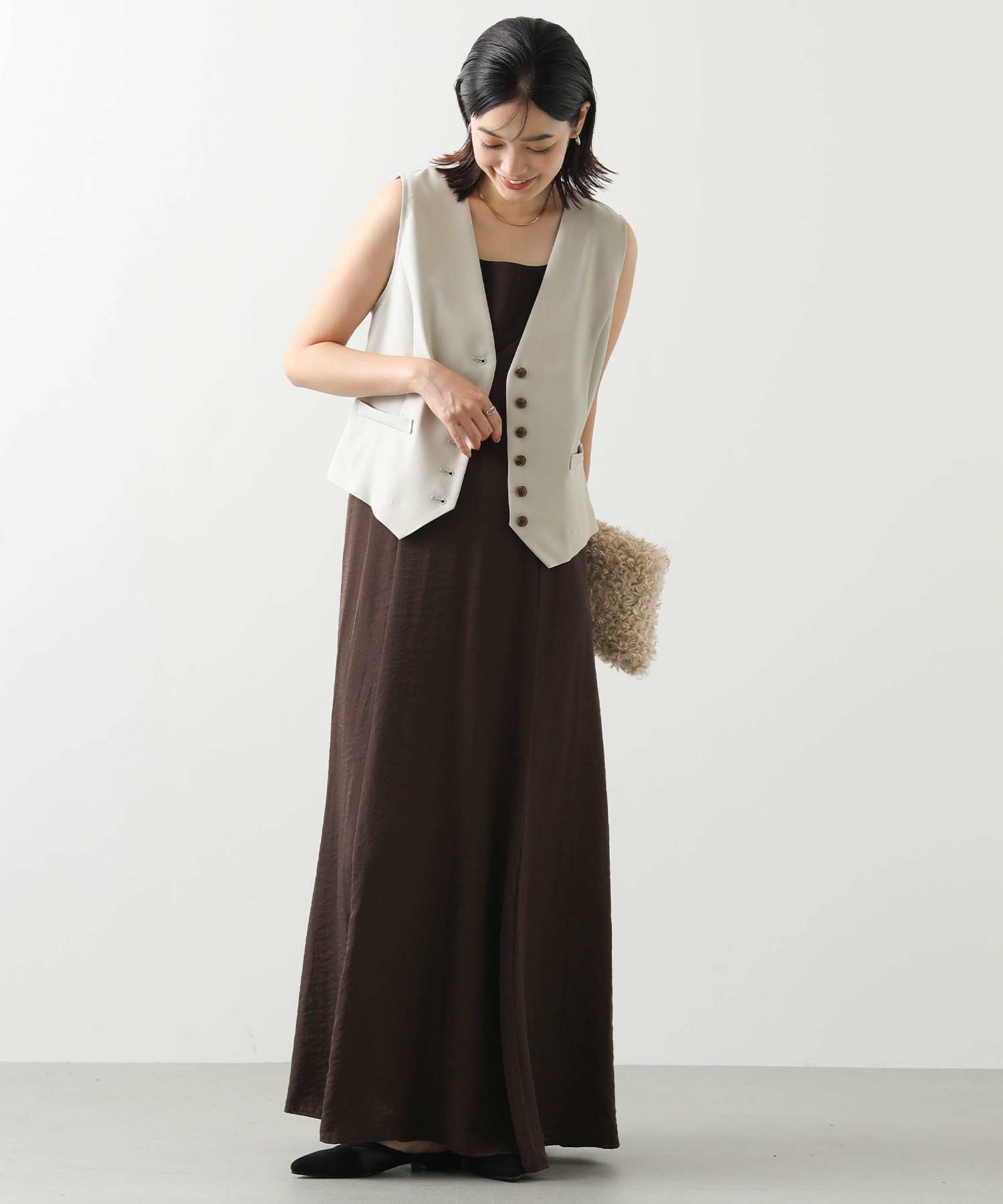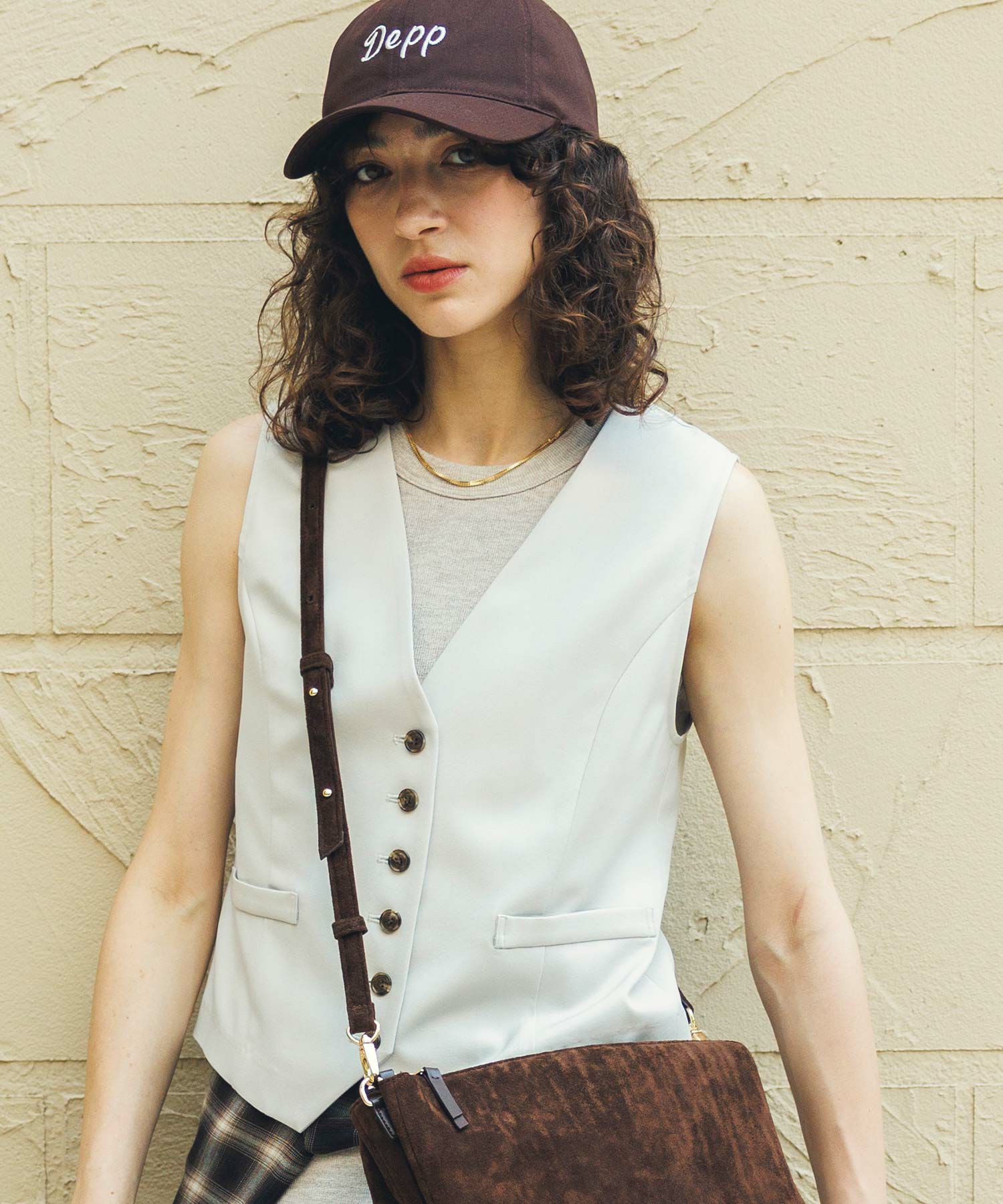 マニッシュに決まるショートベスト。