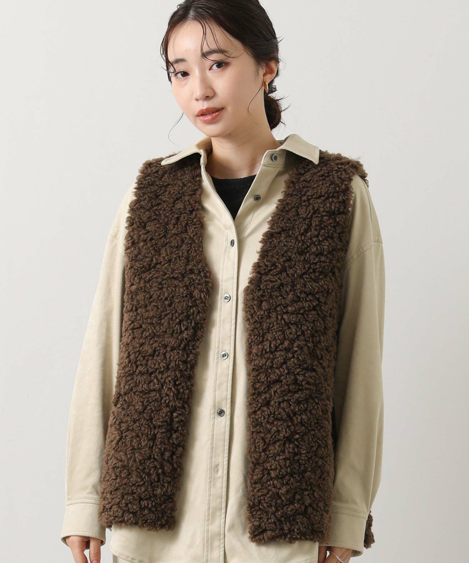 エコファーながらリアルで高級感ある素材感で、リアルなカーリーファーが洗礼された大人女子の雰囲気にマッチ。