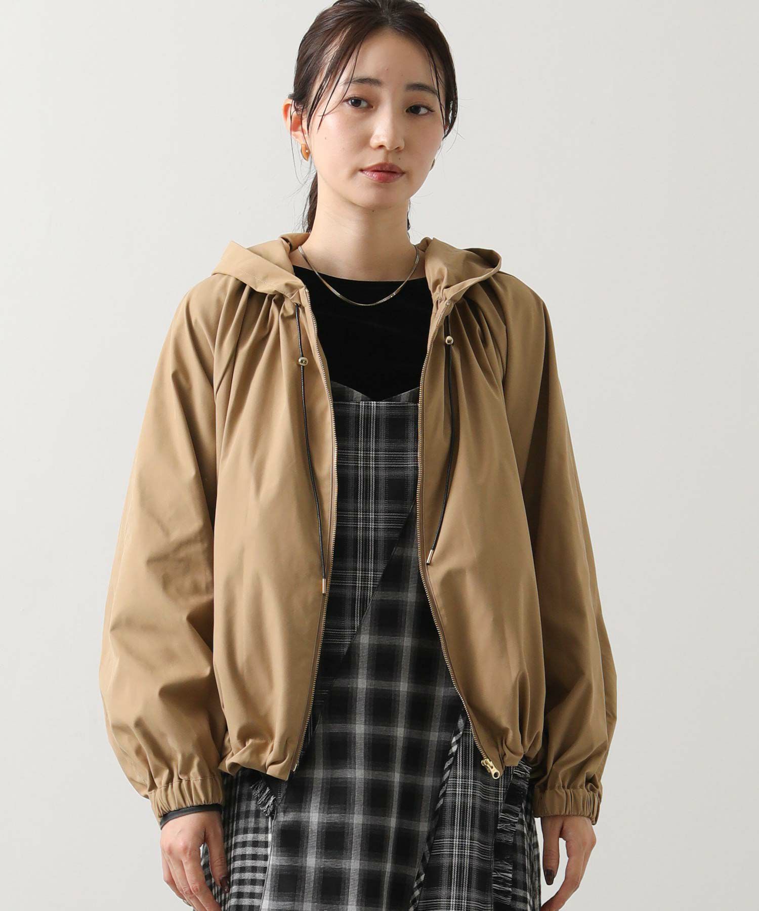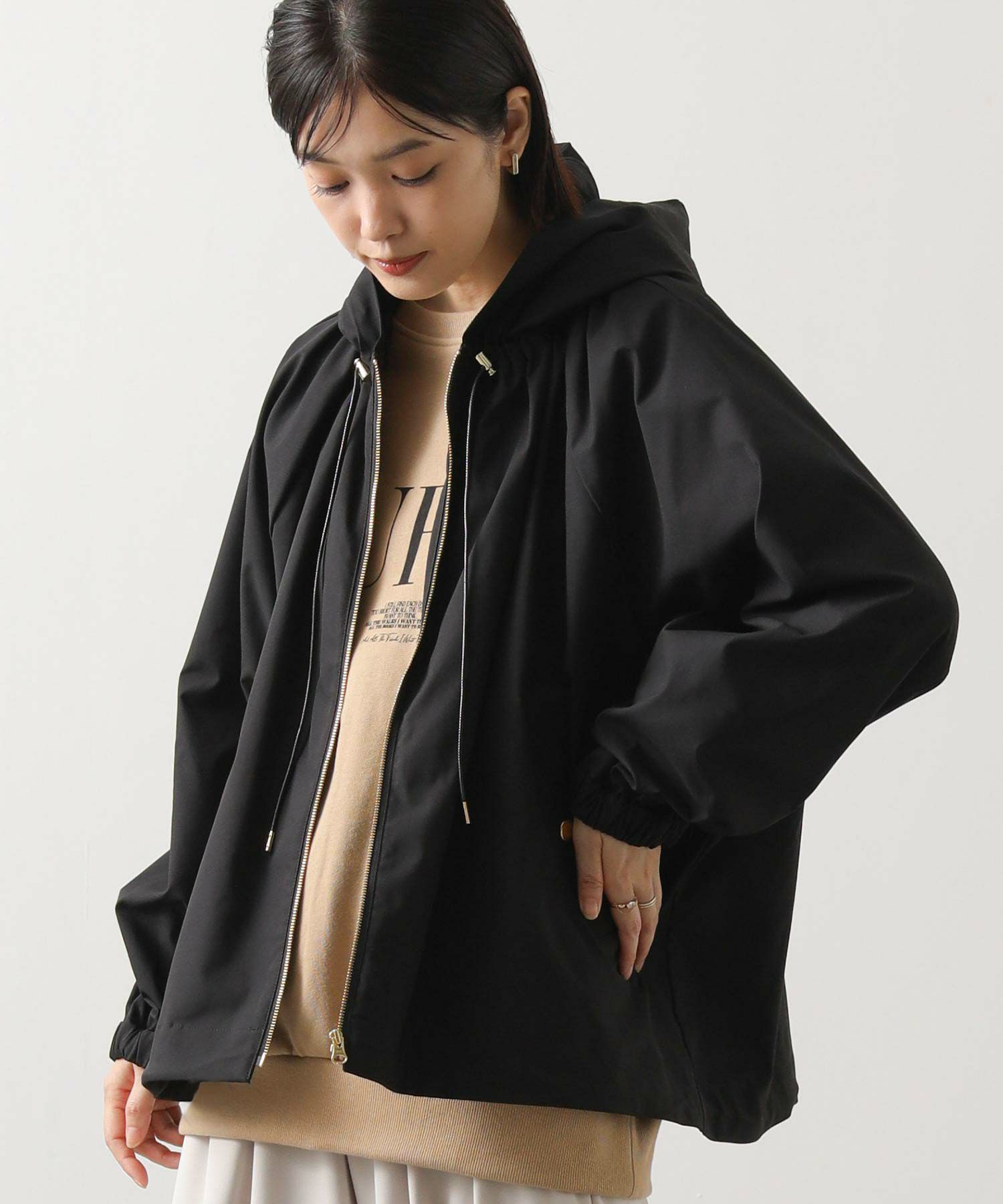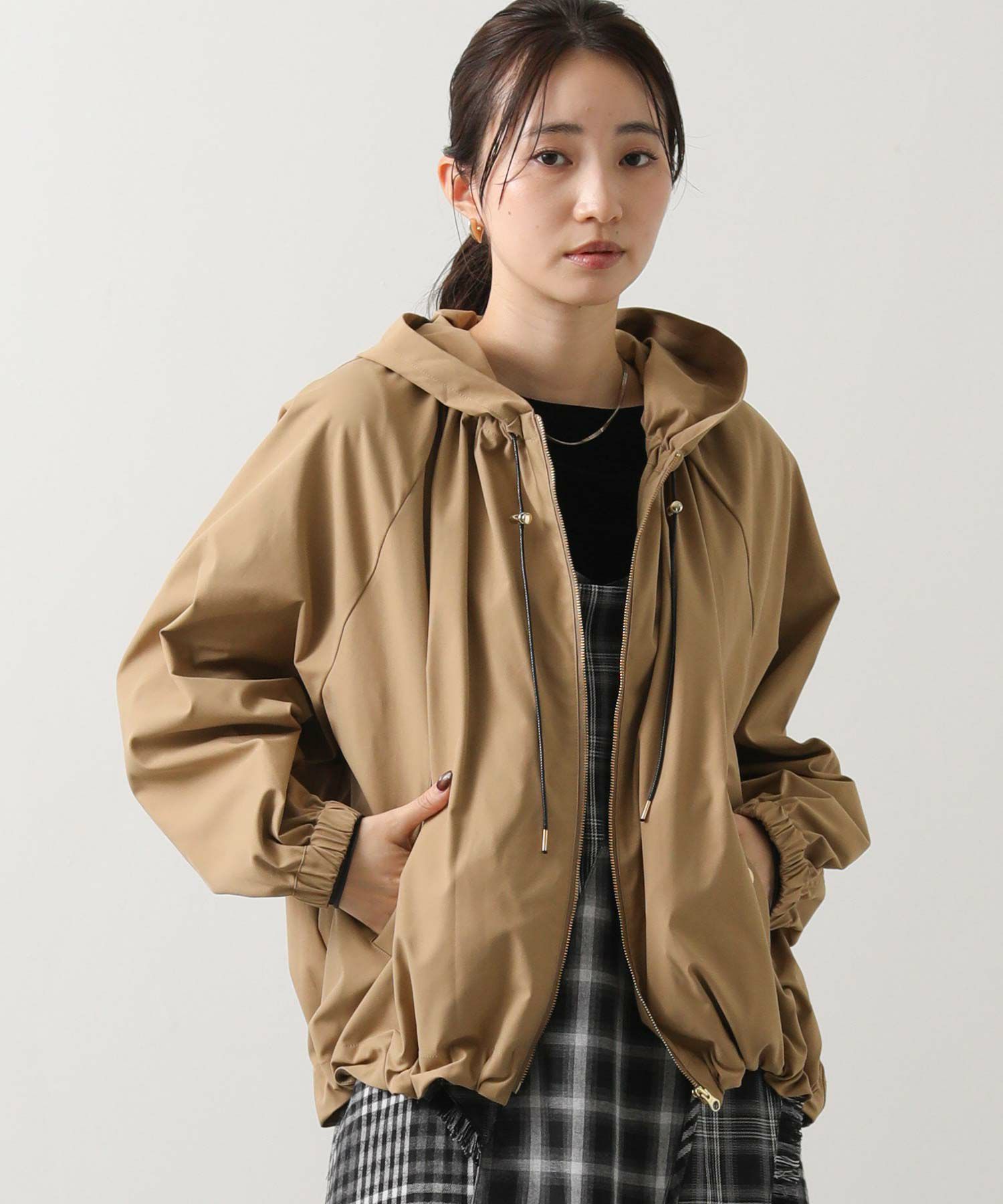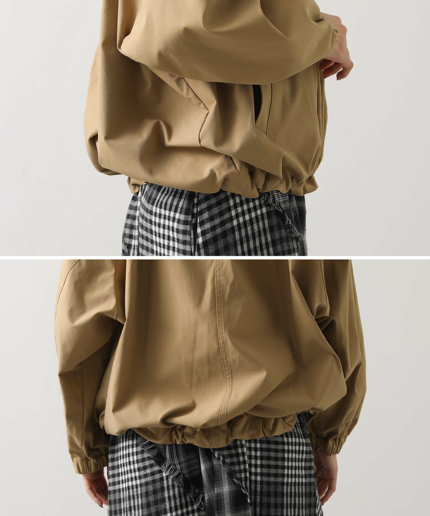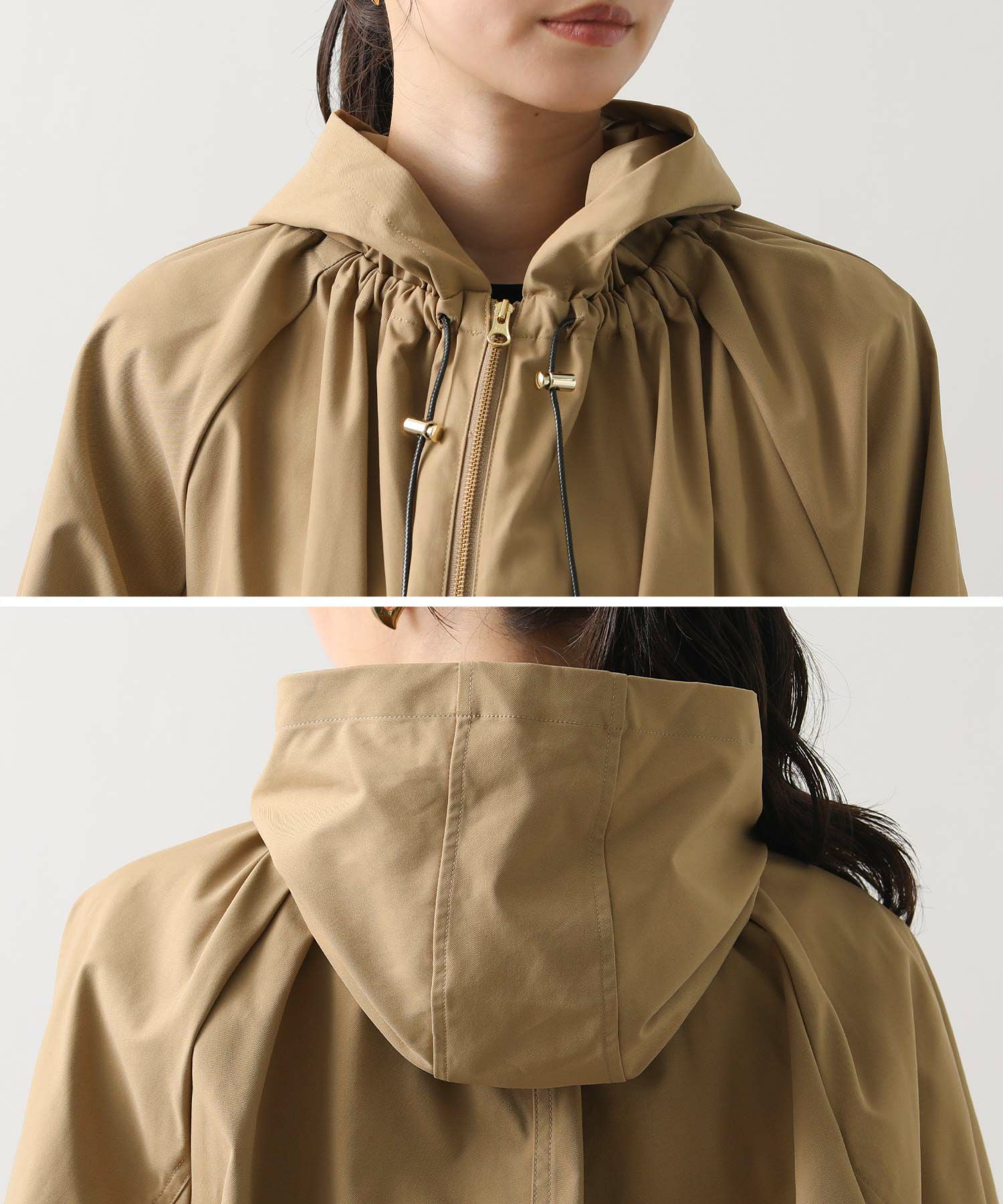 ギャザ-たっぷりの丸みのあるフォルムがかわいく、裾のドロストコードを絞ることで、ころんとしたシルエットに。