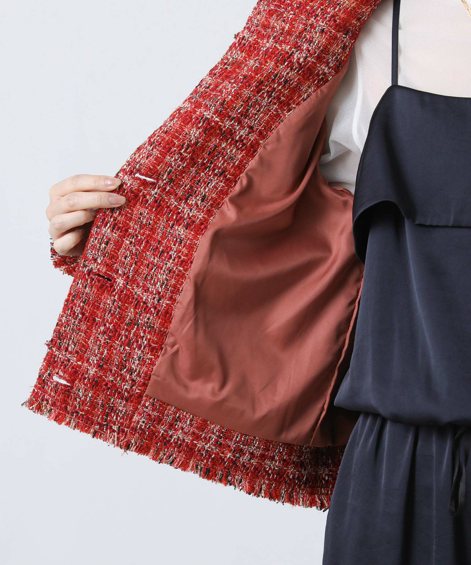 クラシカルな雰囲気が上品で大人なファンシーツイードジャケット。
