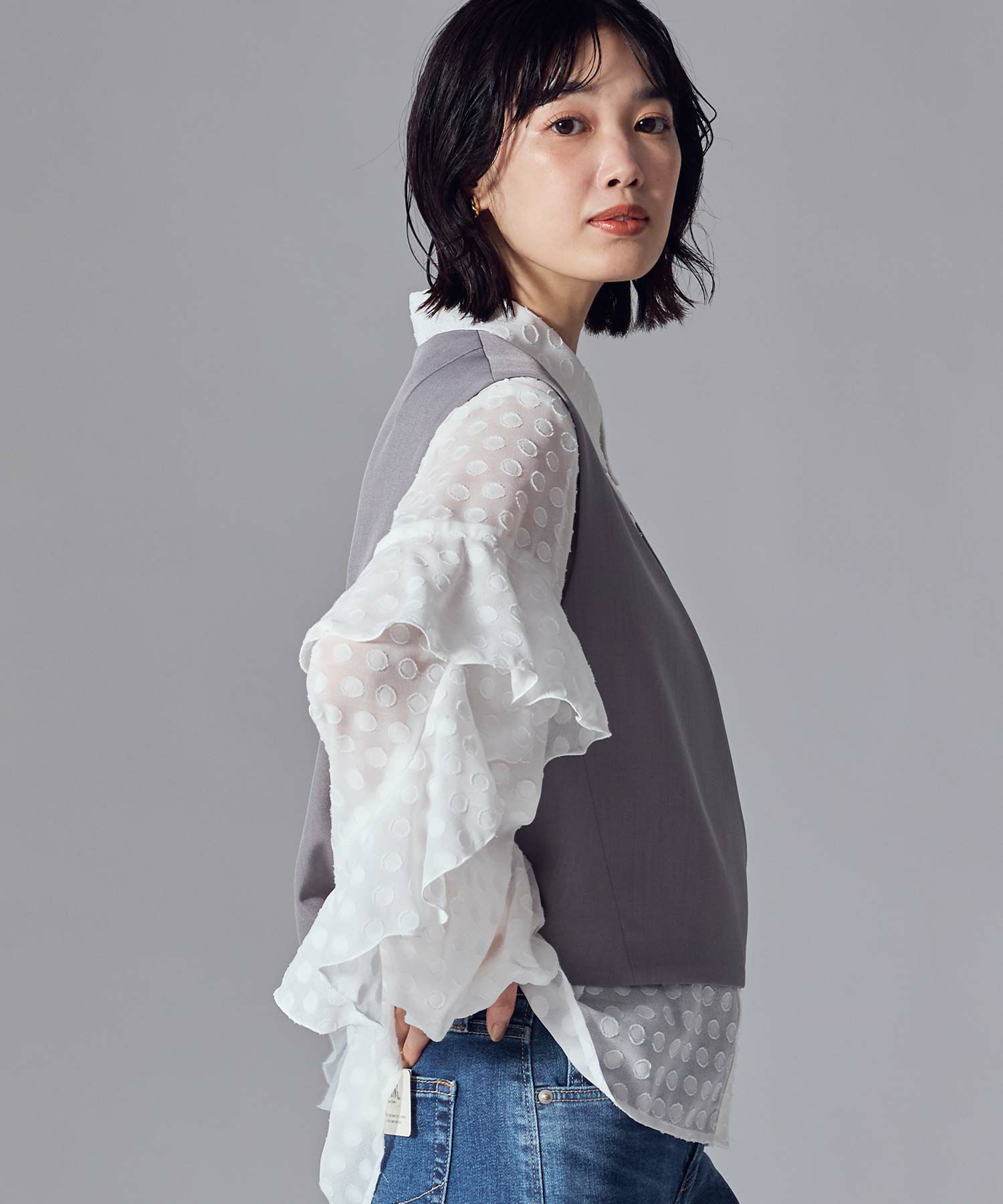 ※着用画像は撮影状況、光の当たり具合で色みが違って見える場合がございます。実際の色みについては、画像一覧の最後に掲載している詳細画像をご参照ください。