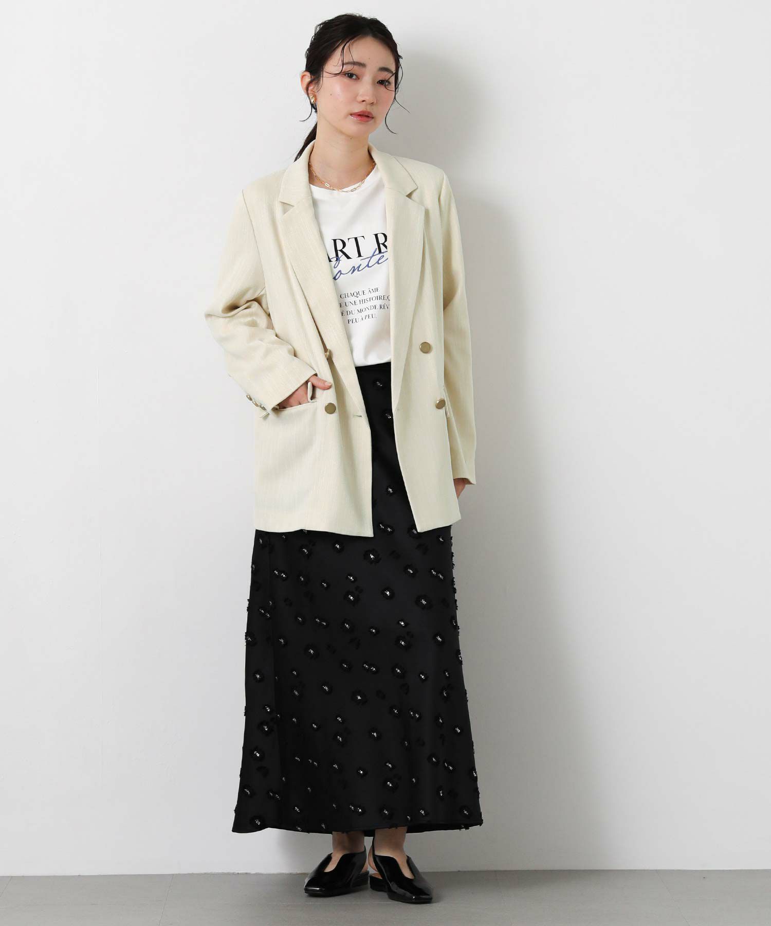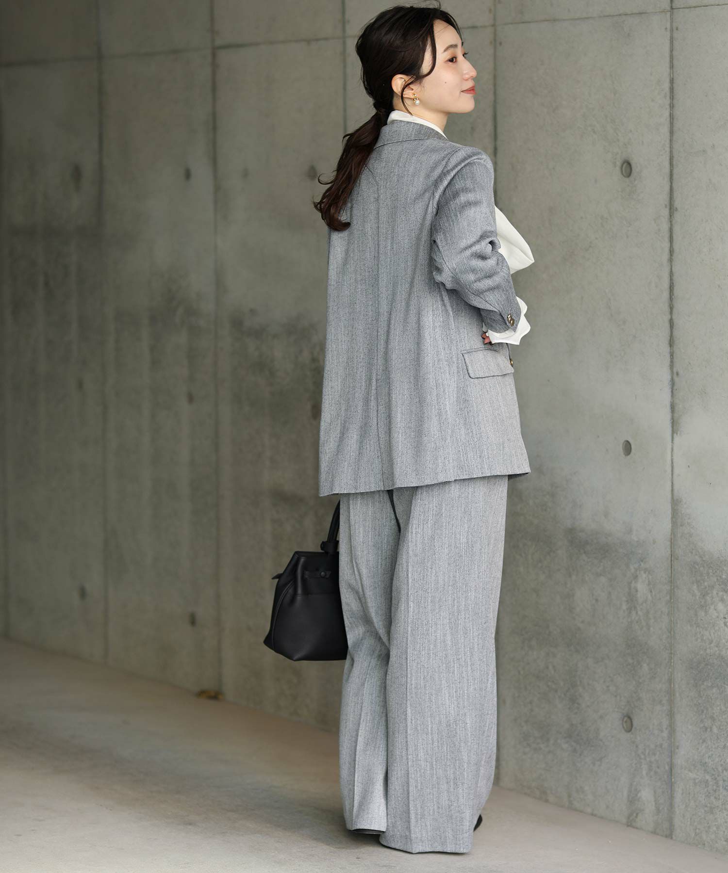 同素材のパンツLUスラブハイウエストワイド(OEO1034426004)とセットアップでの着こなしもオススメ。