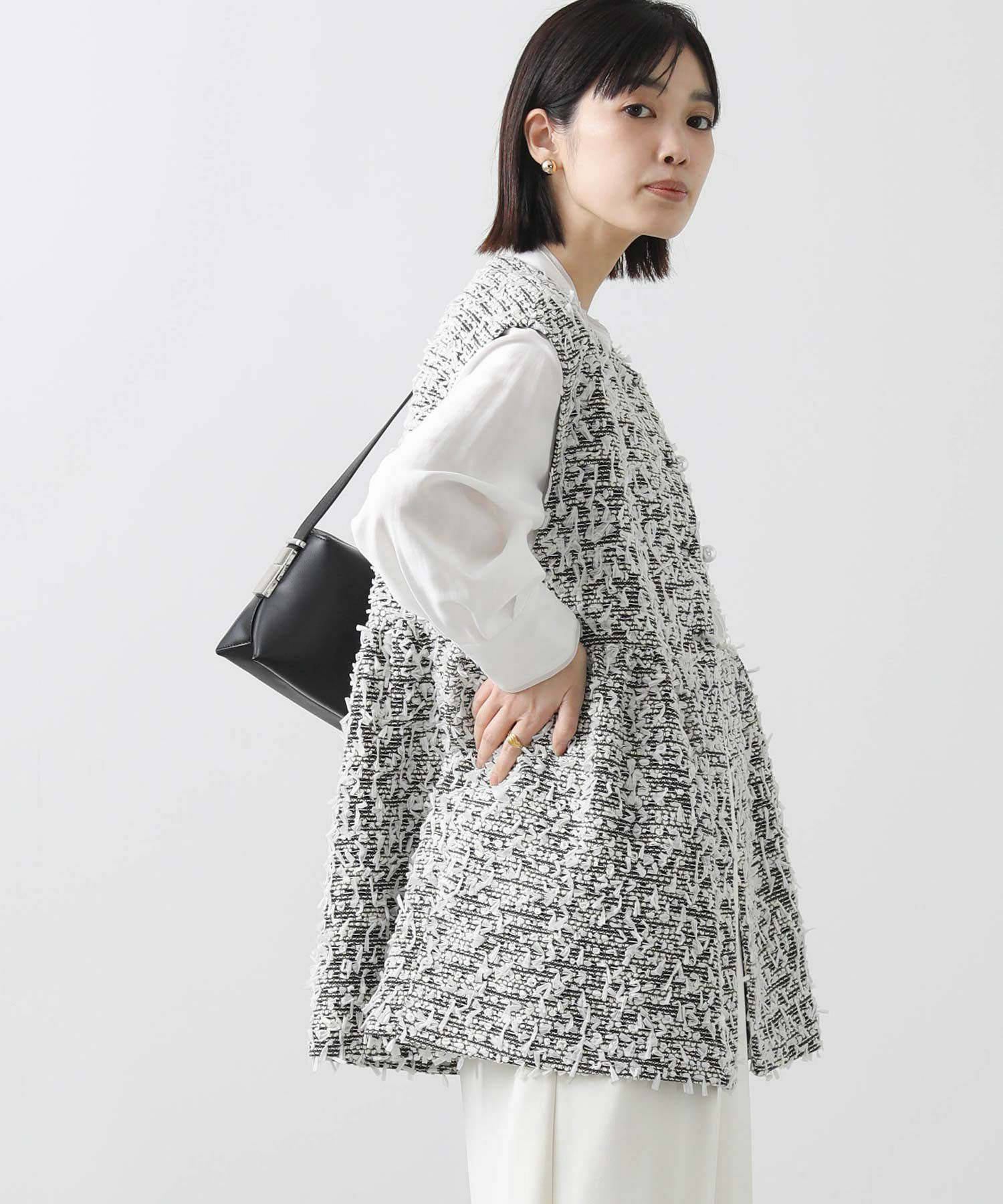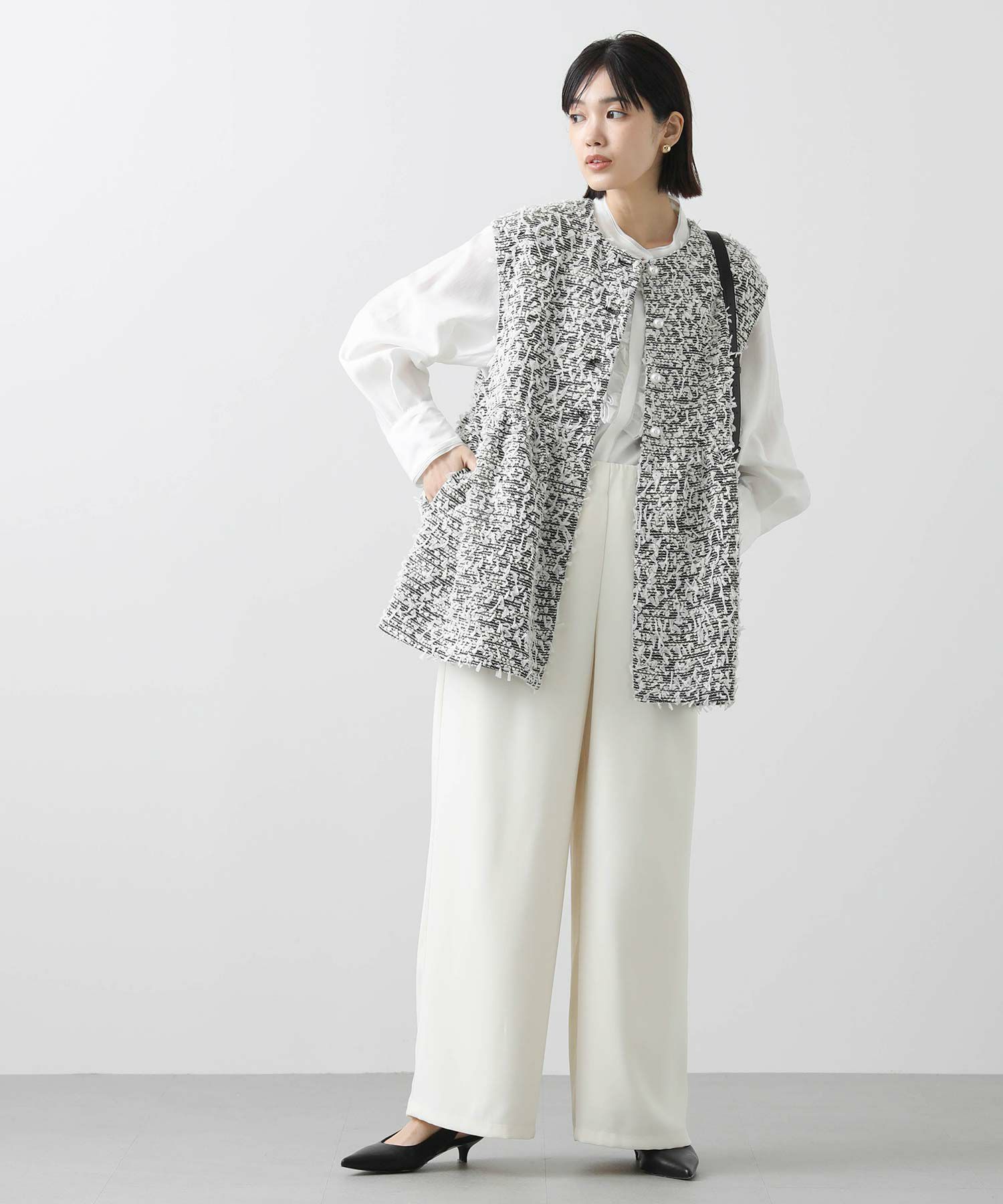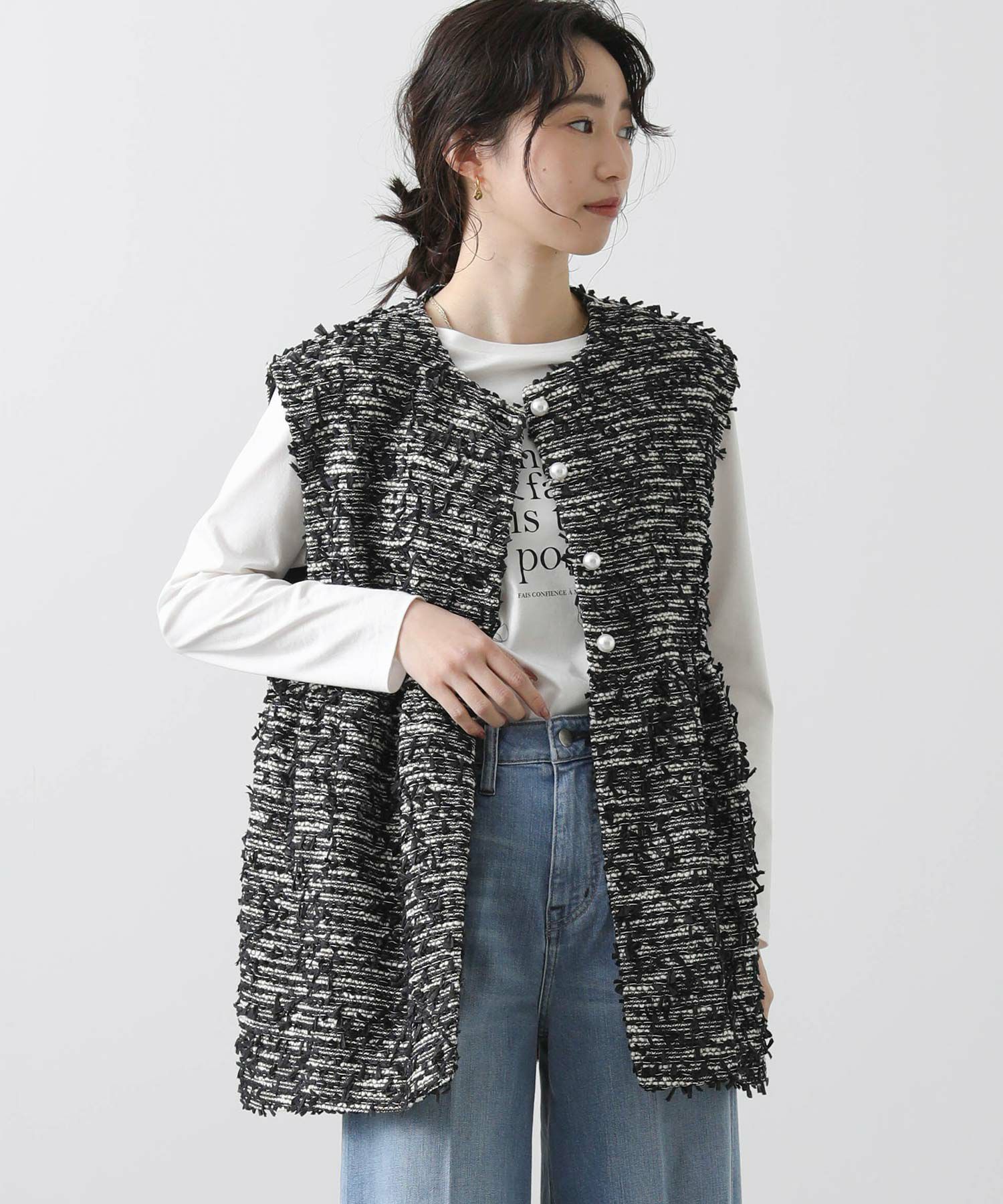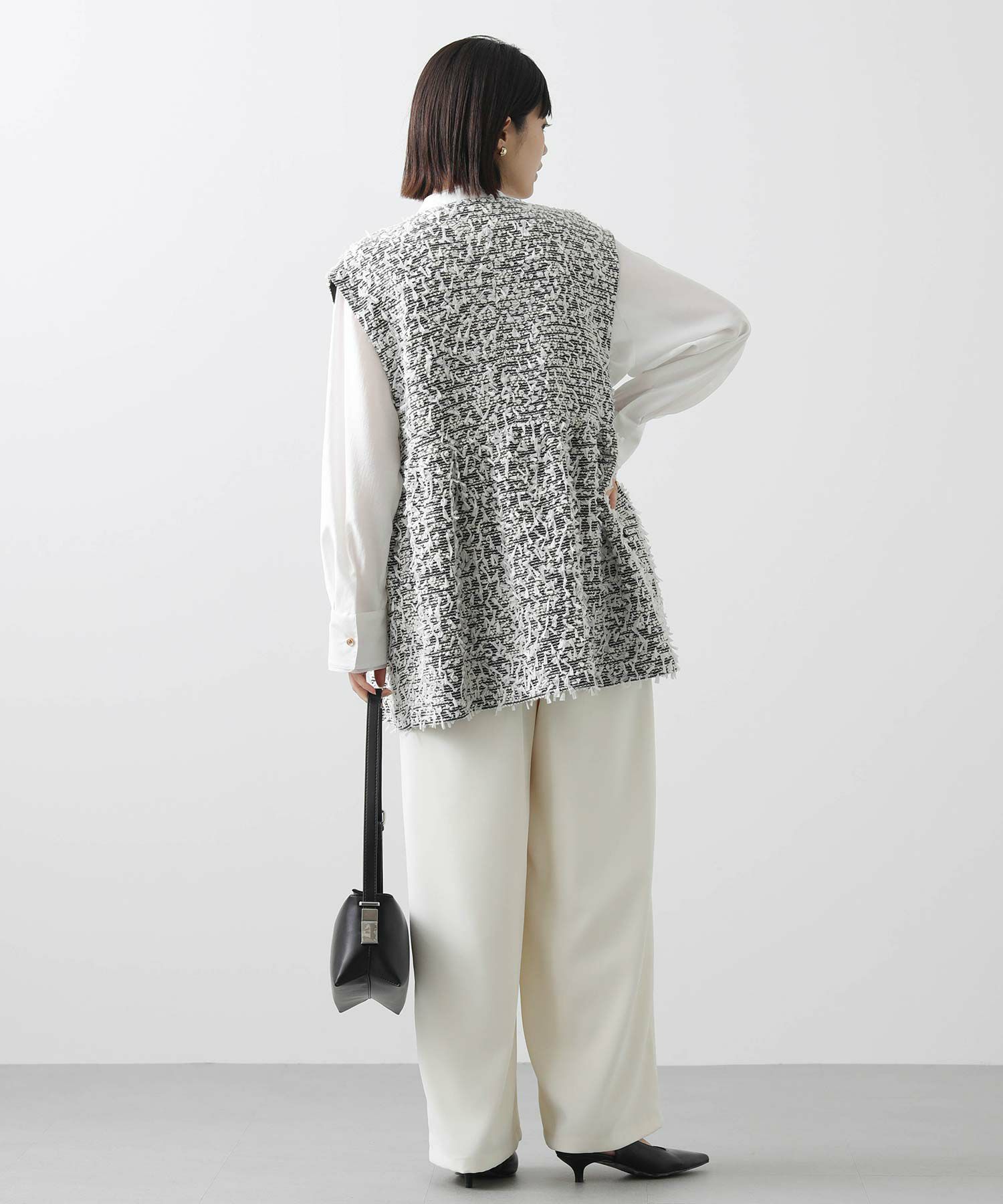 今季のLUSTEEK一押し!トレンドのリボンテープ使いがかわいいツイードベスト。オケージョンからカジュアルまで様々なシーンで着まわせて、1枚羽織るだけでパッと華やかな印象に仕上がります。
