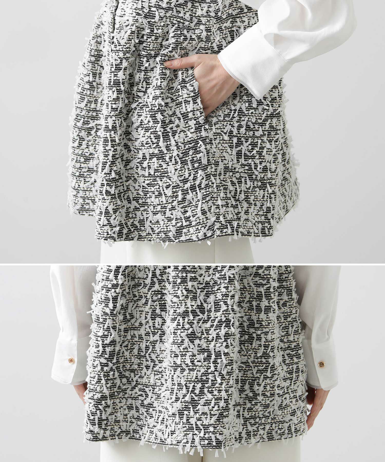 ※着用画像は撮影状況、光の当たり具合で色みが違って見える場合がございます。実際の色みについては、画像一覧の最後に掲載している詳細画像をご参照ください。