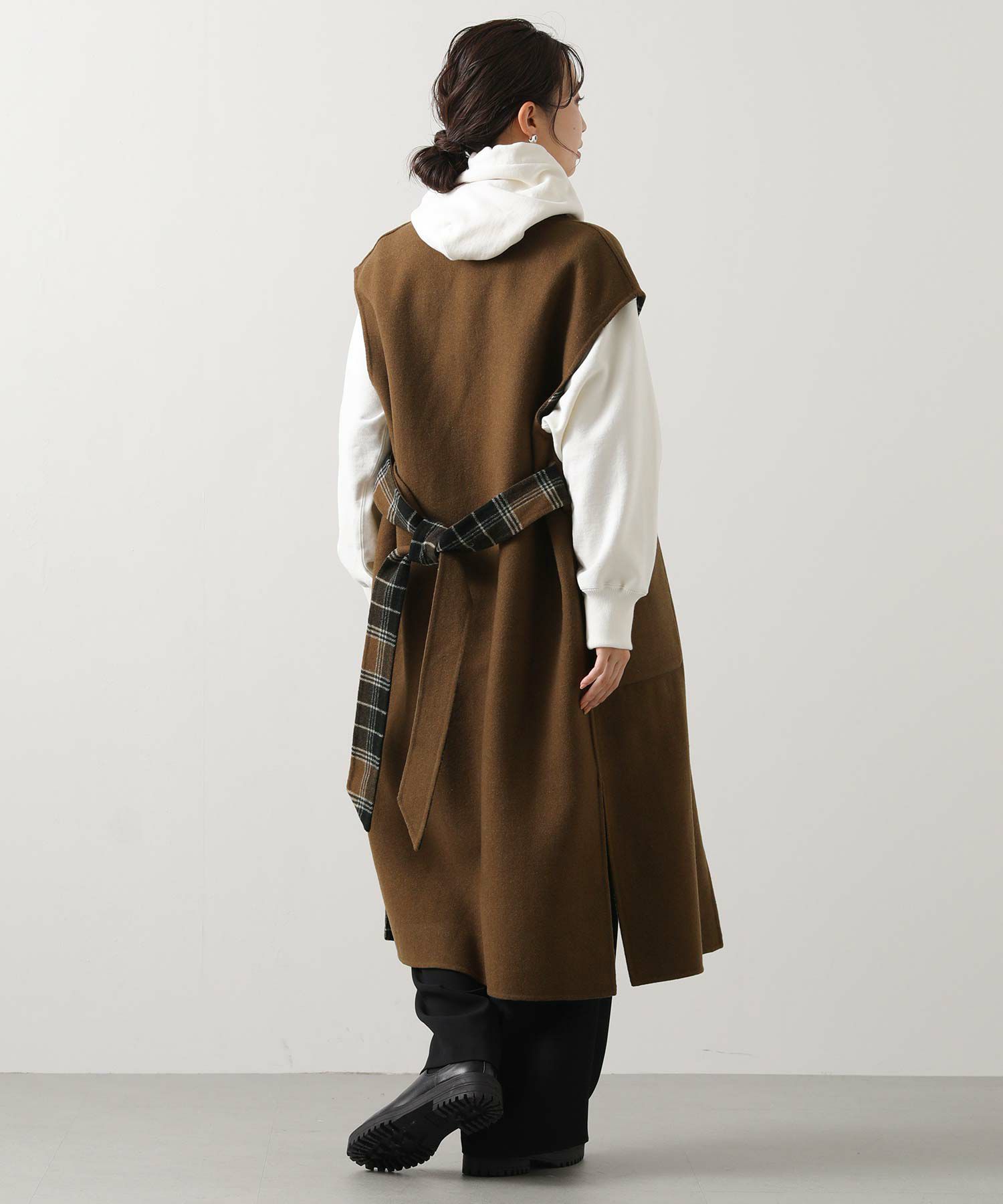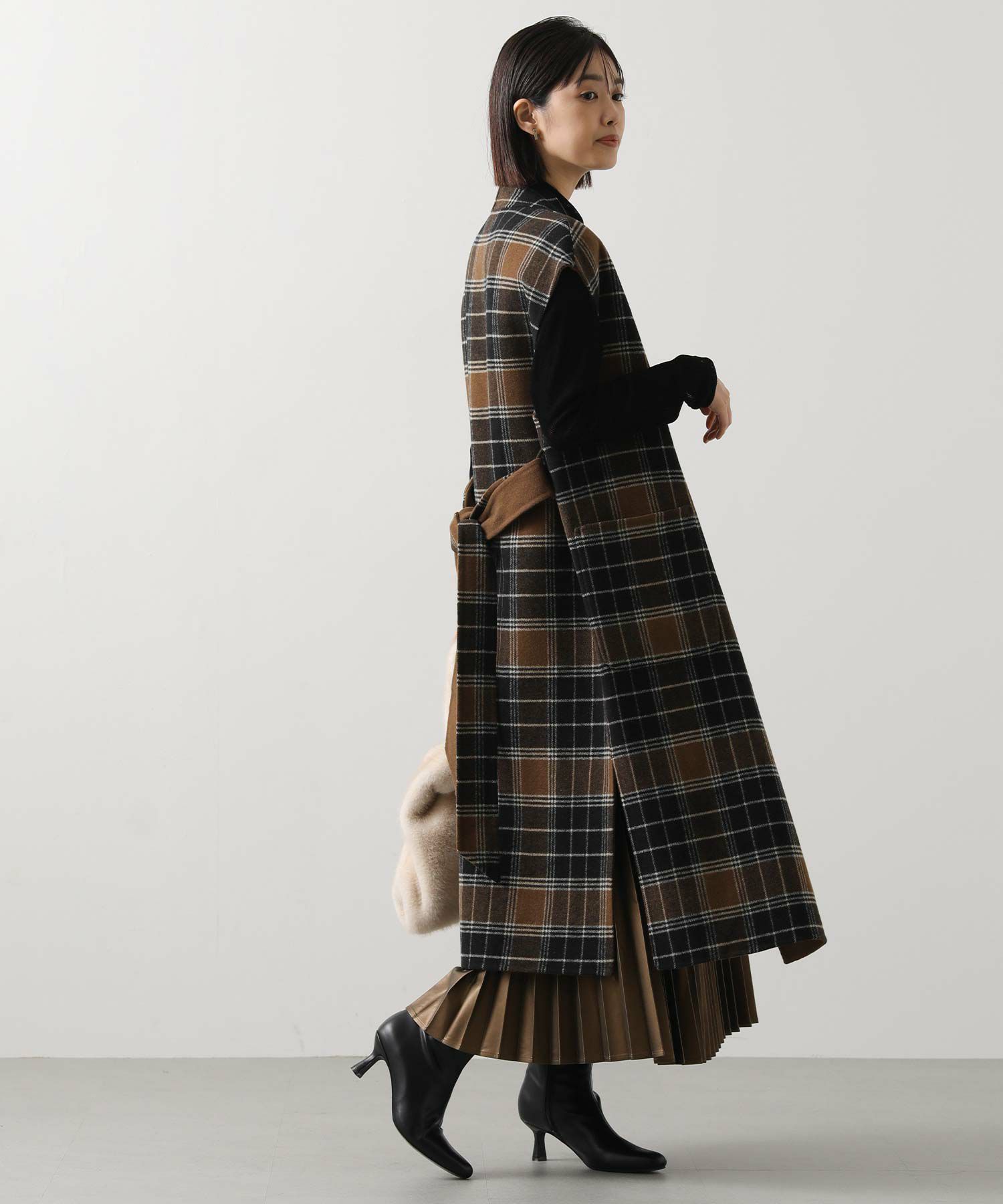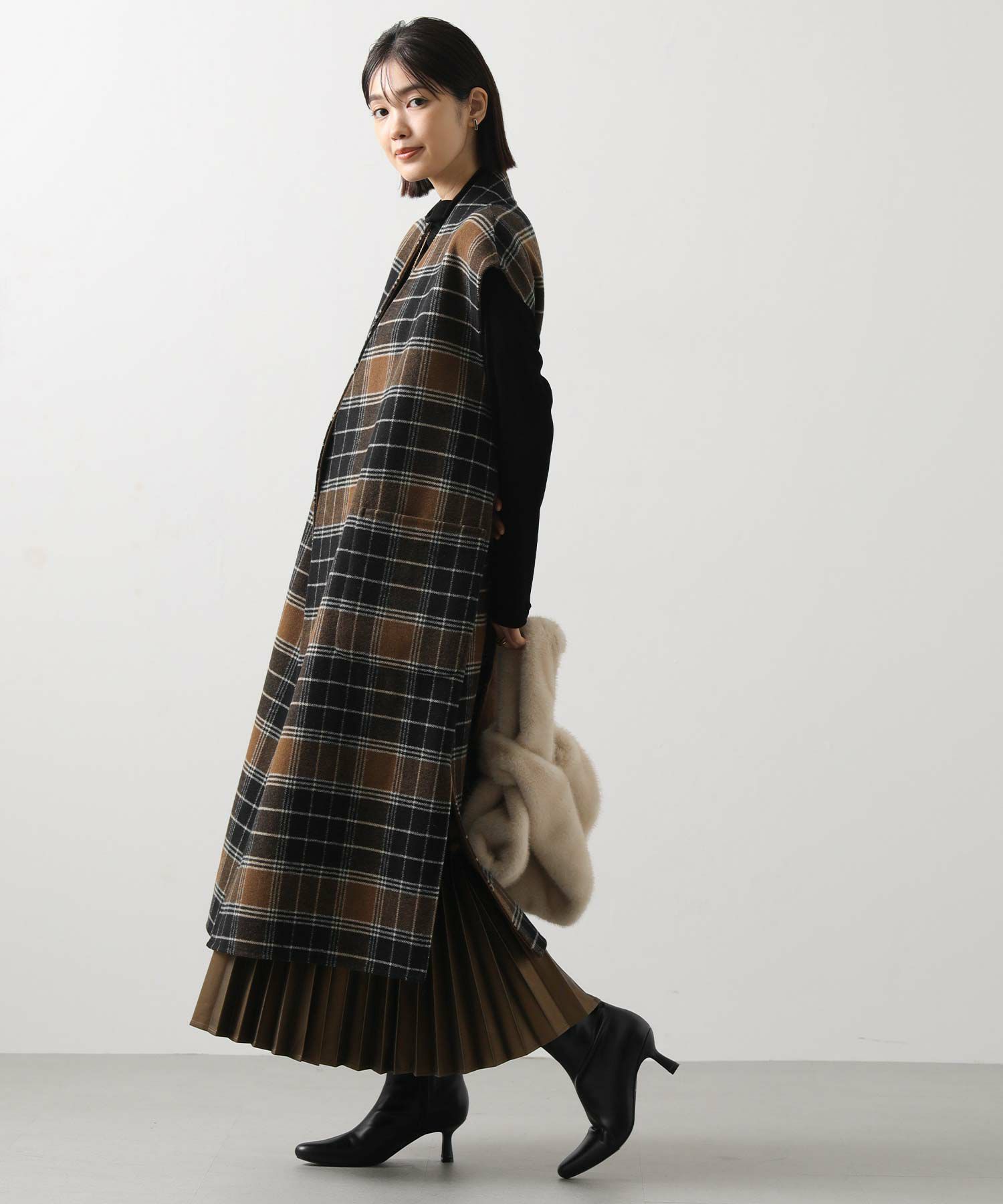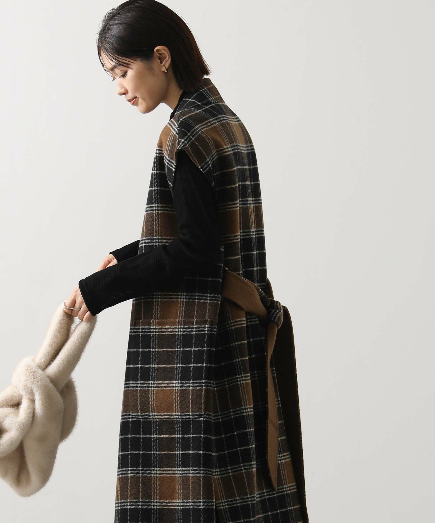 リバーシブルで着用でき、スタイリングに合わせて無地のジレで上品に、チェックのジレで華やかに着用できます。