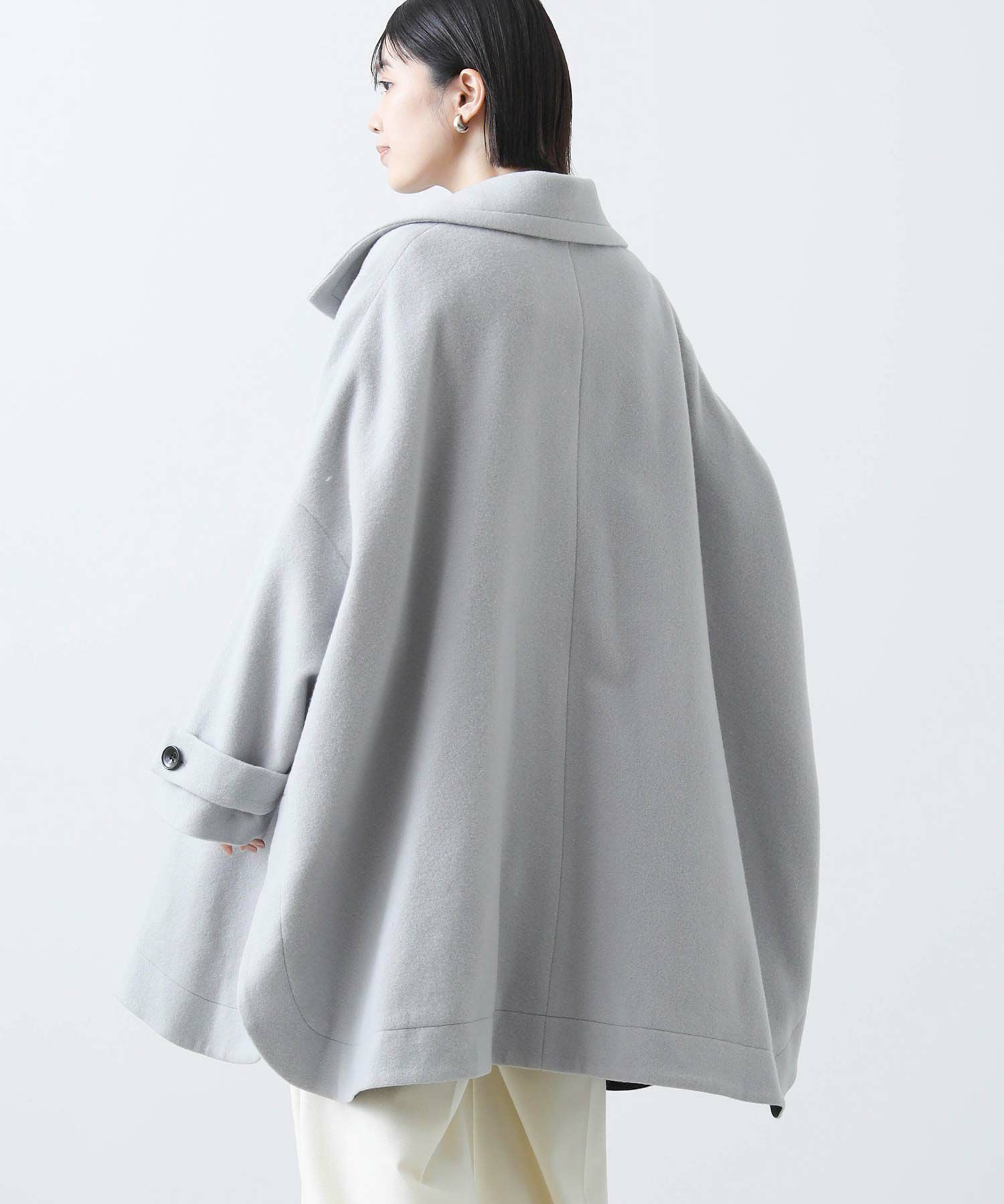 【LalliaMù(ラリア・ムー)】から、ふわっとした素材感と緩やかなテントラインがマッチングしたミドルコートをセレクト。軽い着心地で、重ね着するシーズンにも着膨れが気にならないシルエットです。