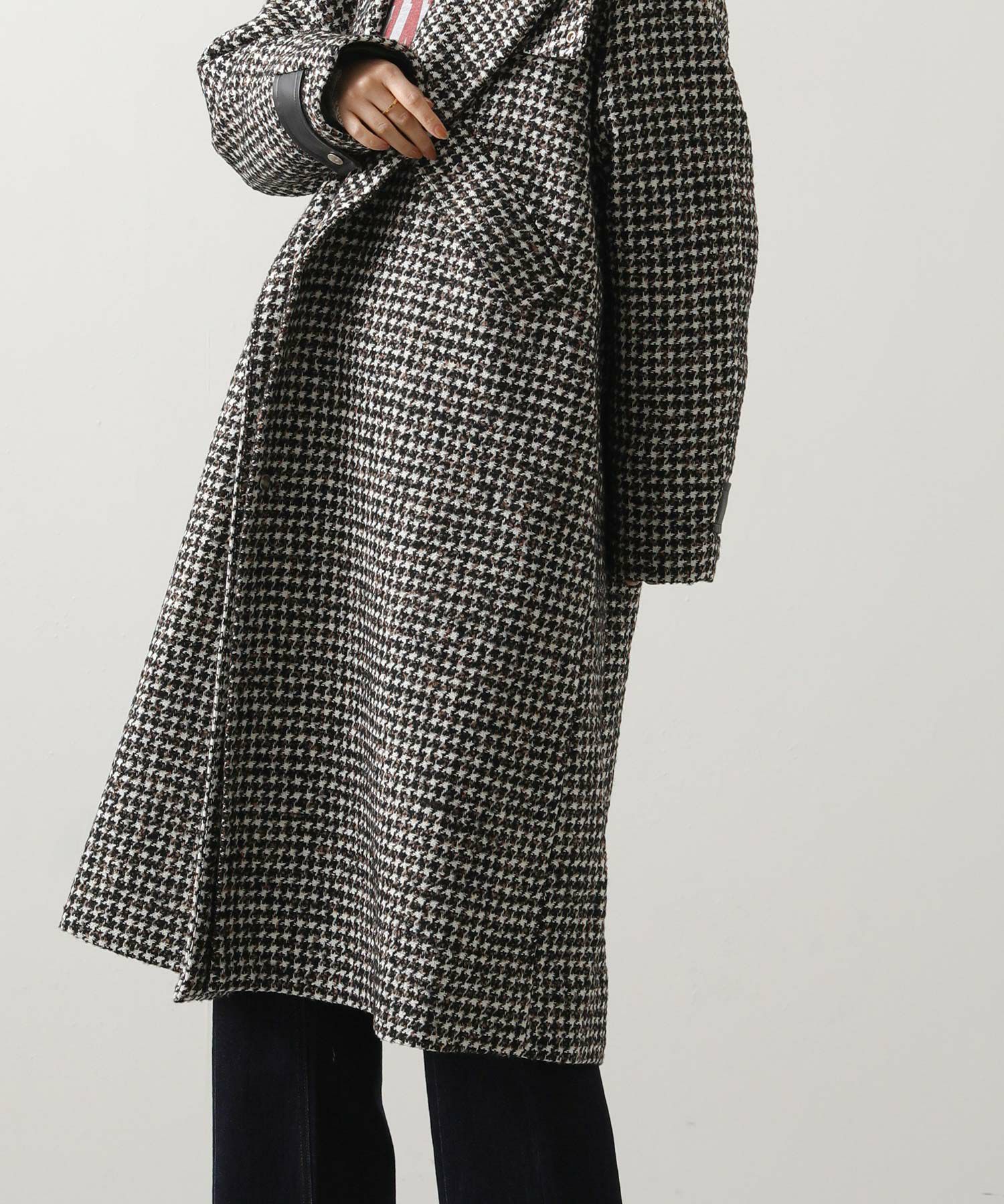 【LalliaMù(ラリア・ムー)】から、冬のスタイルに華やかさをプラスする、千鳥格子柄のロングコートをセレクト。