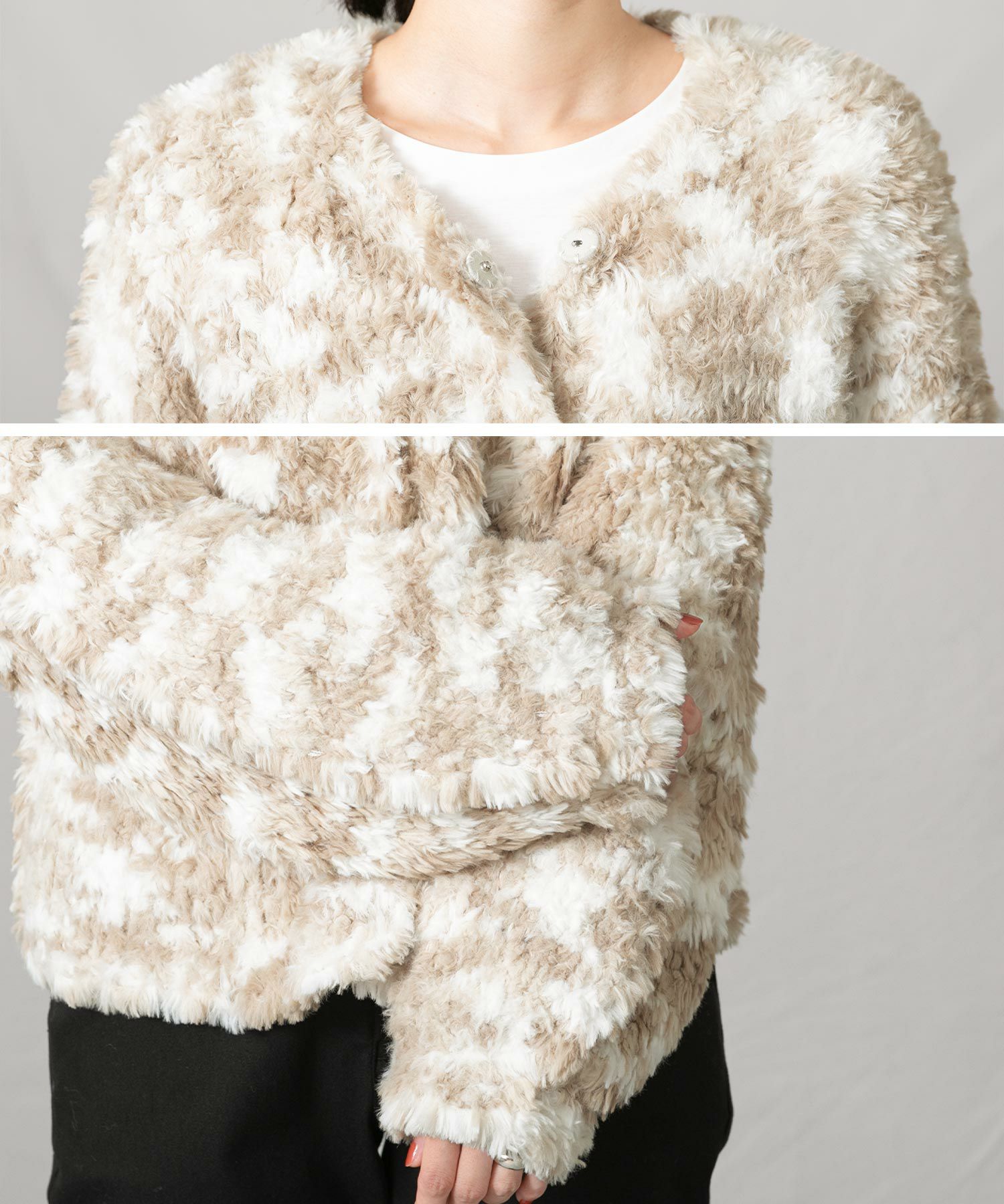 「Torrazzo Donna」から、ふわふわのファンシーヤーンを使用したニットジャケットをセレクト。
