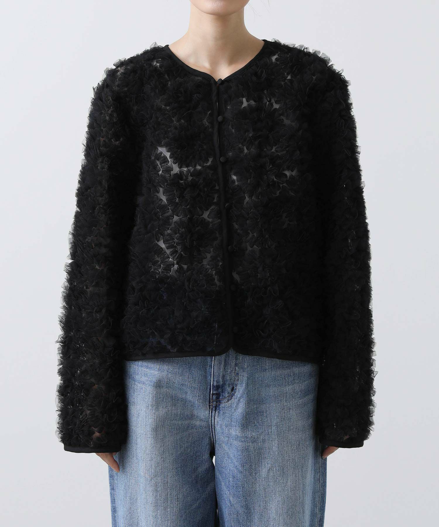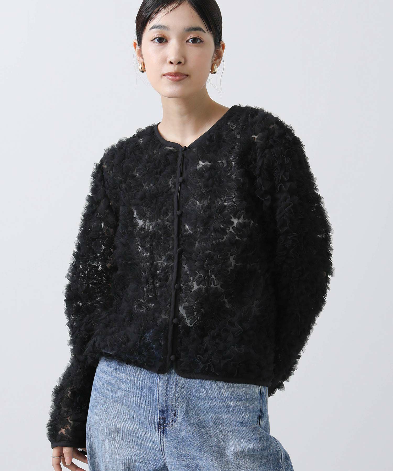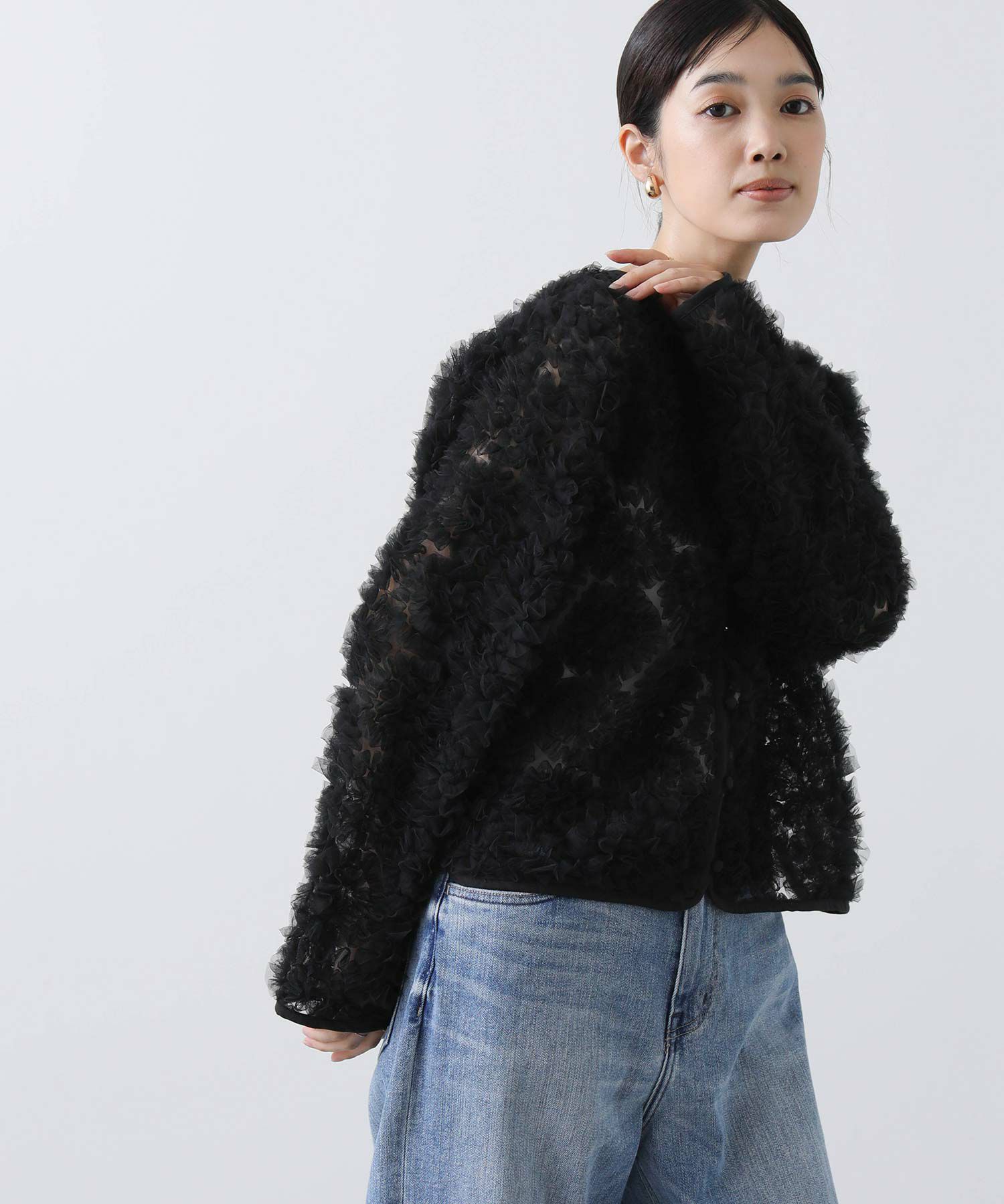 【TorrazzoDonna/トラッツォドンナ】から、凹凸感のあるチュールレースのジャケットをセレクト。