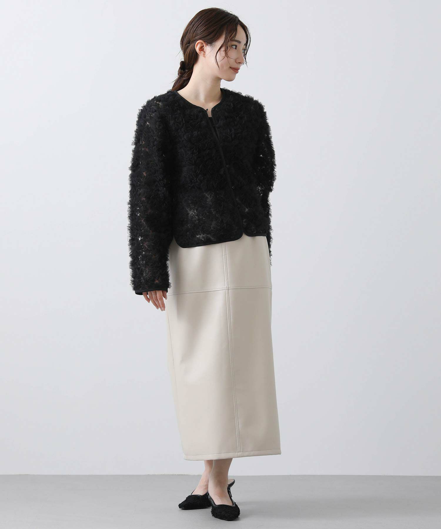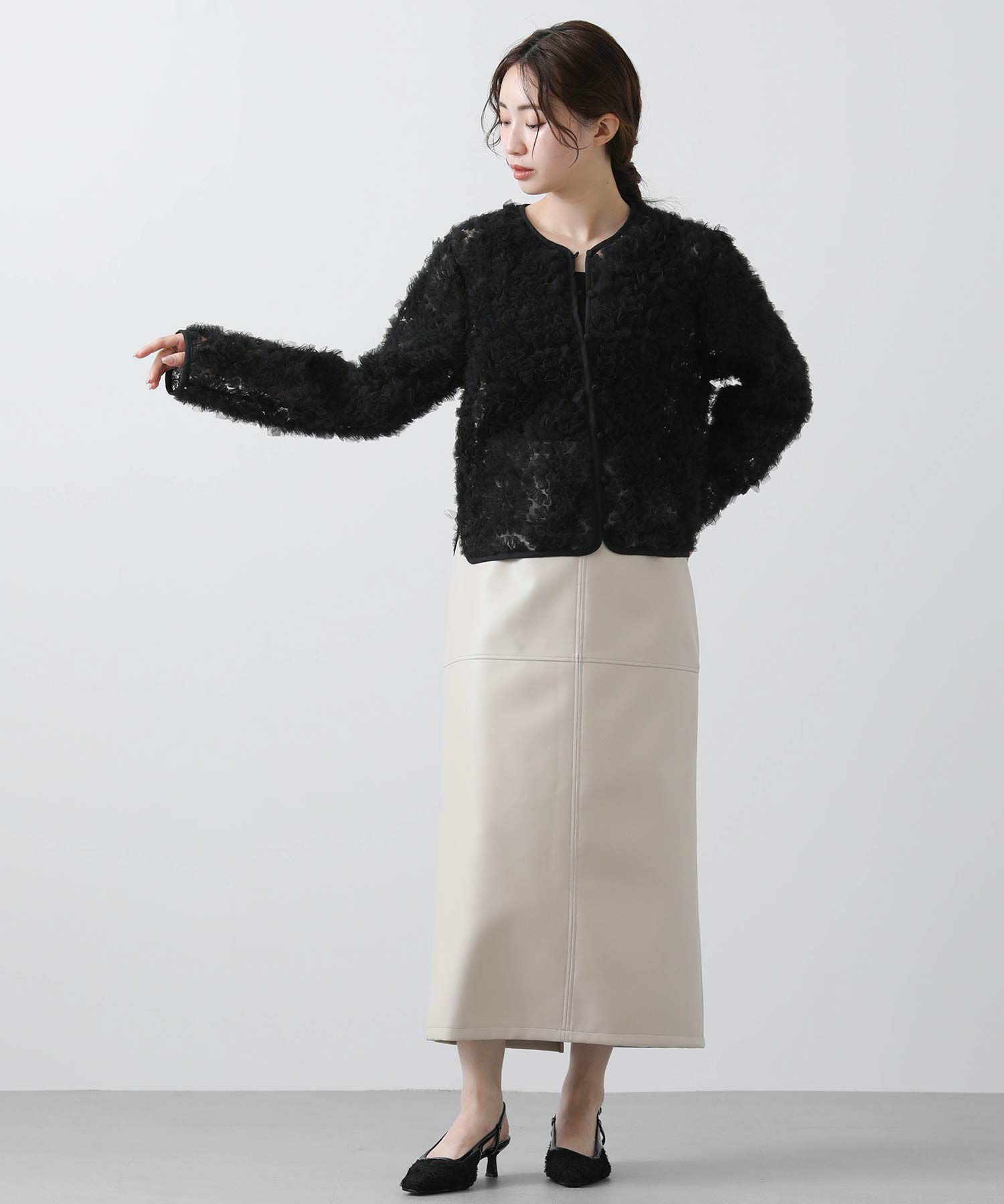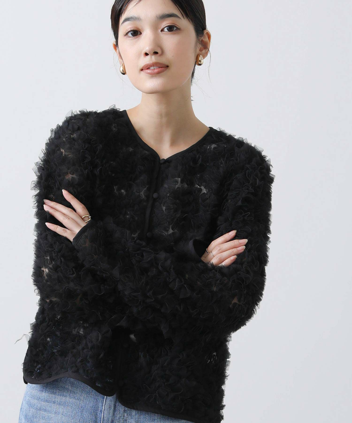 【TorrazzoDonna/トラッツォドンナ】から、凹凸感のあるチュールレースのジャケットをセレクト。