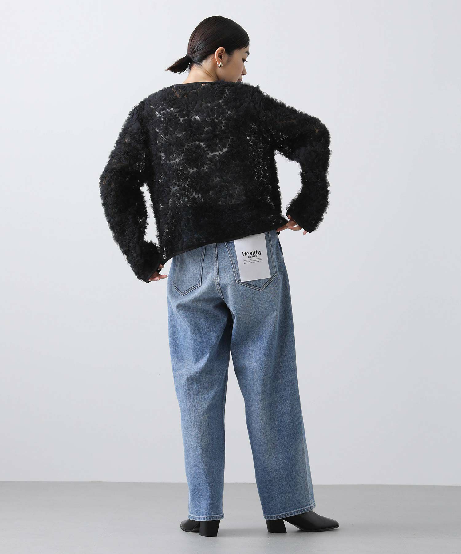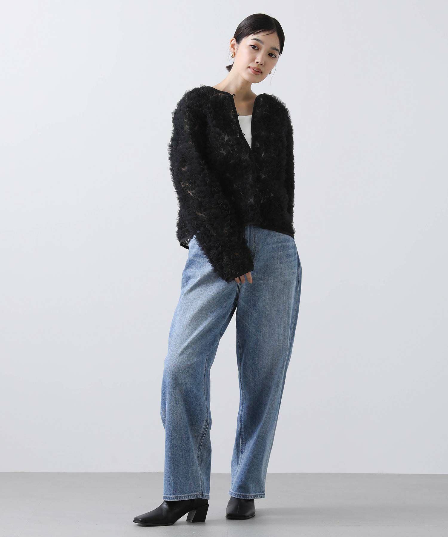 カーディガン感覚で使える軽い着心地で、シンプルなスタイリングに羽織るだけで華やかな印象に。