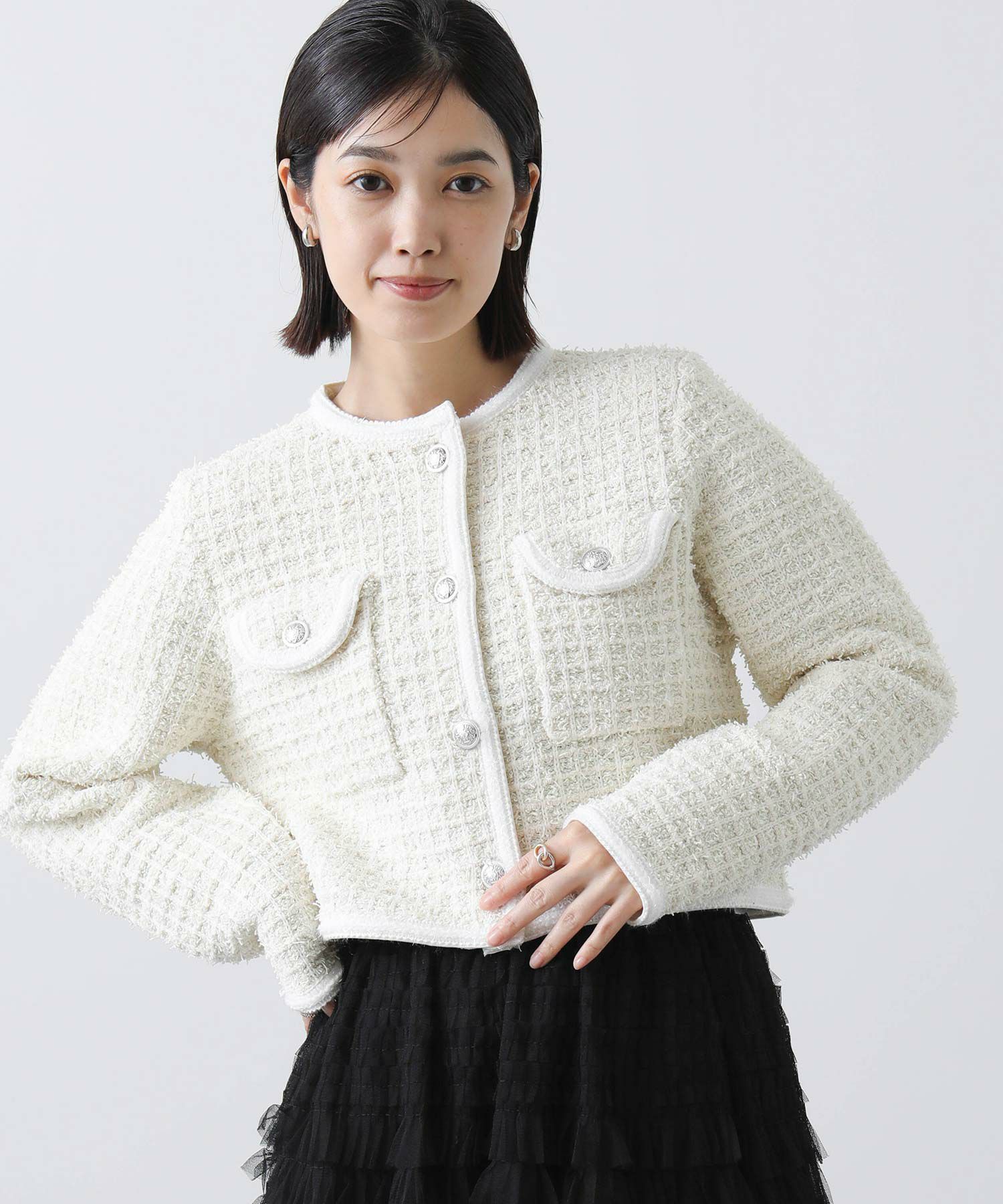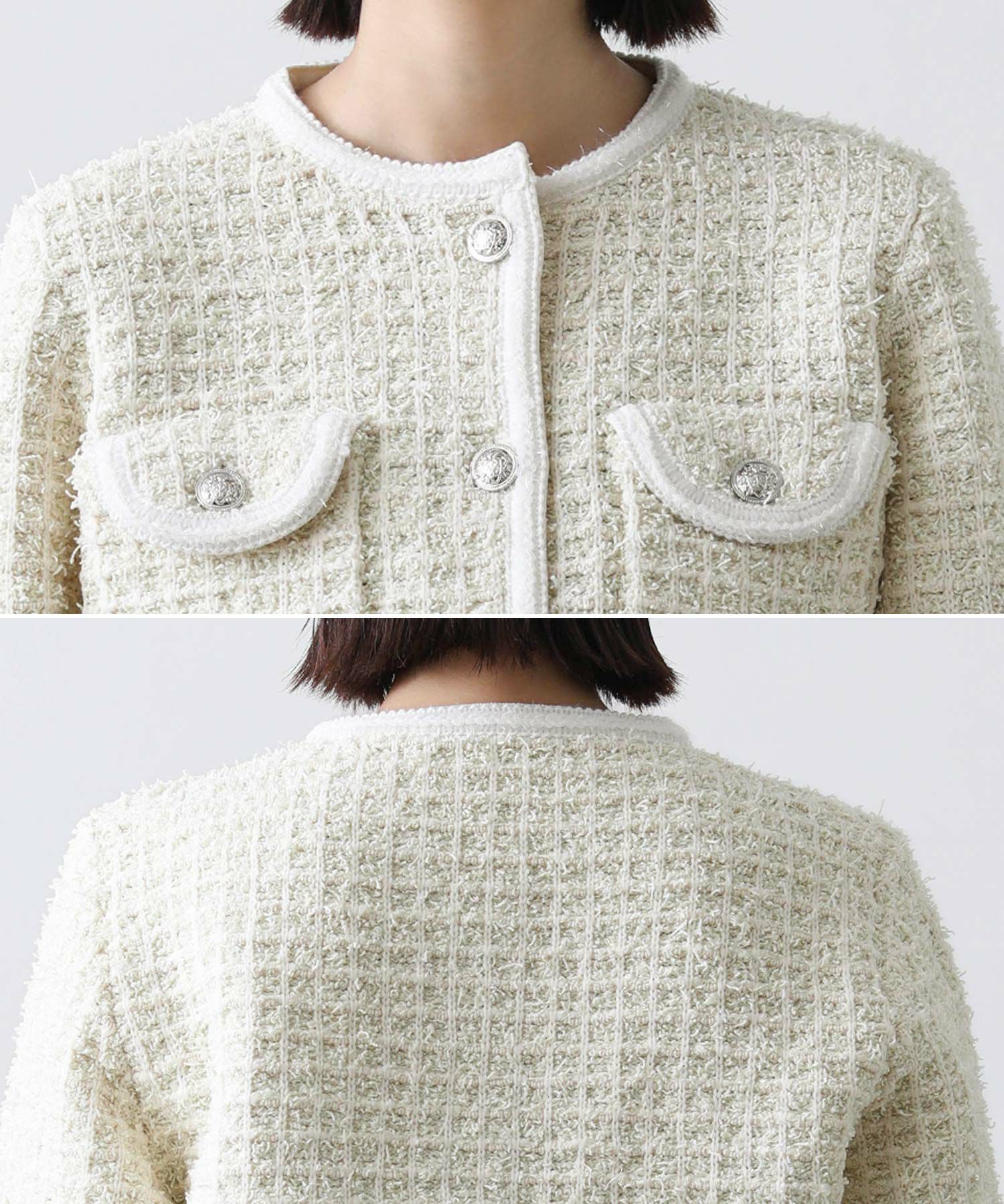 【TorrazzoDonna/トラッツォドンナ】から、ツィードライクなニットジャケットをセレクト。