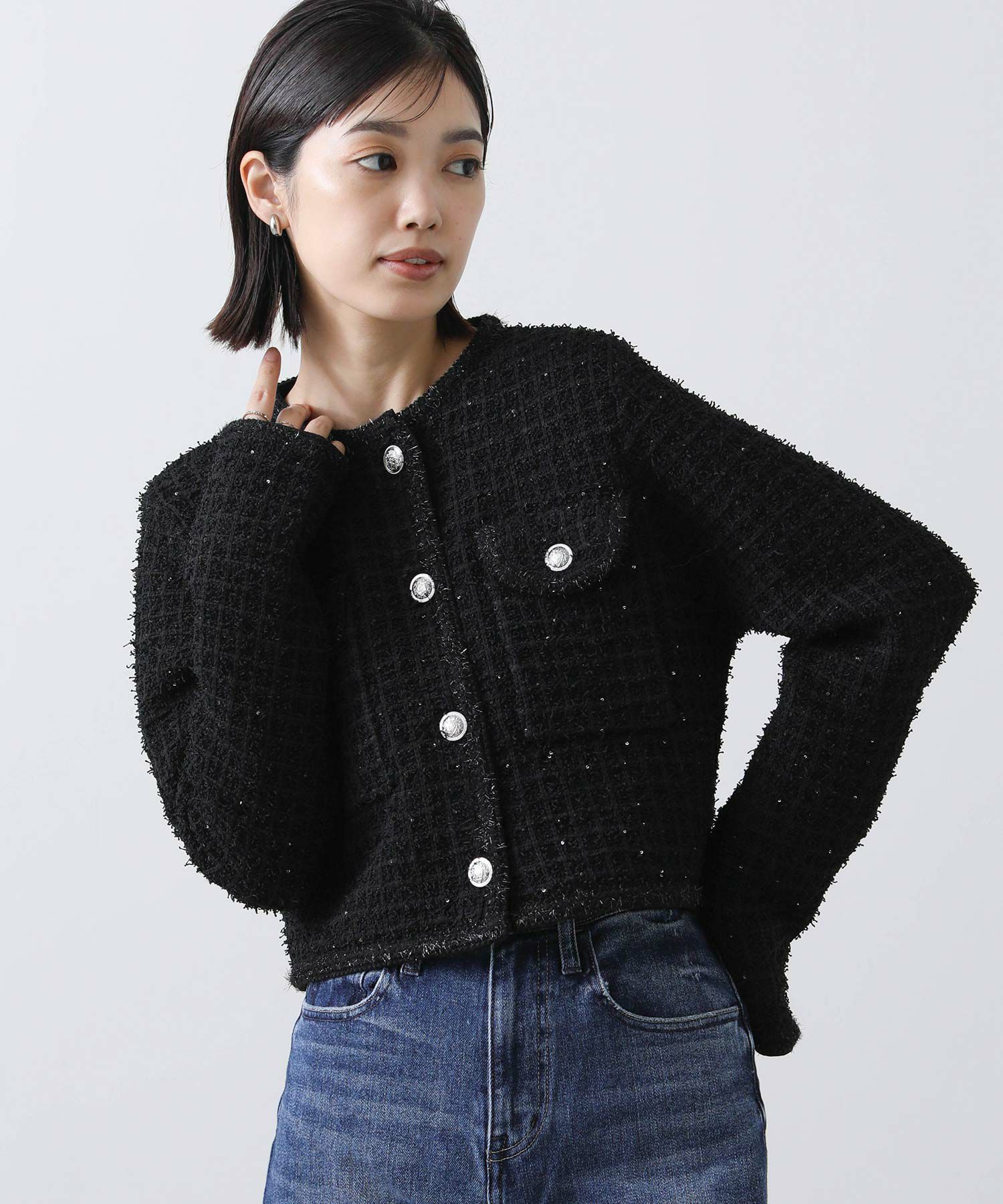 【TorrazzoDonna/トラッツォドンナ】から、ツィードライクなニットジャケットをセレクト。
