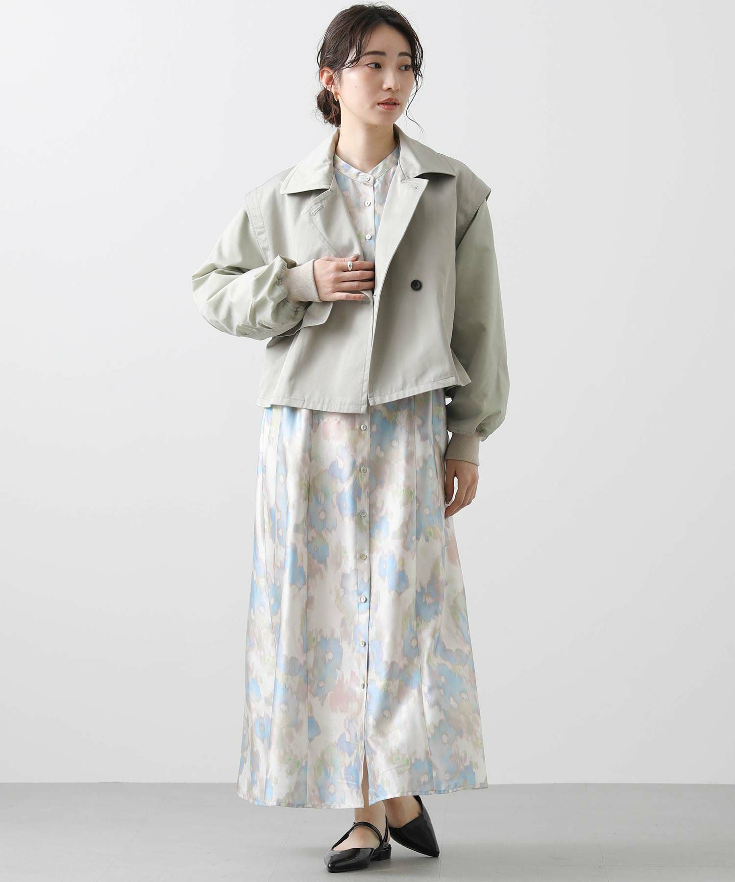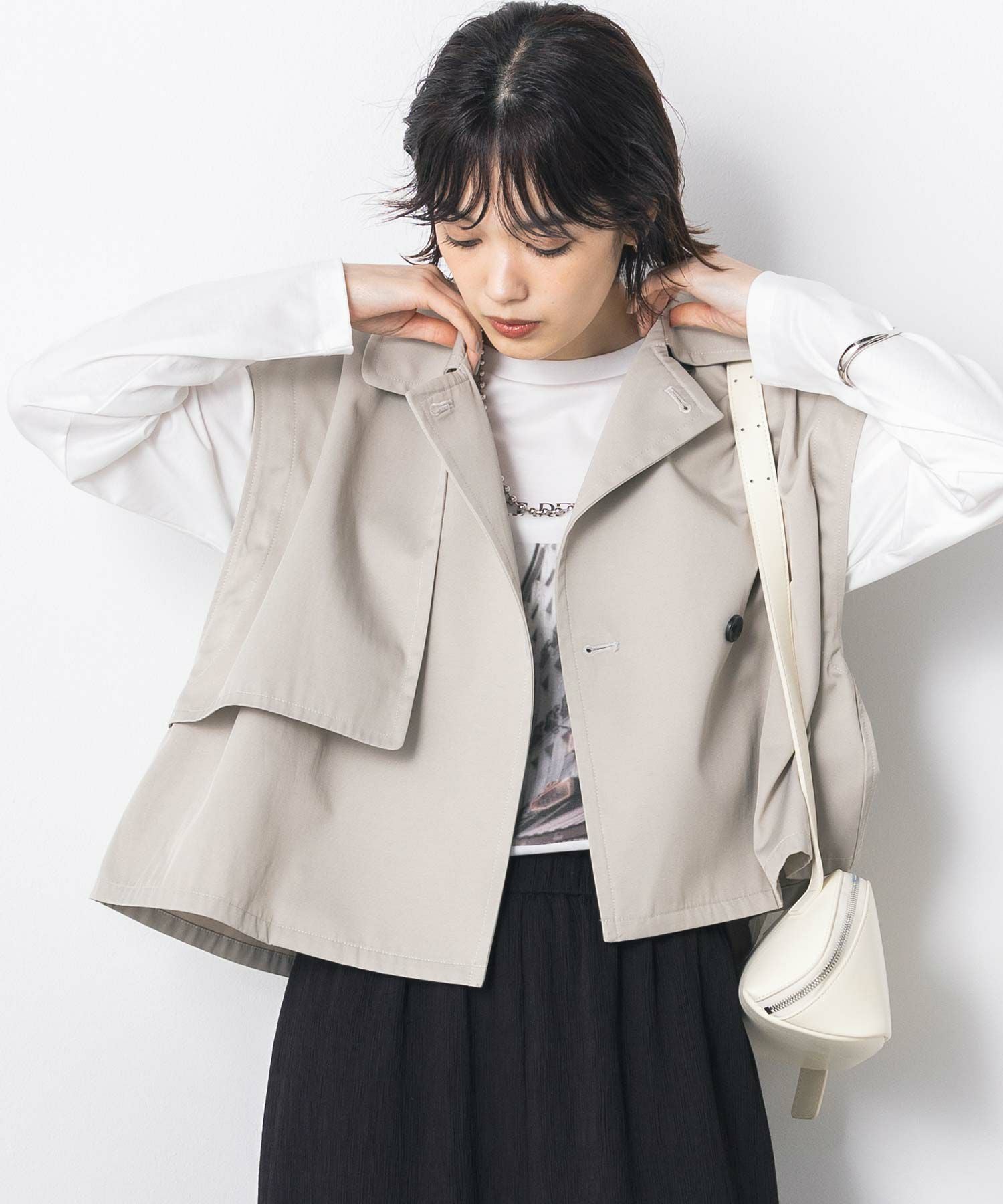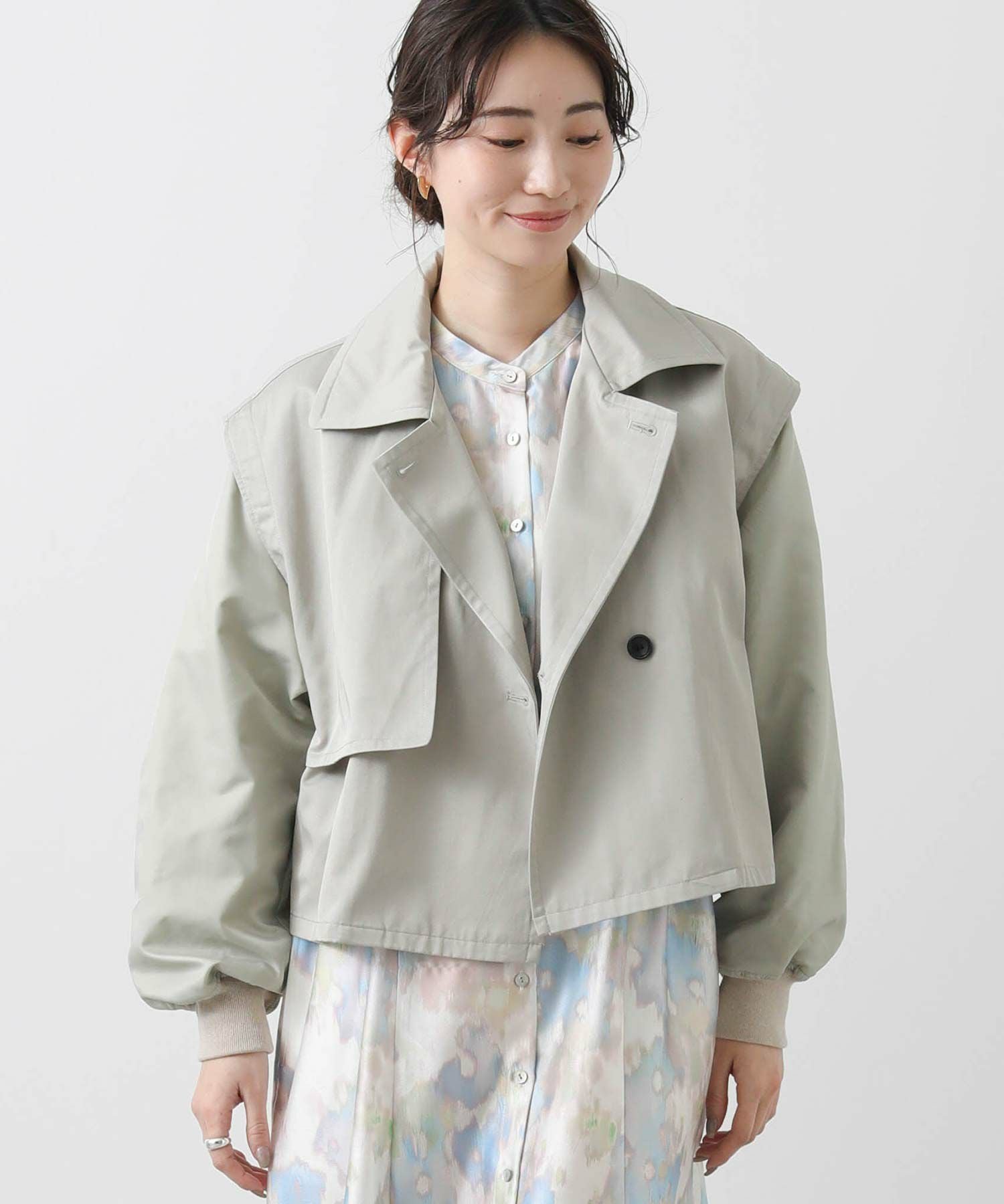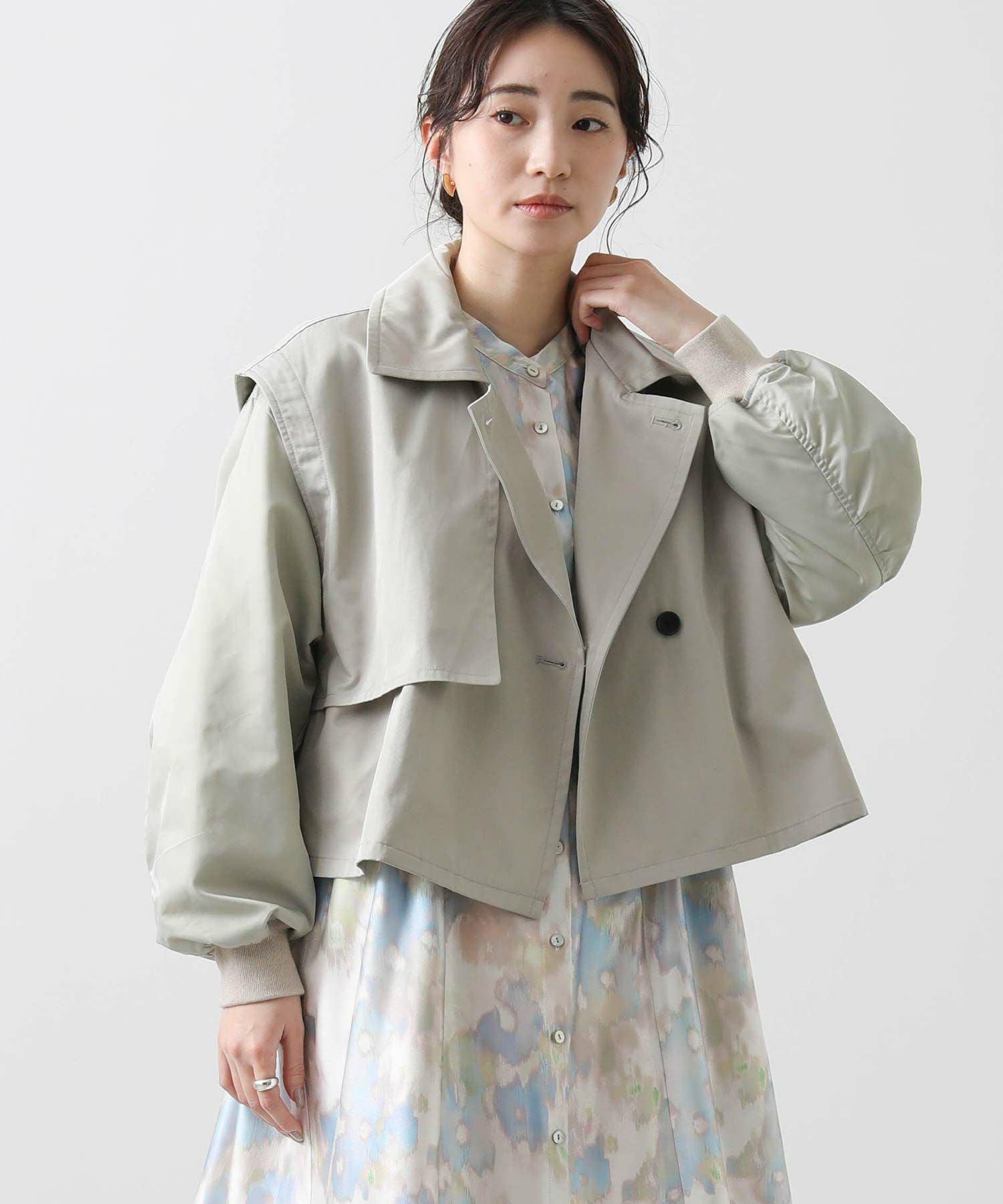 【BoutiqueOrdinary(ブティークオーディナリー)】から、トレンチコートディティールのジレとMA-1風ボレロをレイヤードしたショートコートをセレクト。