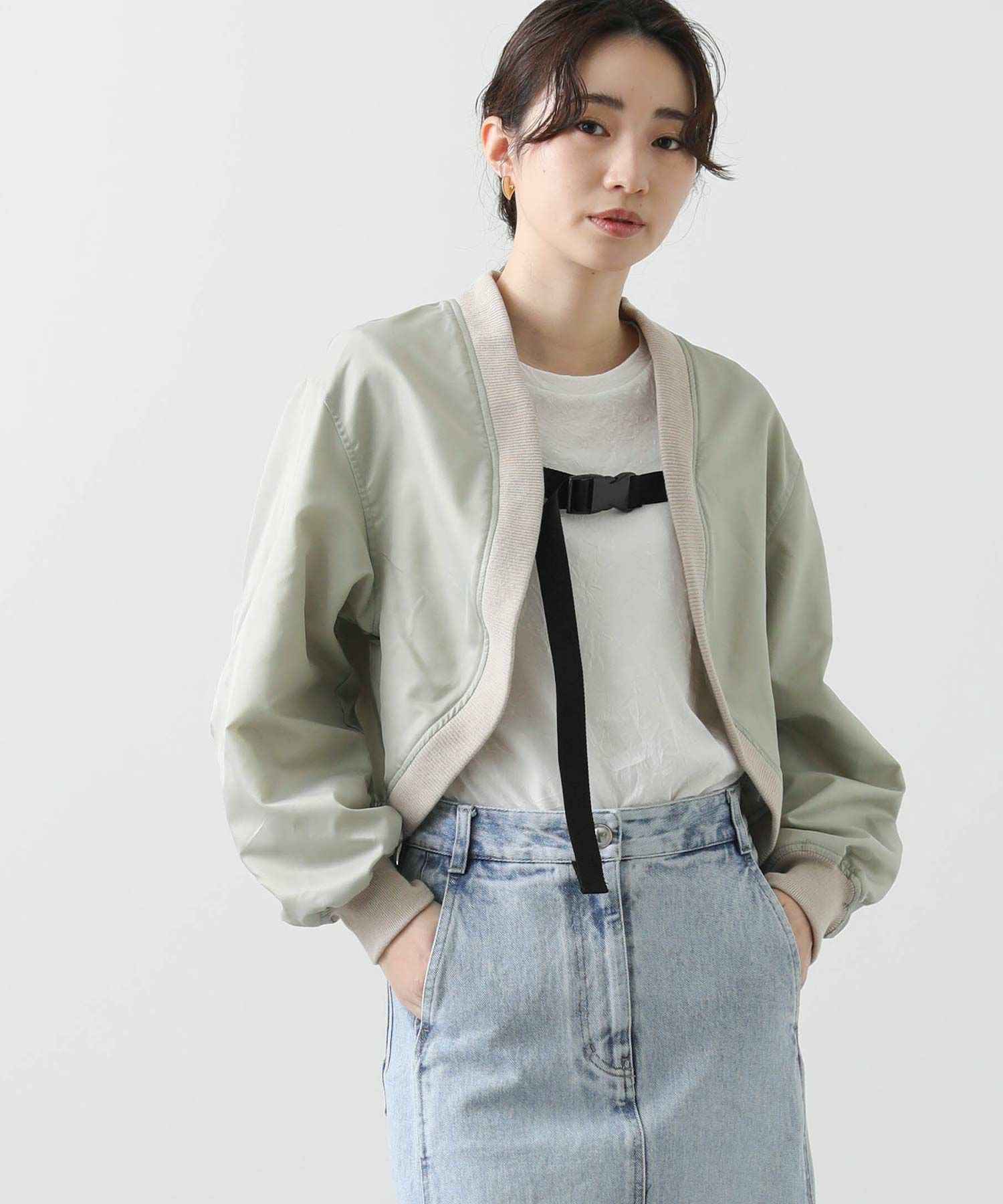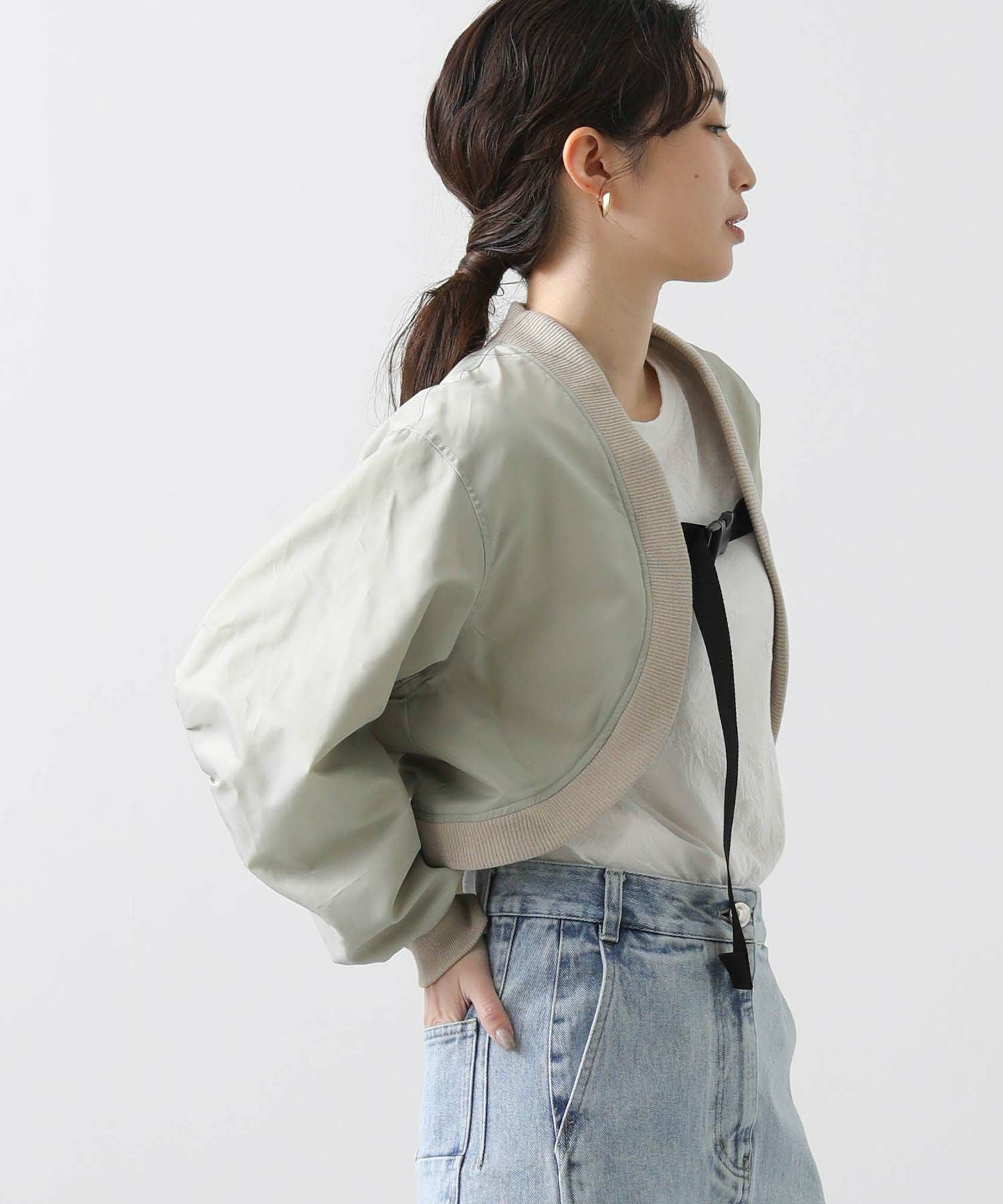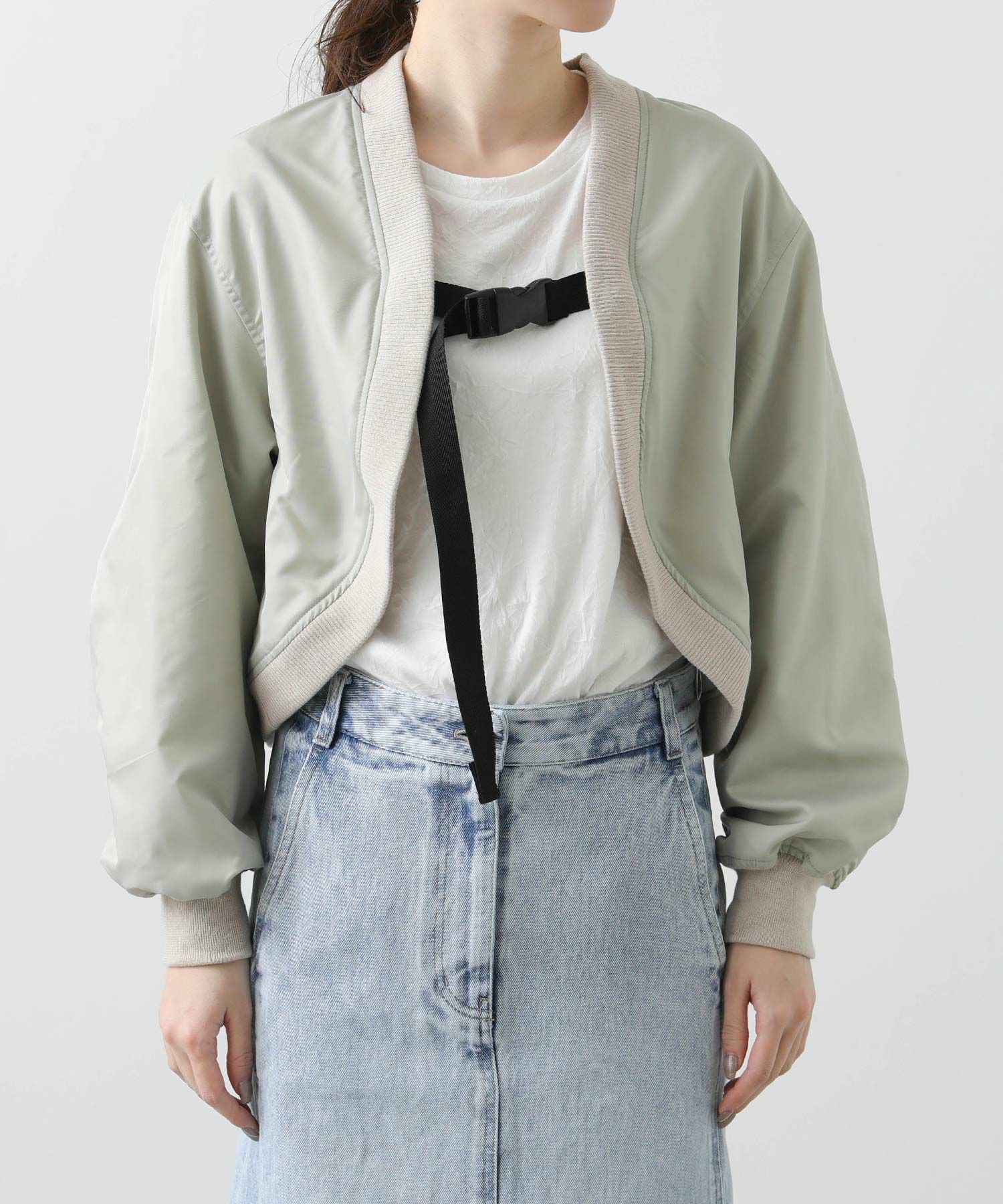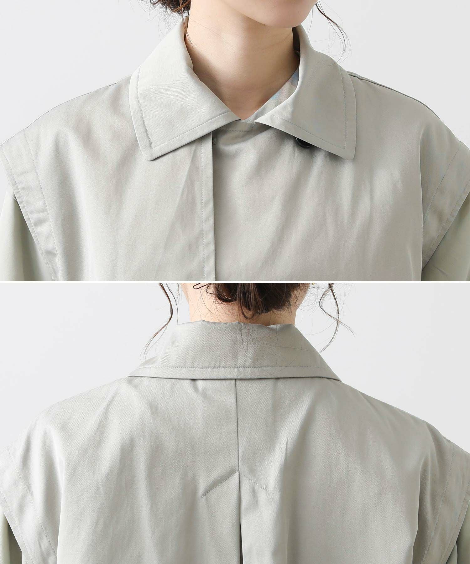 【BoutiqueOrdinary(ブティークオーディナリー)】から、トレンチコートディティールのジレとMA-1風ボレロをレイヤードしたショートコートをセレクト。