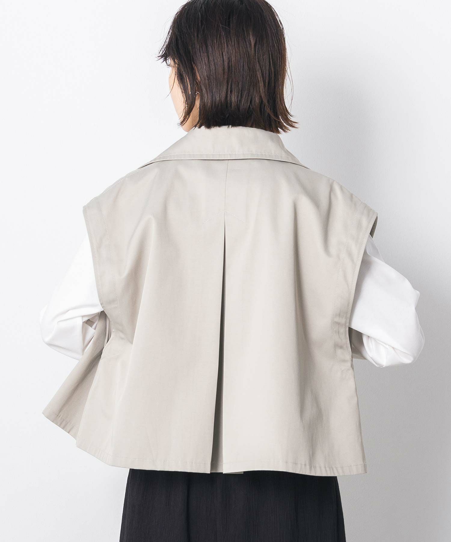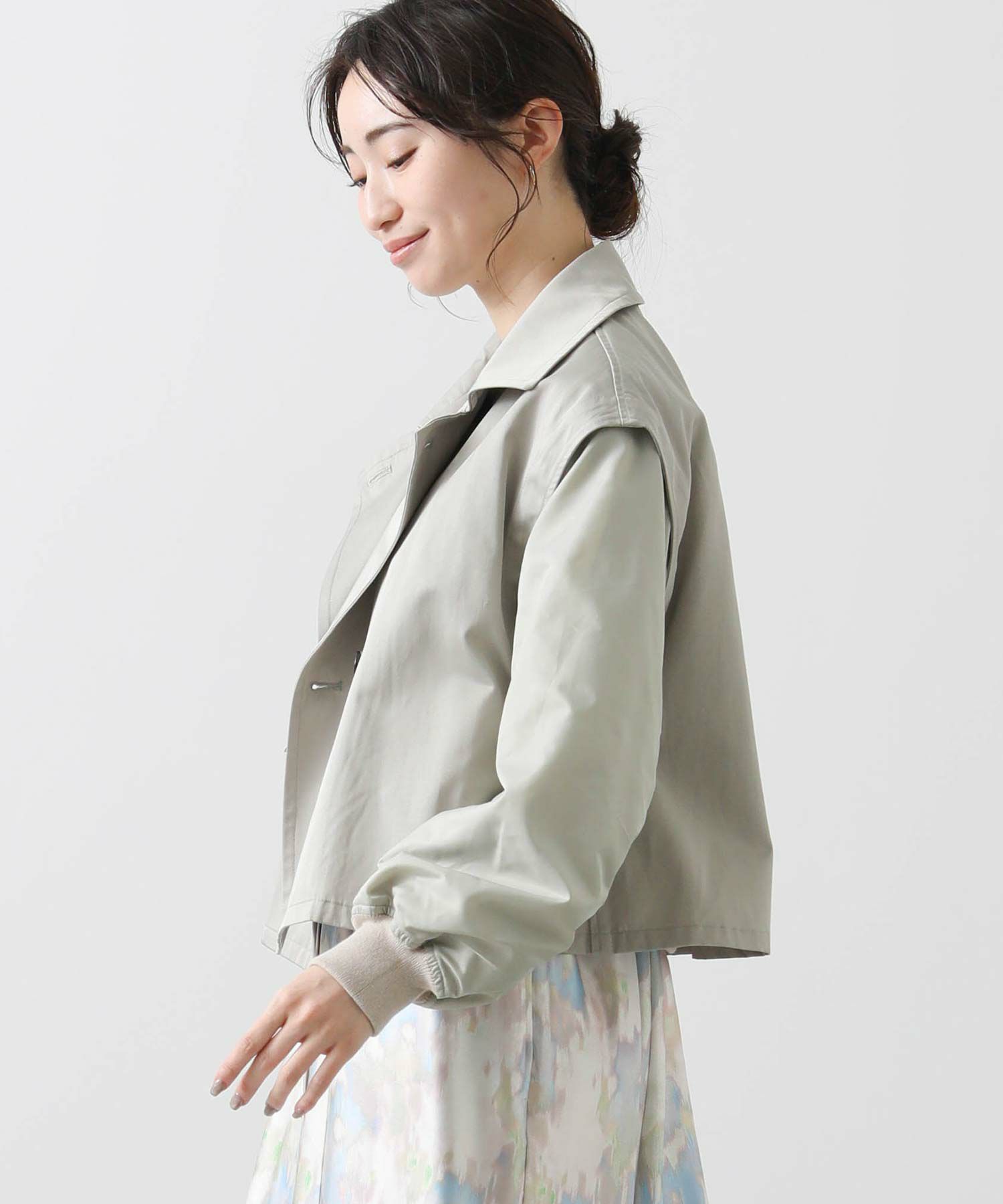 【BoutiqueOrdinary(ブティークオーディナリー)】から、トレンチコートディティールのジレとMA-1風ボレロをレイヤードしたショートコートをセレクト。
