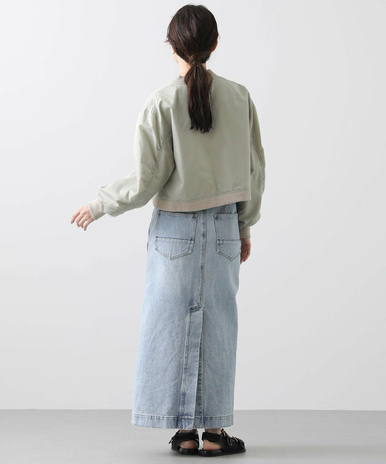 ワイドパンツ、スカートなどと合わせやすいショート丈は全体のバランスを整え、脚長効果を演出します。