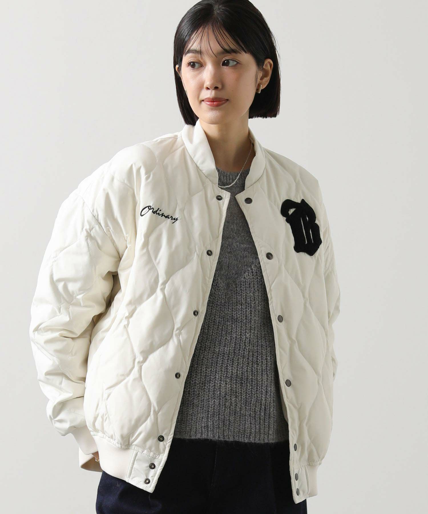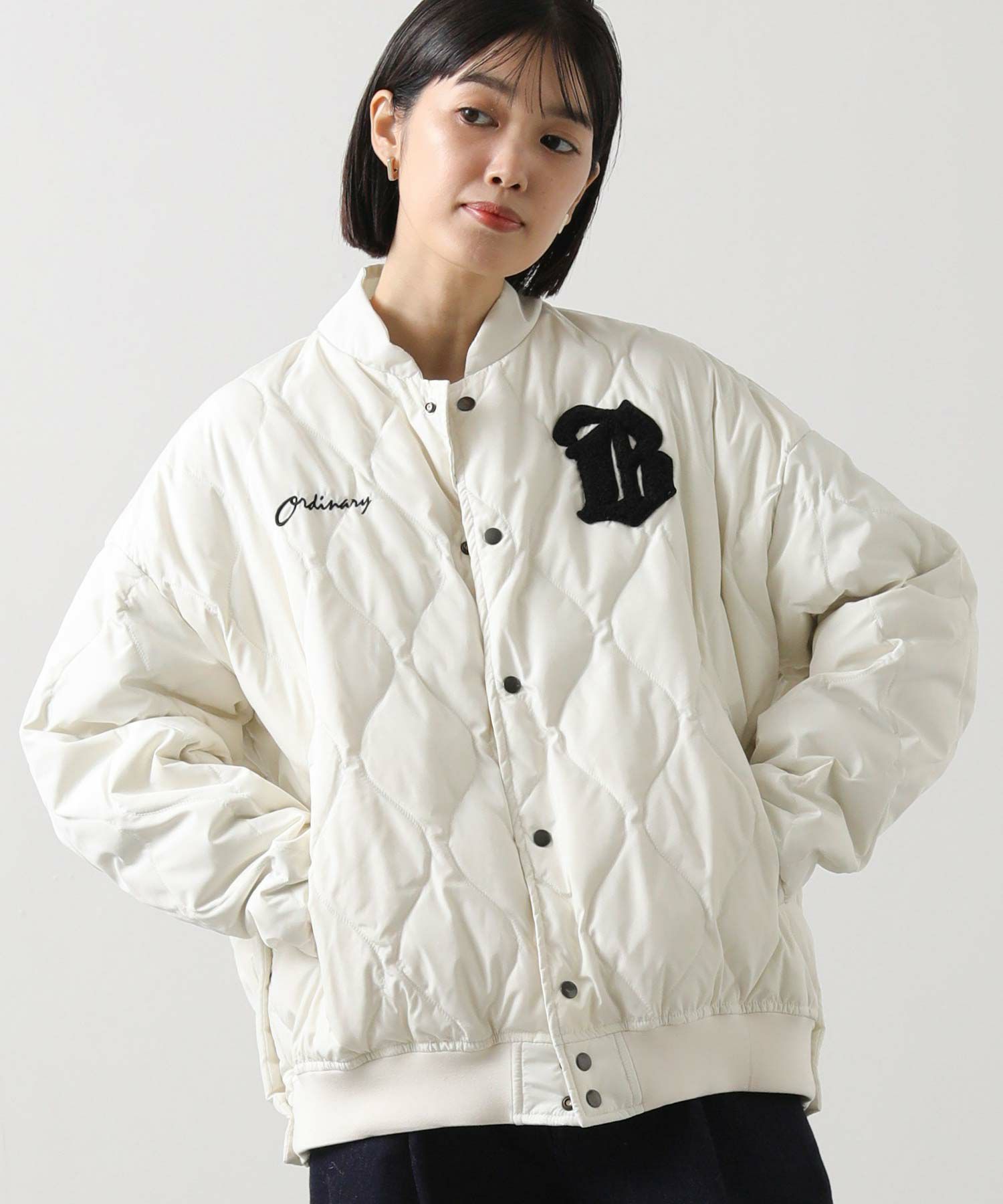 【BoutiqueOrdinary(ブティークオーディナリー)】から、スタジャンをベースにした、リバーシブルのダウンジャケットをセレクト。