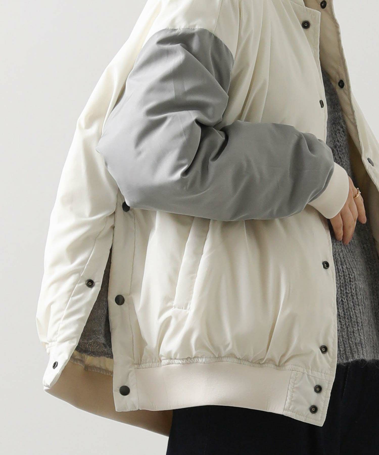 裏面も同素材で、袖が配色になったリバーシブルデザイン。