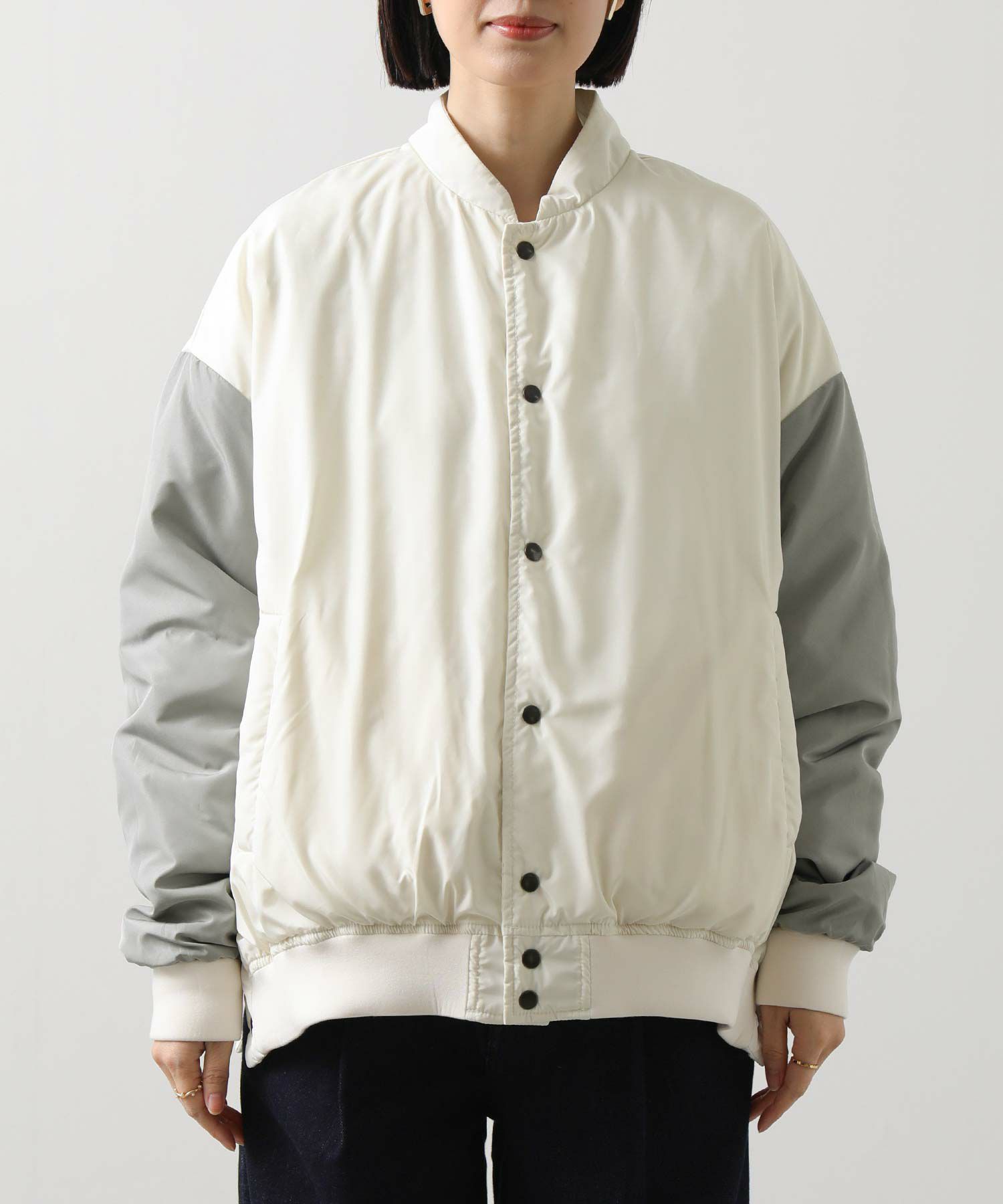 袖を配色にすることで、その日の気分に合わせてよりスタジャンらしいスタイリングを楽しめる1着。