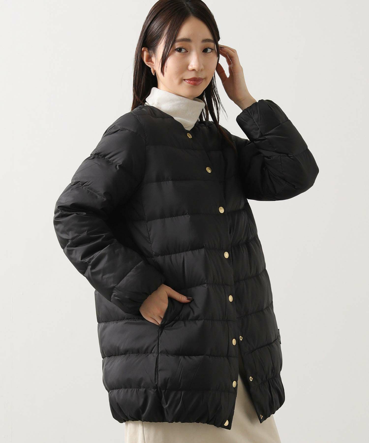 ノーカラーなのでマフラーやストールを巻いてももたつかず、スッキリとした首元に仕上がります。
