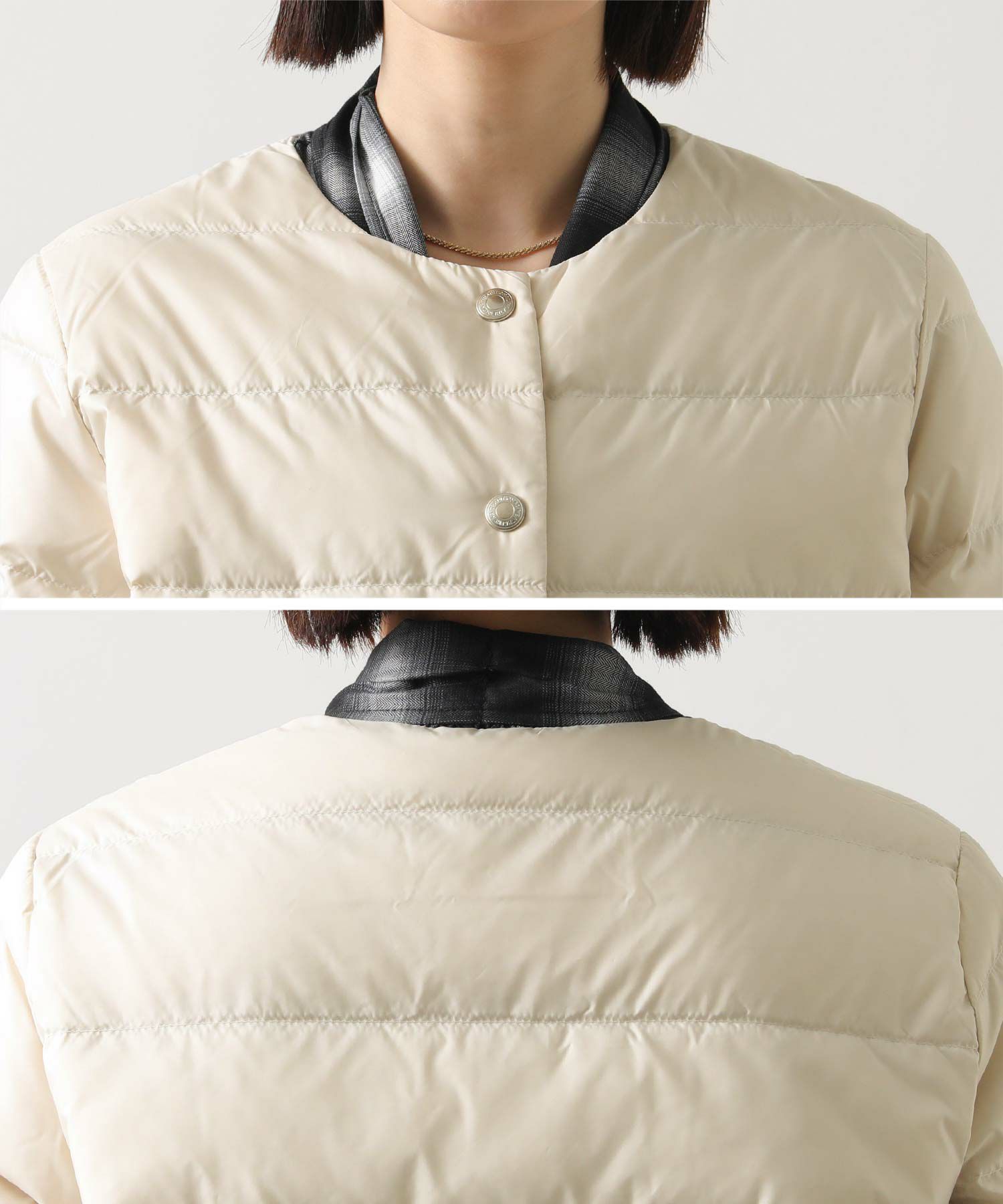 【TraditionalWeatherwear(トラディショナルウェザーウェア】から、ブランドを代表するベストセラーのノーカラーキルティングコート、ARKLEYLONGLONG(アークリーロング)のダウンモデルをセレクト。