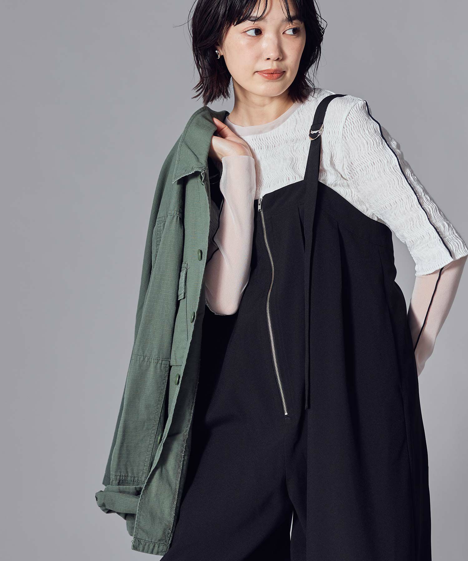 ※着用画像は撮影状況、光の当たり具合で色みが違って見える場合がございます。実際の色みについては、画像一覧の最後に掲載している詳細画像をご参照ください。