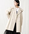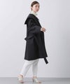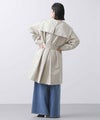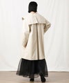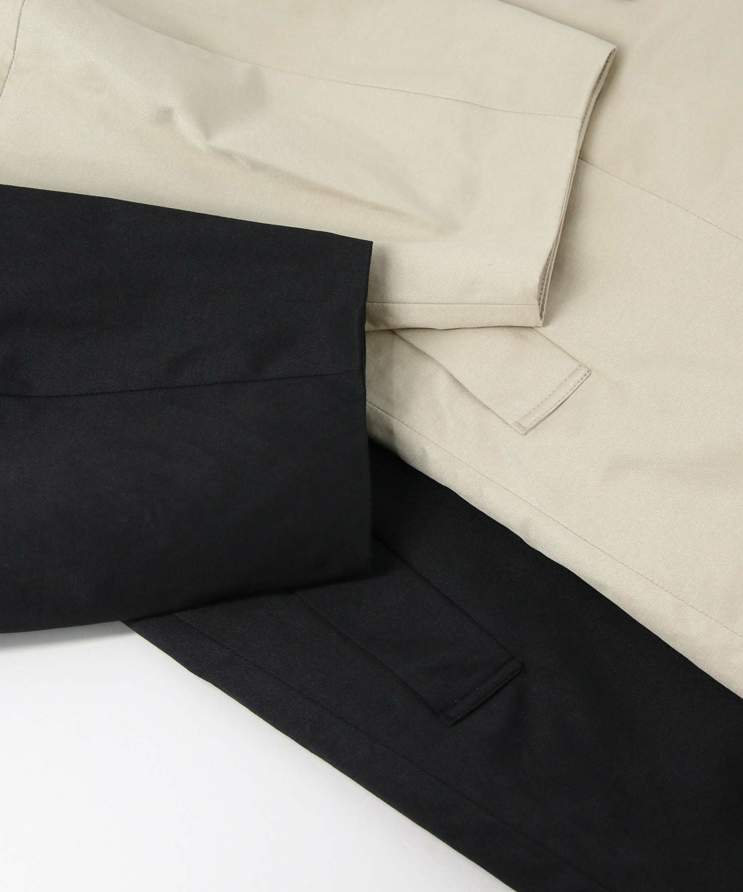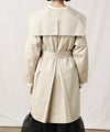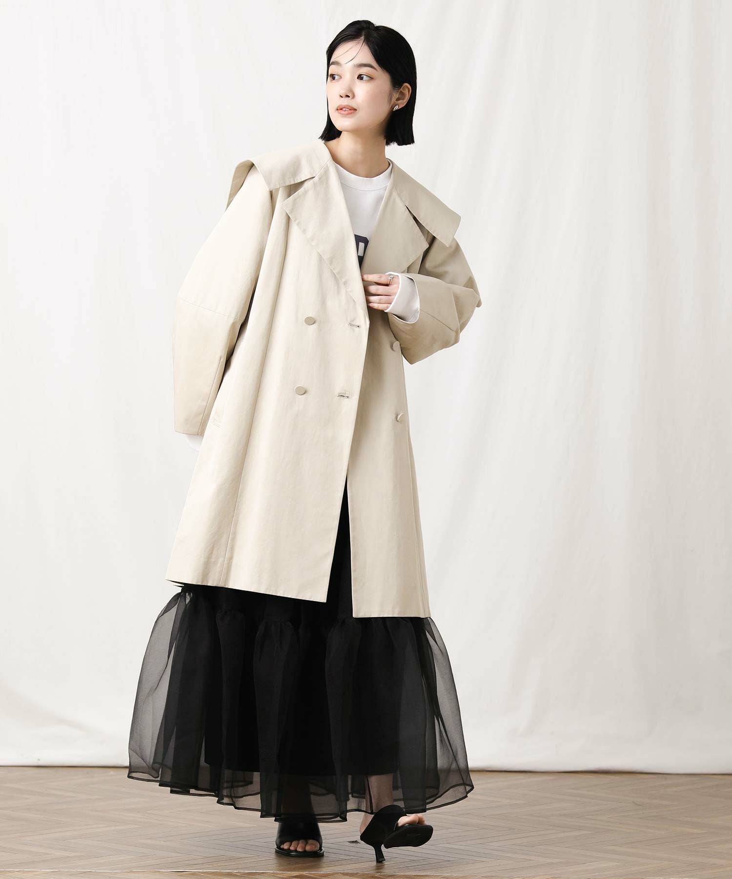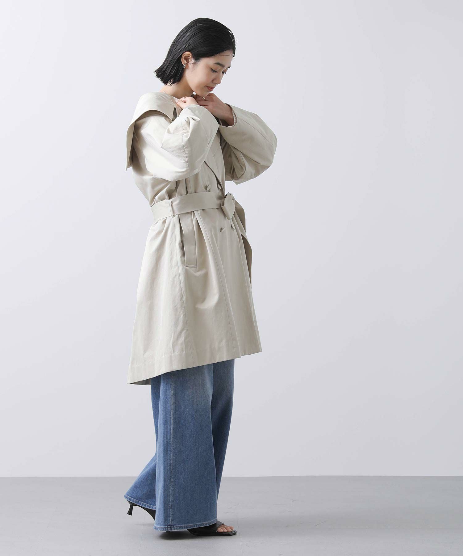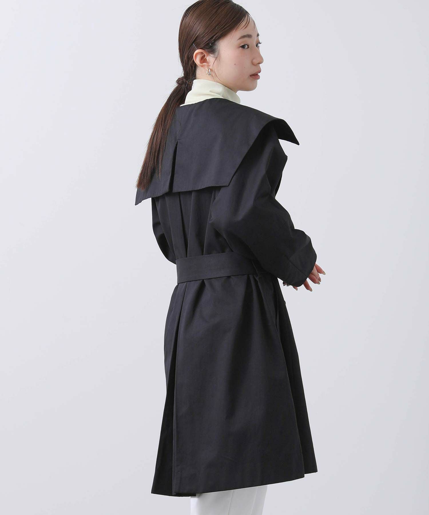 襟元を目立たせるために他のディティールはあえて足さず、素材のハリ感を活かした構築的なシルエットに。