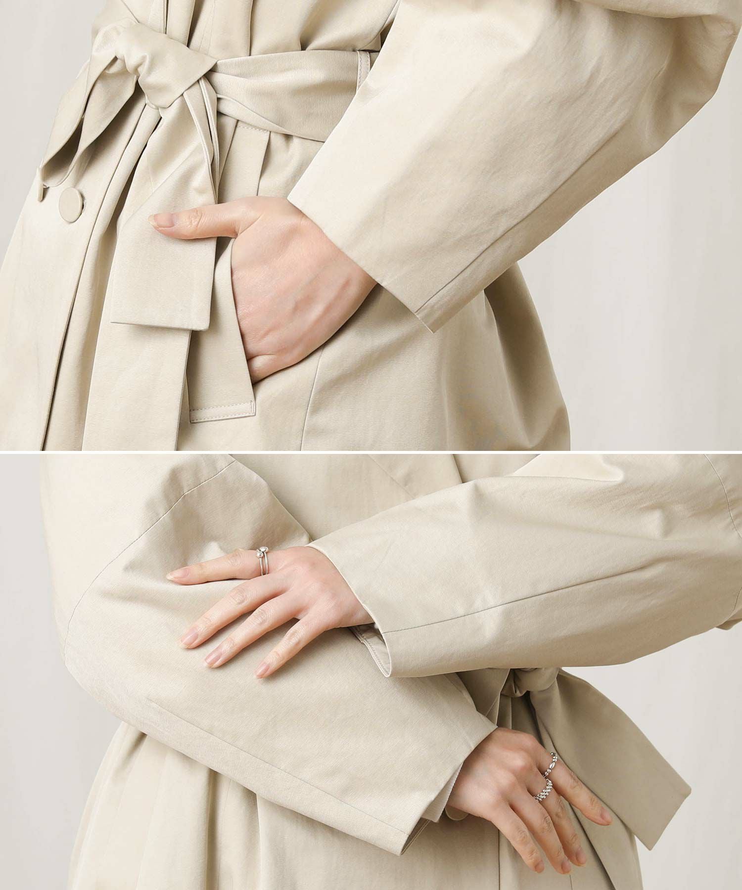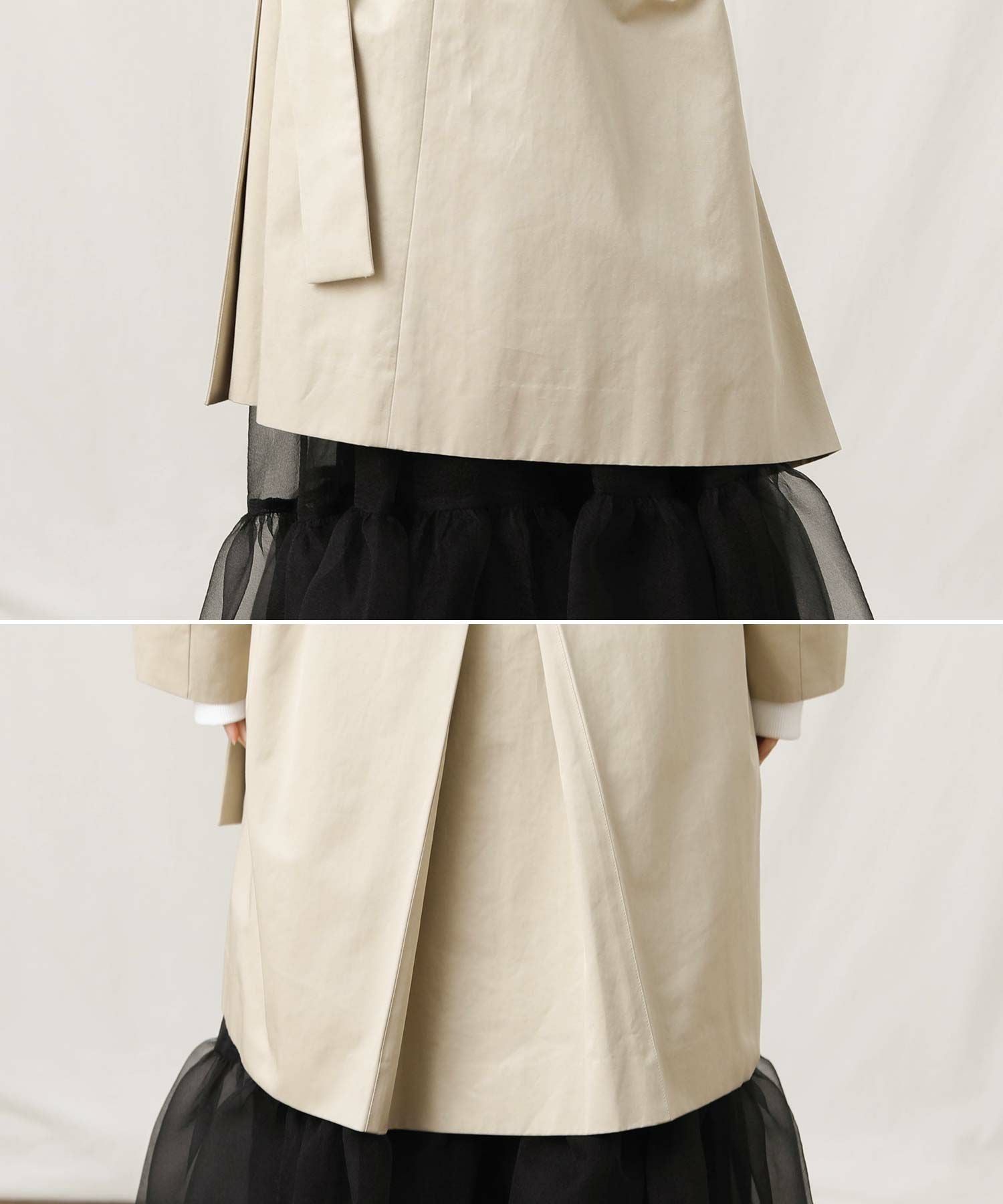 共布のベルトでウエストマークしたりと好みのシルエットに調節可能。